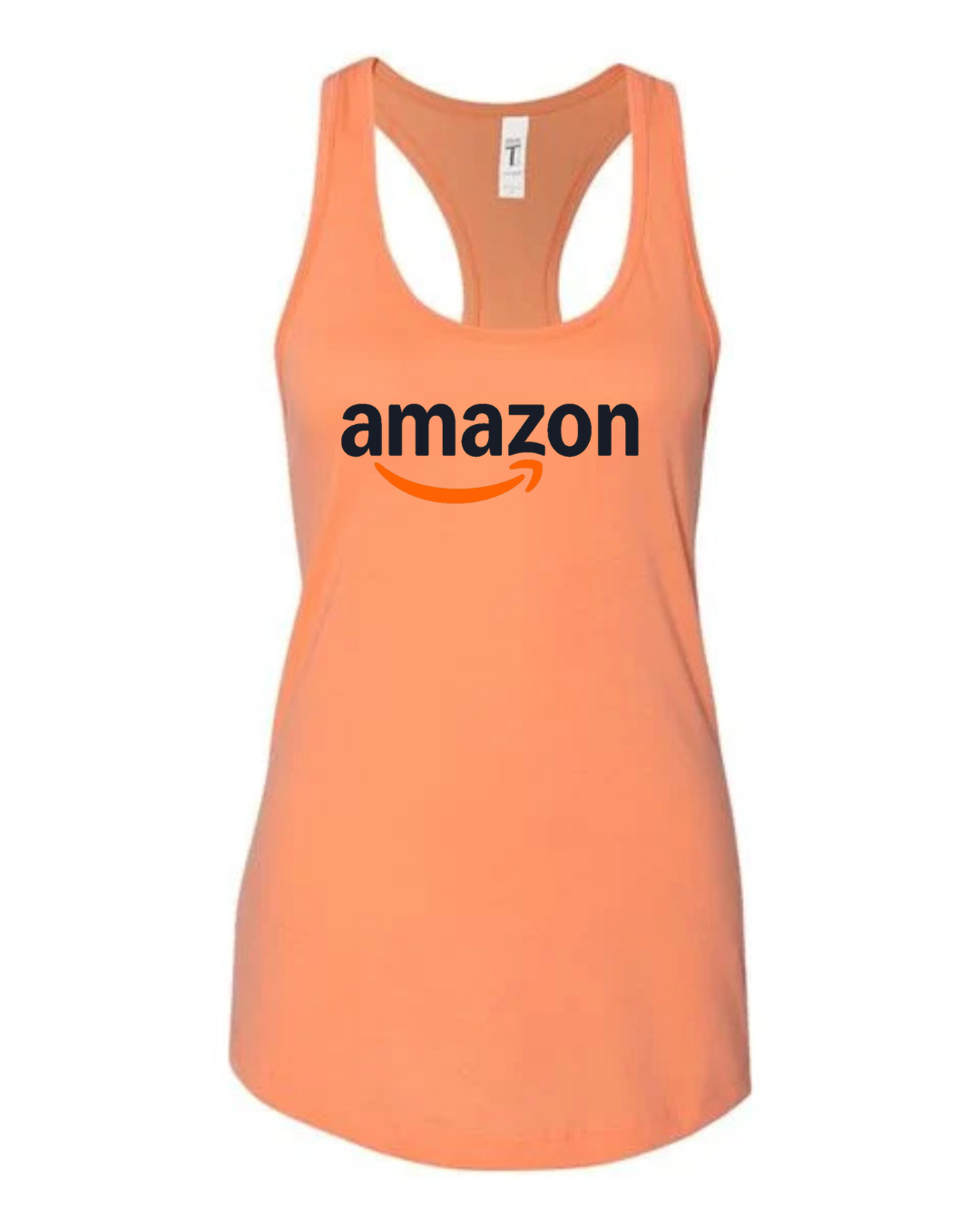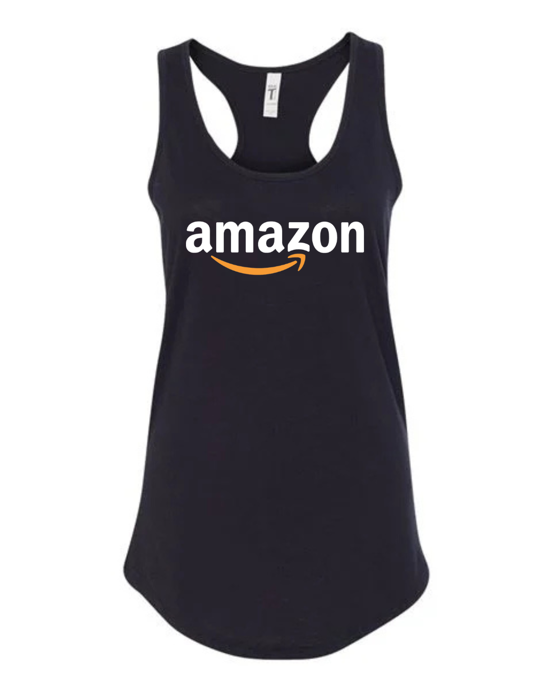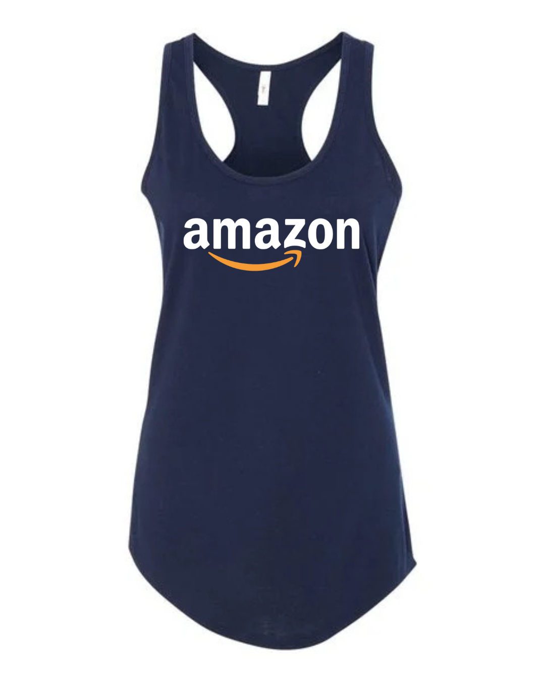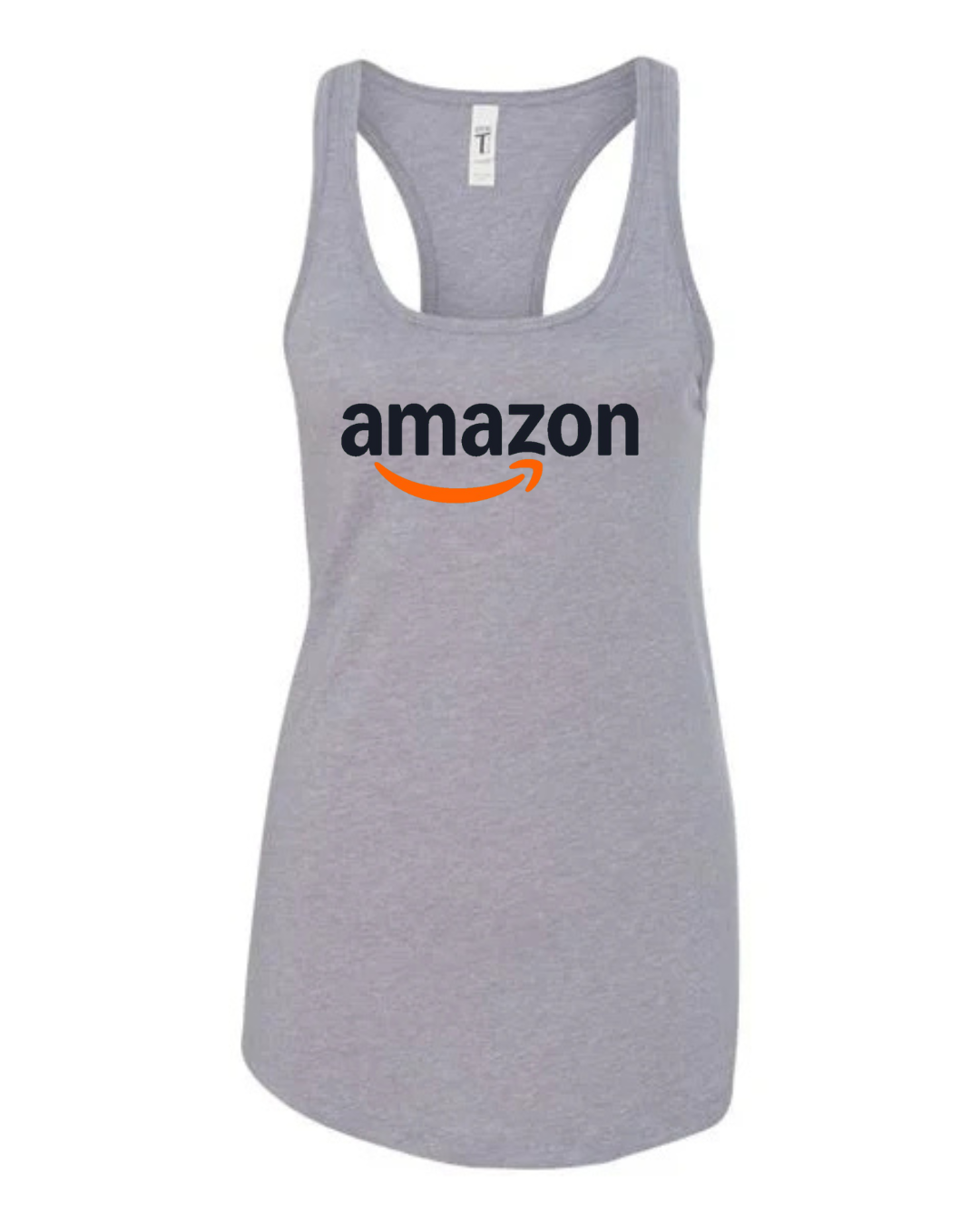 Keep it clean and casual with this Amazon inspired women’s racerback tank top, featuring a bold logo-style front print that adds a modern, recognizable look. Designed for comfort and everyday versatility, this tank is perfect for relaxed outfits, workouts, or layering with streetwear essentials.