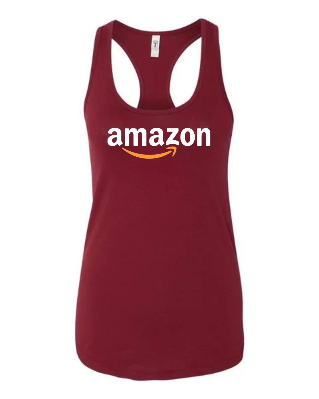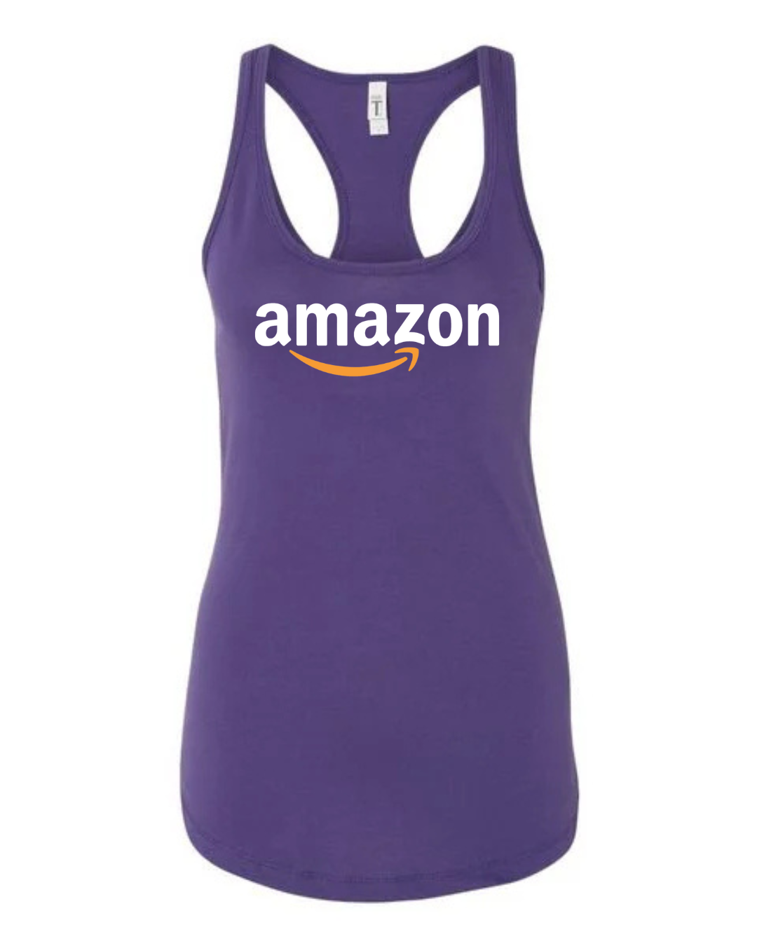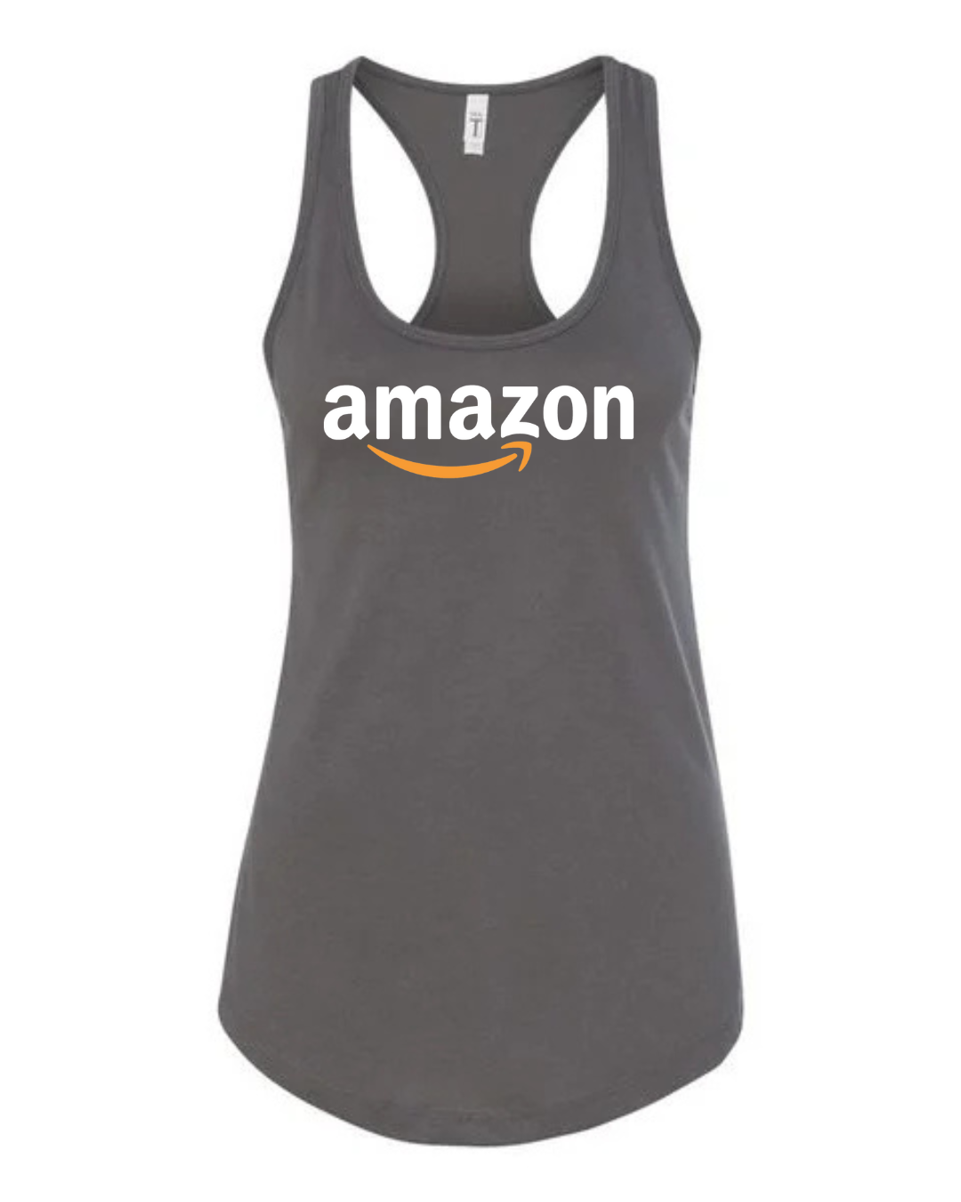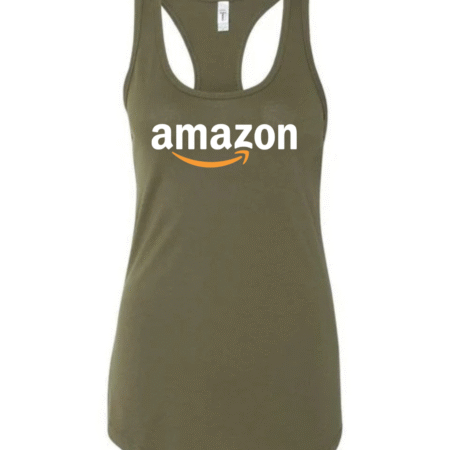 Keep it clean and casual with this Amazon inspired women’s racerback tank top, featuring a bold logo-style front print that adds a modern, recognizable look. Designed for comfort and everyday versatility, this tank is perfect for relaxed outfits, workouts, or layering with streetwear essentials.