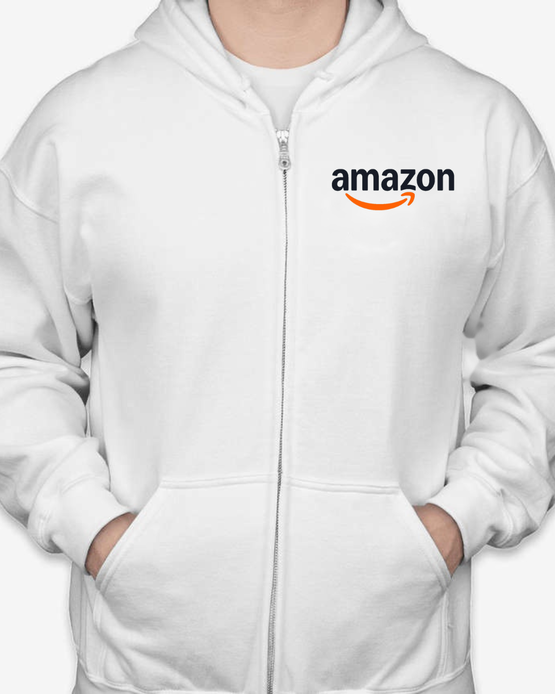 Stay comfortable and effortlessly stylish with this Amazon logo inspired zip-up hoodie. Featuring a clean front chest design inspired by the recognizable Amazon smile logo, this hoodie offers a modern, minimalist look that works perfectly for everyday casual wear.