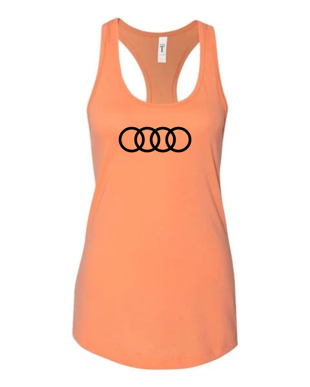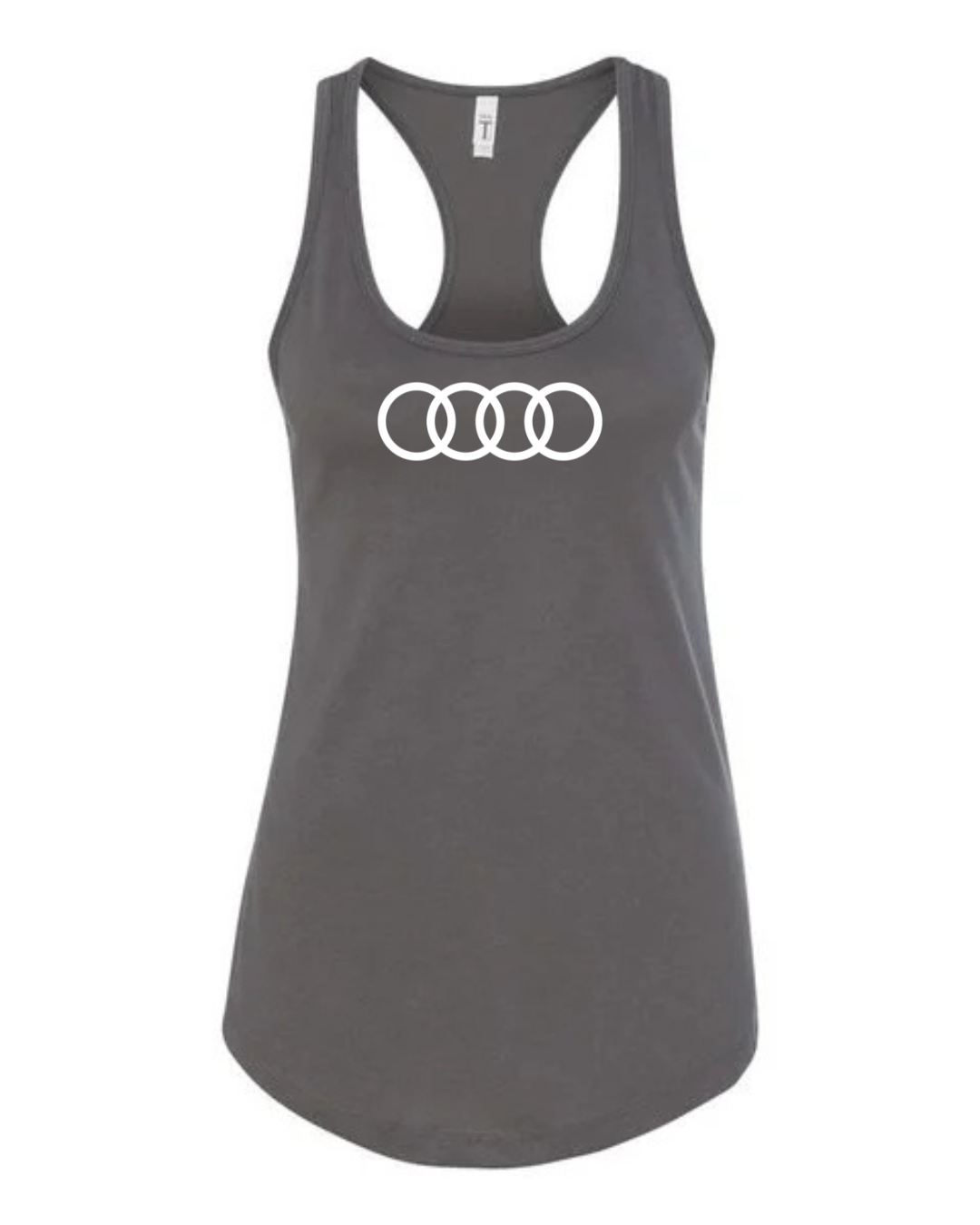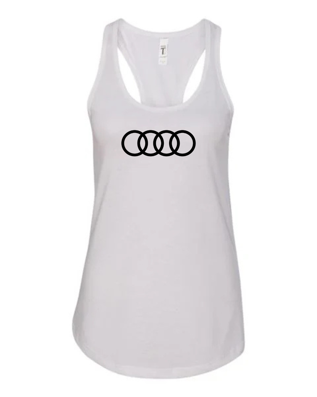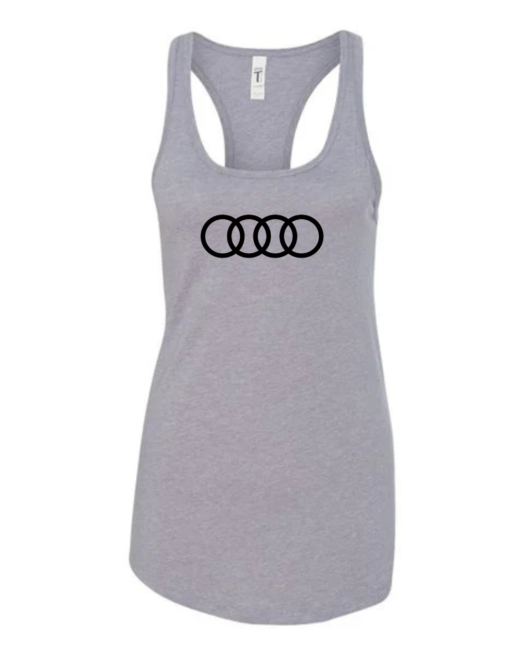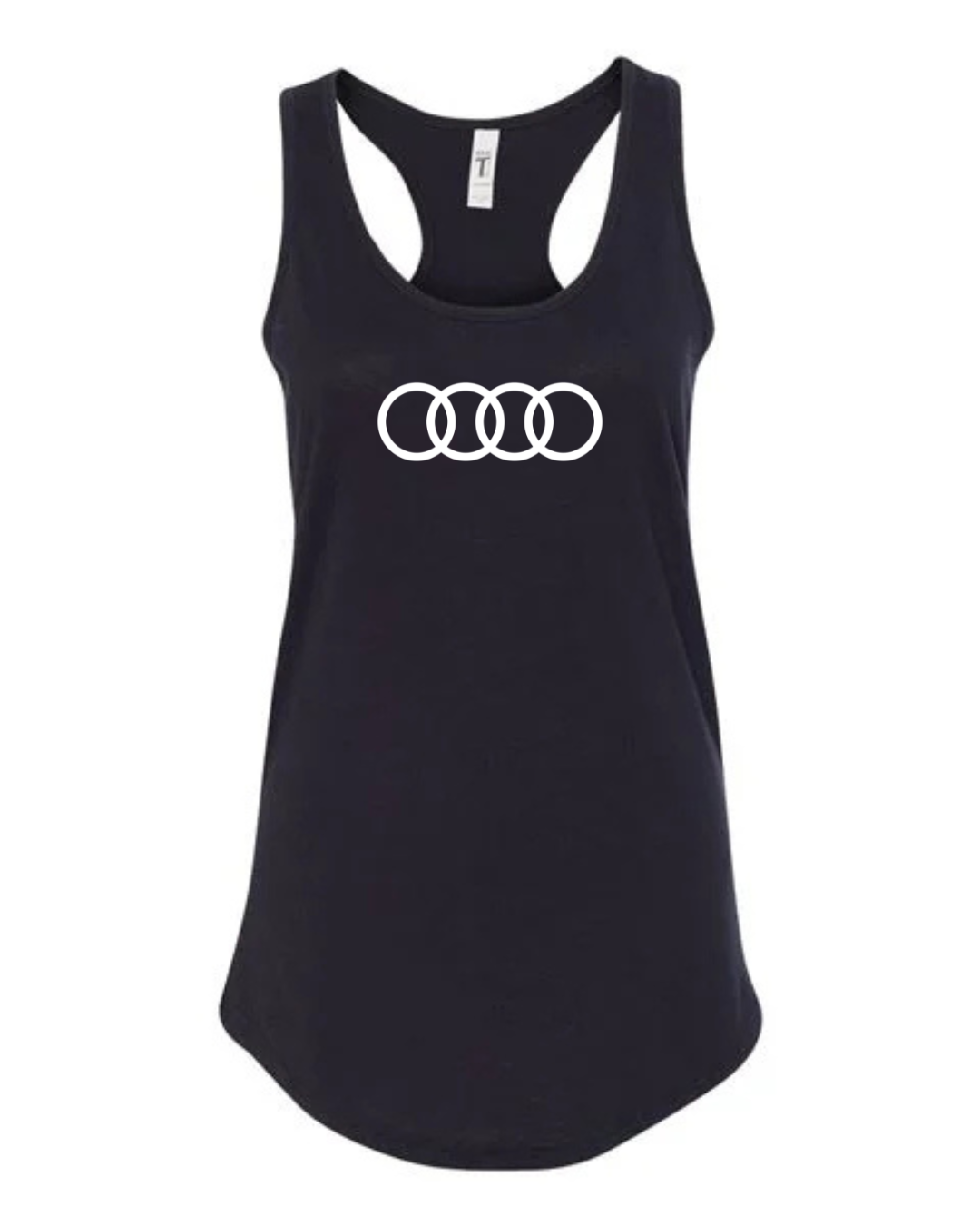 Add a sleek automotive edge to your wardrobe with this Audi-inspired women’s racerback tank top. Featuring a clean, minimalist design inspired by the iconic four-ring auto logo, this tank is perfect for car enthusiasts who appreciate modern luxury style.