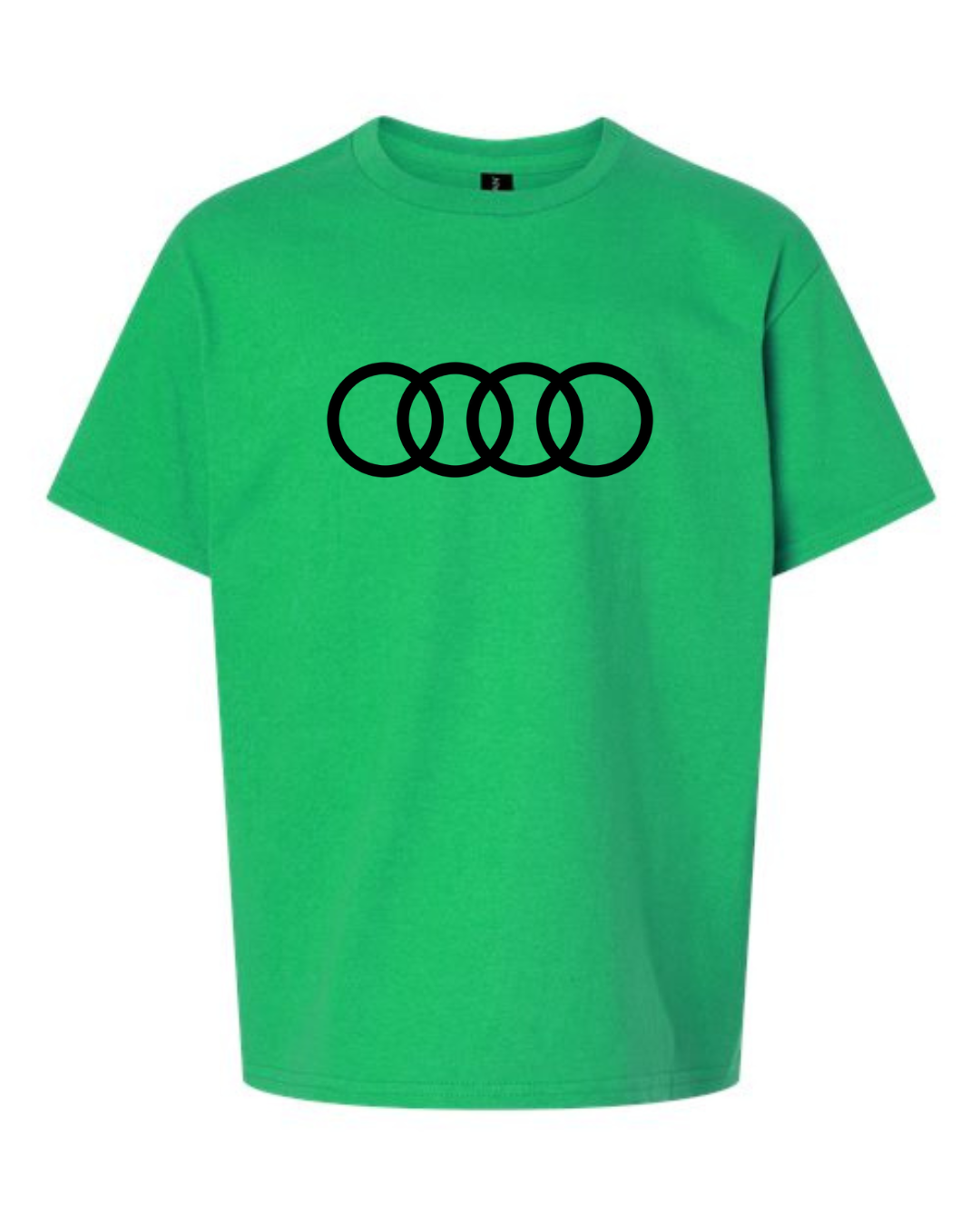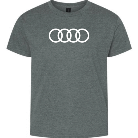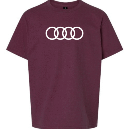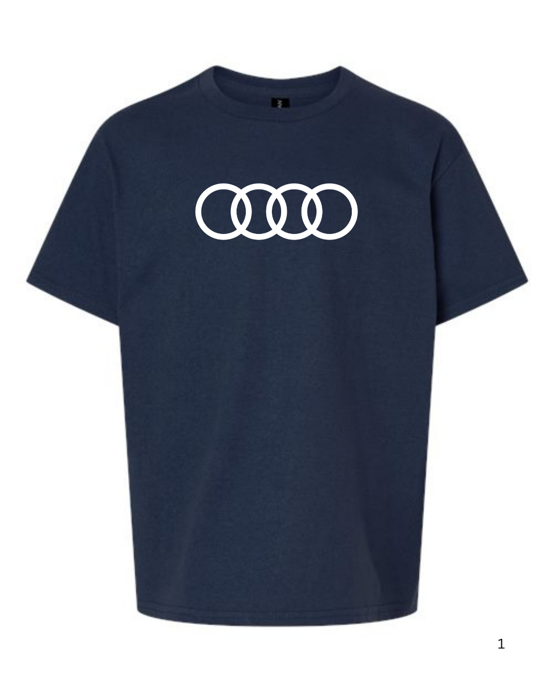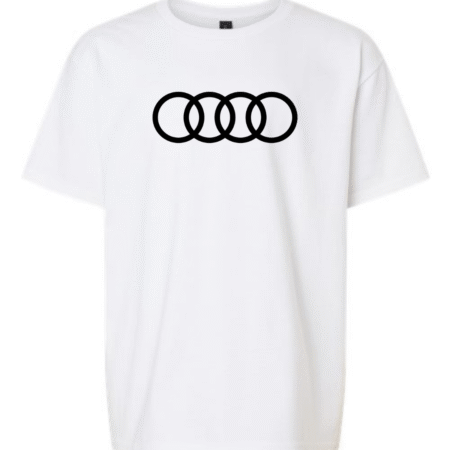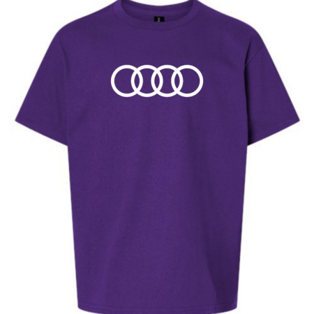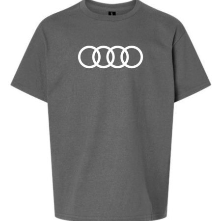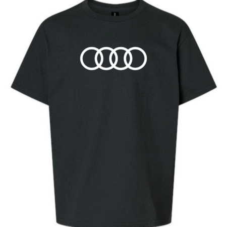 This Audi logo youth t-shirt features the iconic four-ring design, making it a perfect choice for young car enthusiasts and fans of classic automotive style. Designed for everyday comfort, this tee is great for school, casual wear, or weekend outings.
