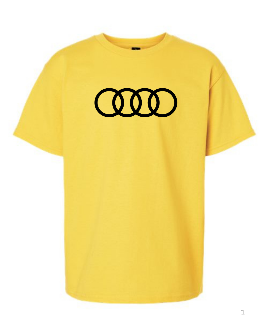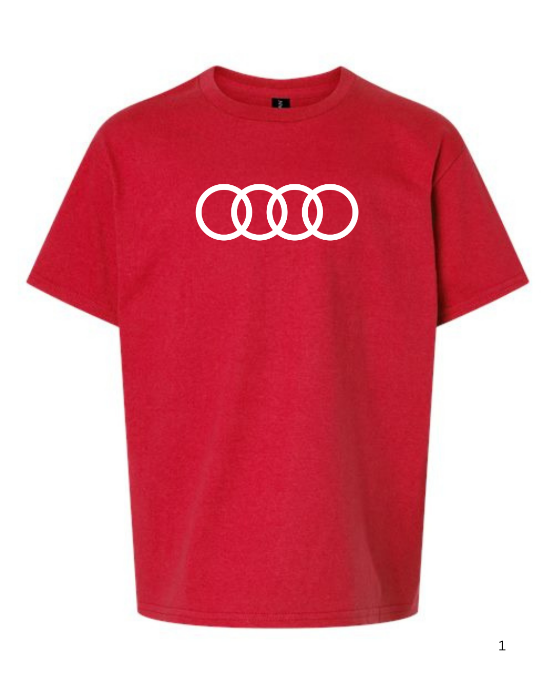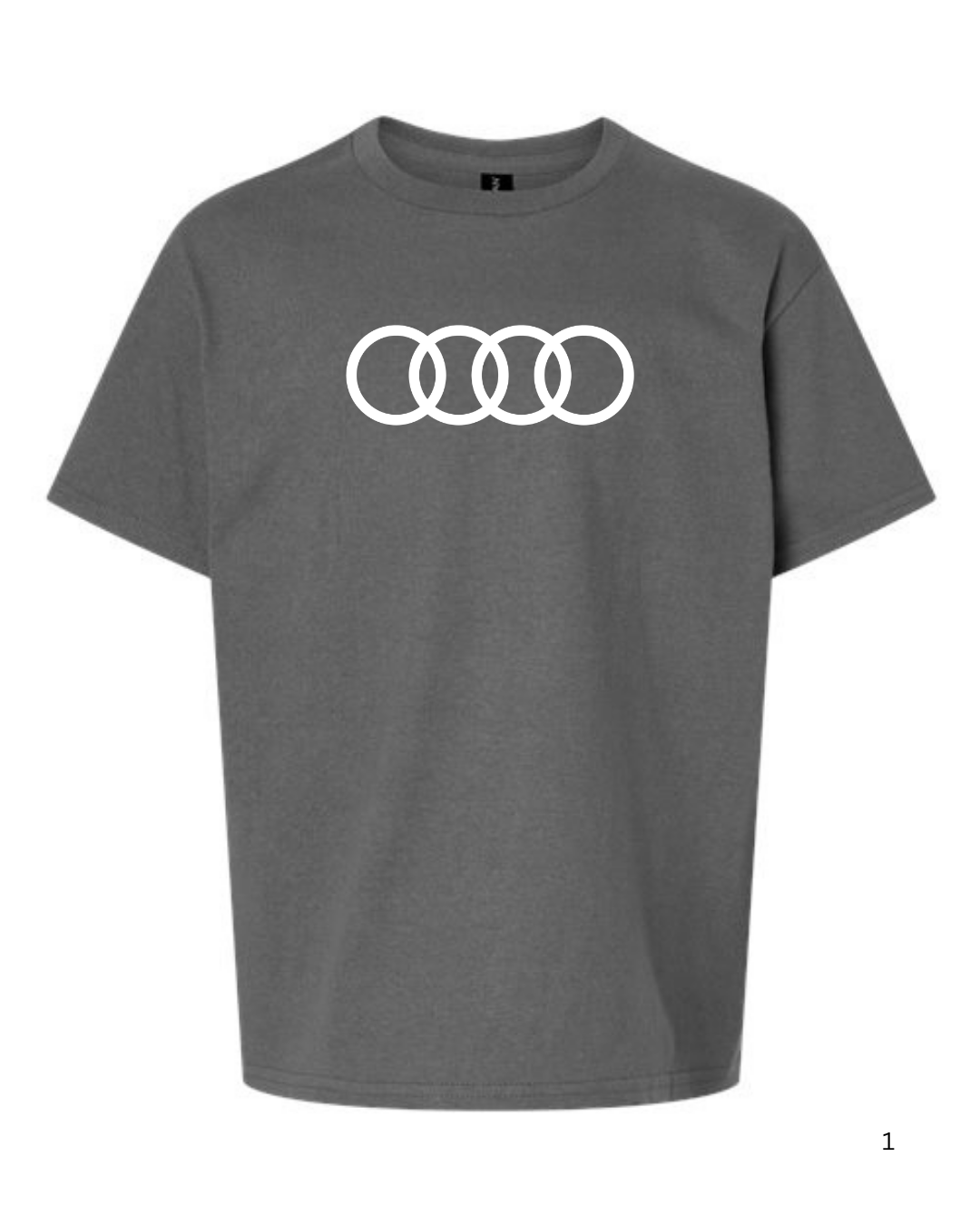 This Audi logo youth t-shirt features the iconic four-ring design, making it a perfect choice for young car enthusiasts and fans of classic automotive style. Designed for everyday comfort, this tee is great for school, casual wear, or weekend outings.