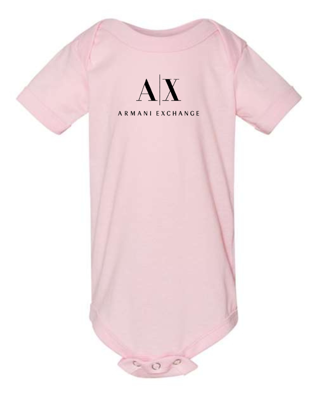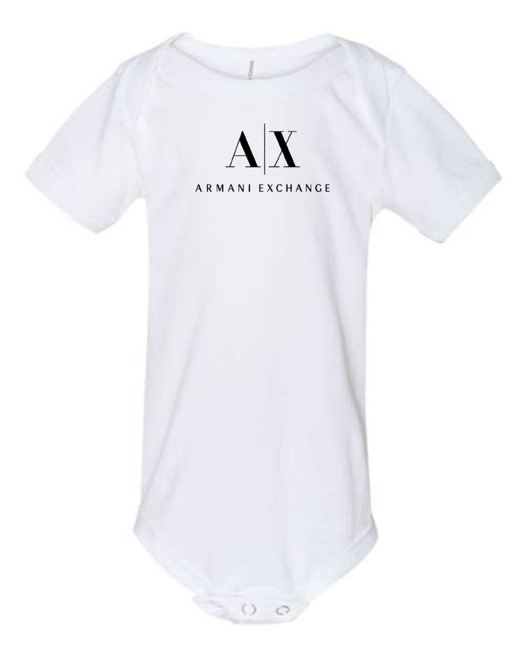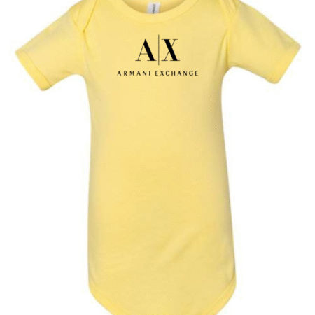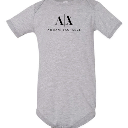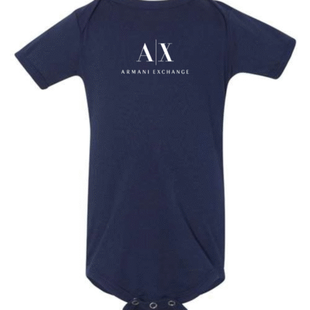 Give your little one a sleek, designer-inspired look with this AX Armani Exchange Logo Infant Bodysuit. Crafted from soft, breathable fabric, this short-sleeve baby one-piece is gentle on delicate skin and perfect for everyday comfort. Featuring the clean and modern AX Armani Exchange logo printed on the front, it delivers a stylish, premium feel while remaining practical for daily wear. Snap-button closures at the bottom make diaper changes quick and easy, making it ideal for home, outings, or gifting.