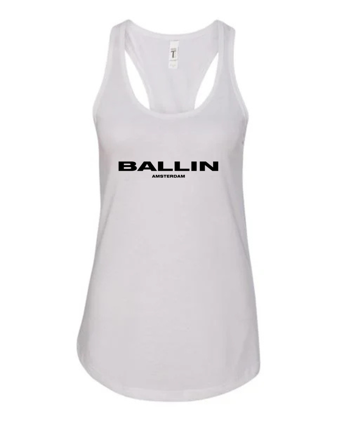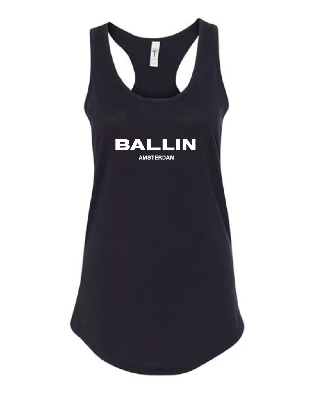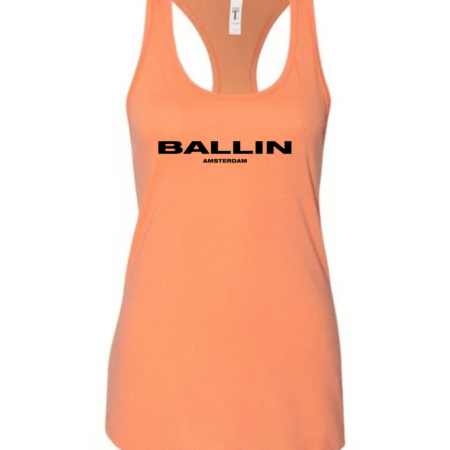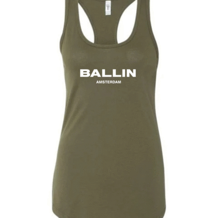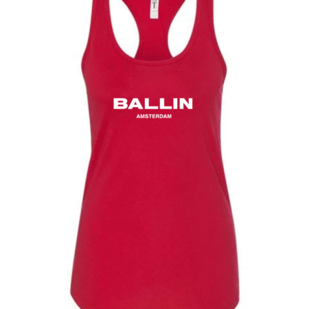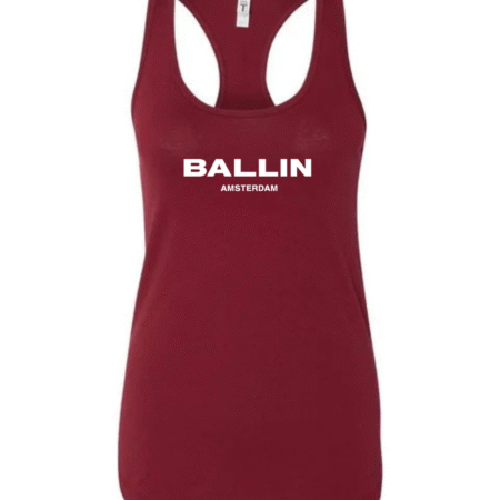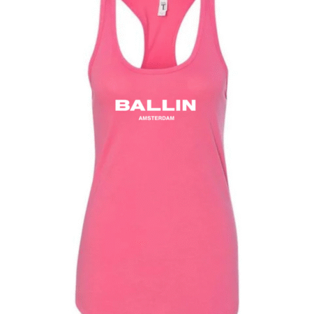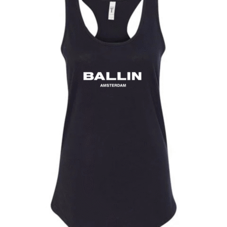 Level up your streetwear style with this Ballin Amsterdam inspired women’s racerback tank top. Featuring a clean, bold logo-style print on the front, this tank delivers a modern urban look inspired by European street fashion.