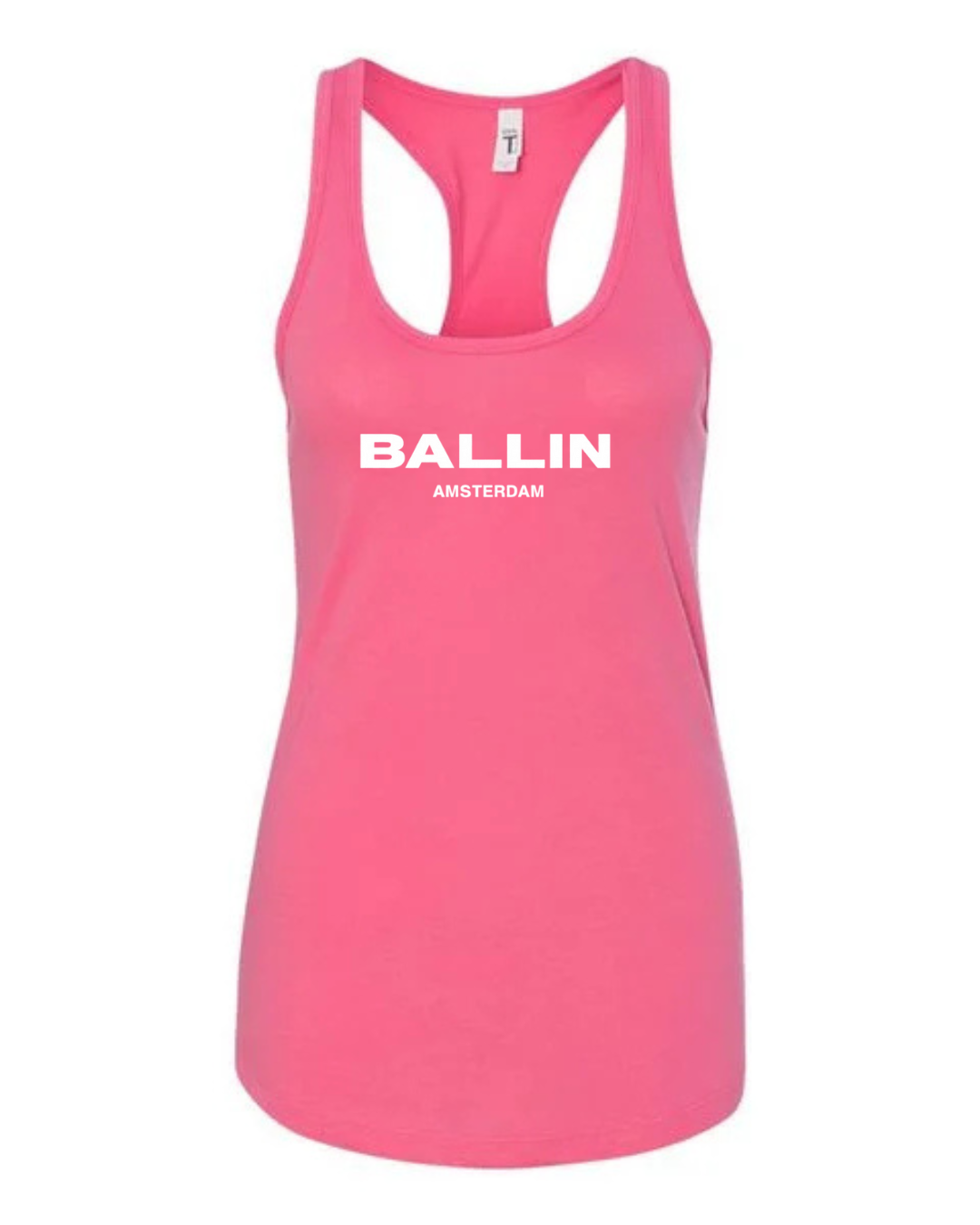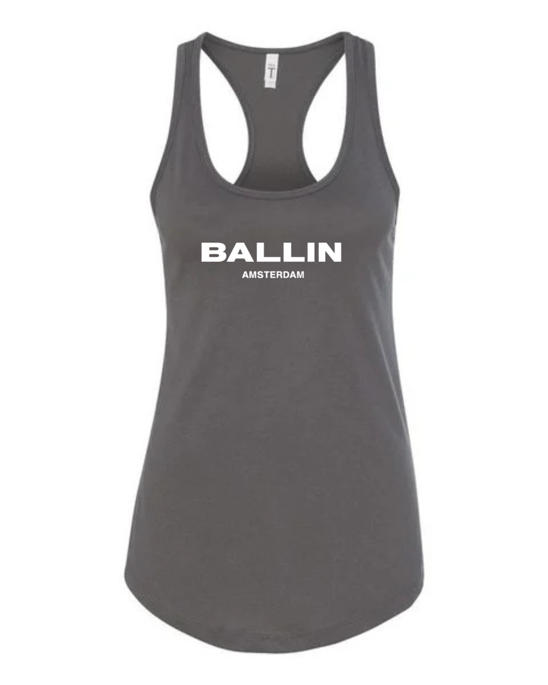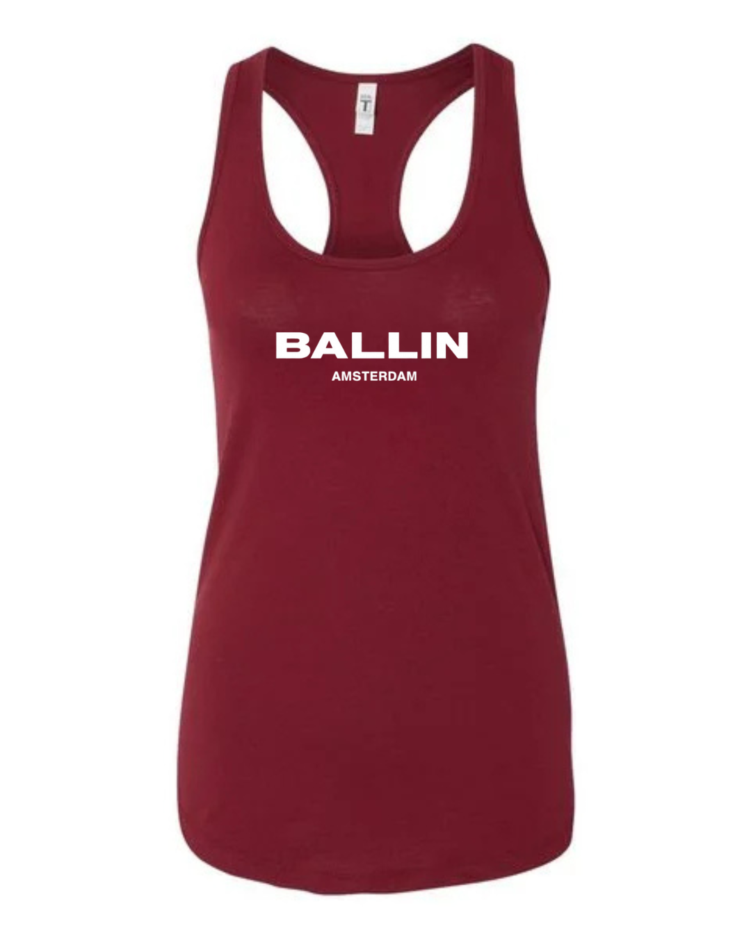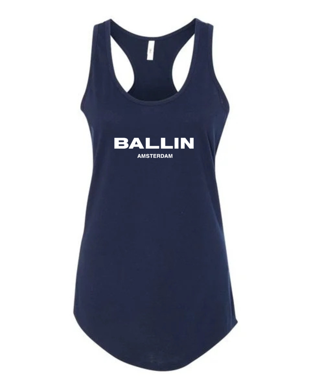Level up your streetwear style with this Ballin Amsterdam inspired women’s racerback tank top. Featuring a clean, bold logo-style print on the front, this tank delivers a modern urban look inspired by European street fashion.