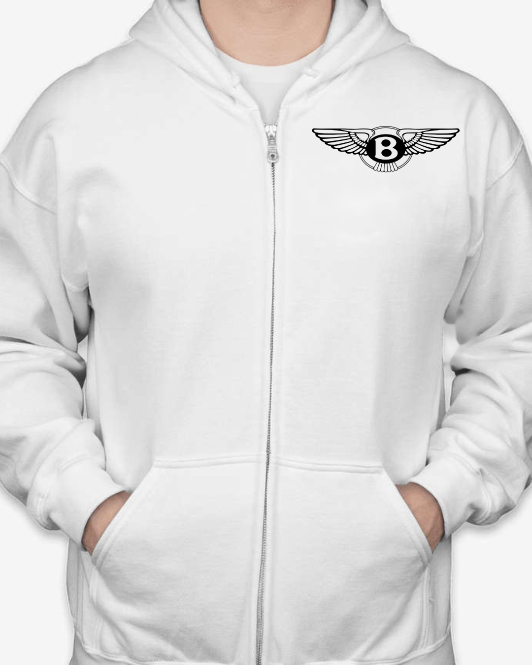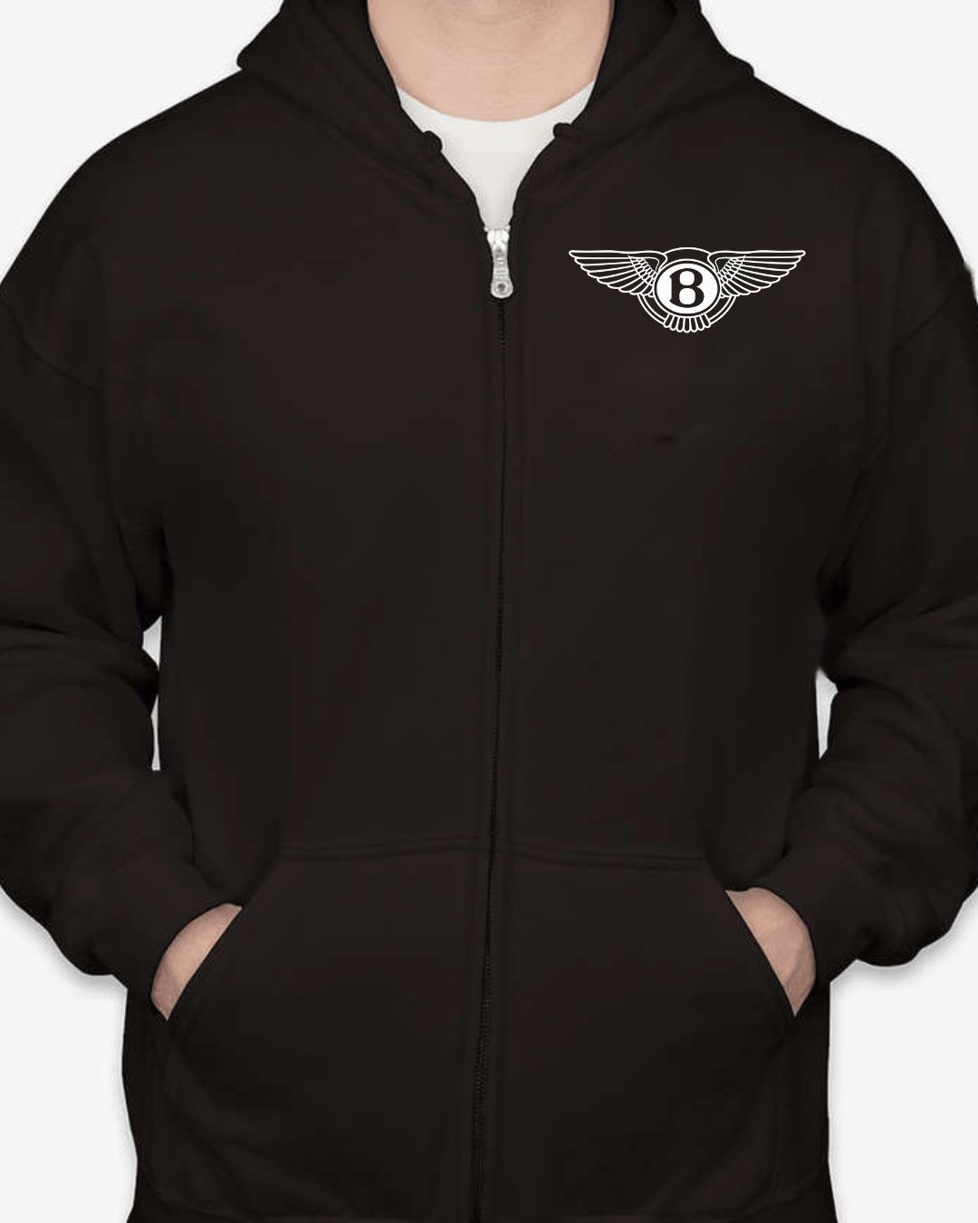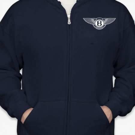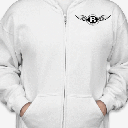 Add refined automotive style to your everyday wardrobe with this Bentley logo inspired zip-up hoodie. Featuring a sleek front chest emblem inspired by the iconic winged Bentley design, this hoodie delivers a premium, luxury-inspired look with timeless streetwear appeal.