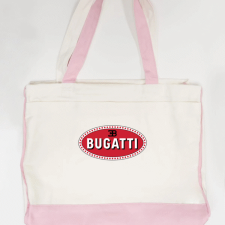 Carry bold automotive luxury with this Bugatti logo canvas tote bag, featuring the iconic red Bugatti emblem at the centre. Striking yet clean, this tote is perfect for fans of elite performance cars and premium design.