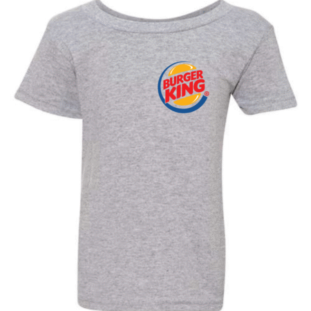 Bring fun, playful style to your little one’s wardrobe with this Burger King logo toddler t-shirt. Featuring the iconic Burger King–style logo, this tee is perfect for everyday wear and designed with toddlers’ comfort in mind. The easy pull-on fit and classic silhouette make it ideal for playtime, outings, or casual family days.