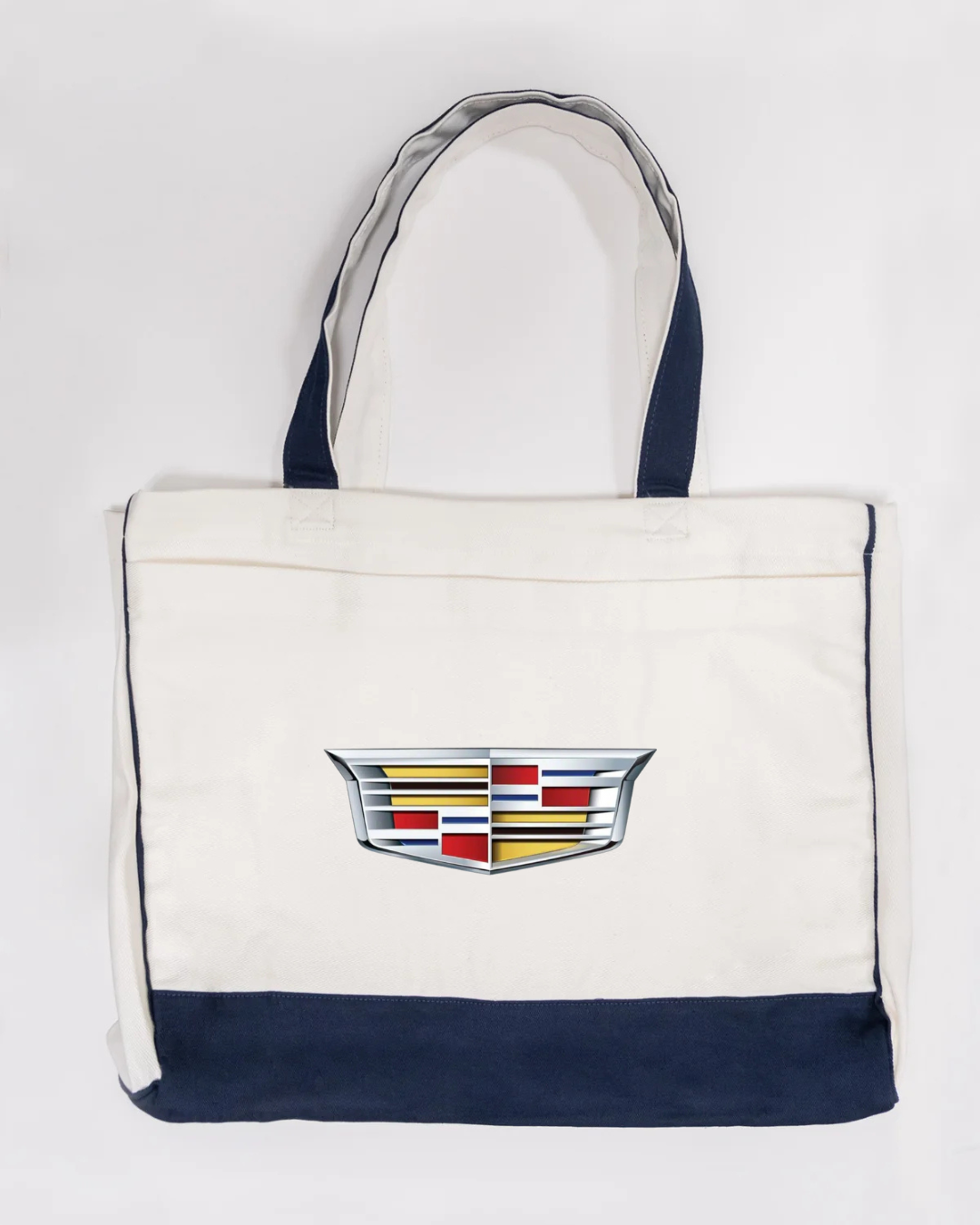 Carry refined American luxury with this Cadillac crest logo canvas tote bag, featuring the iconic multicolour Cadillac emblem. Elegant, bold, and instantly recognisable, this tote is perfect for fans of premium cars and classic automotive design.