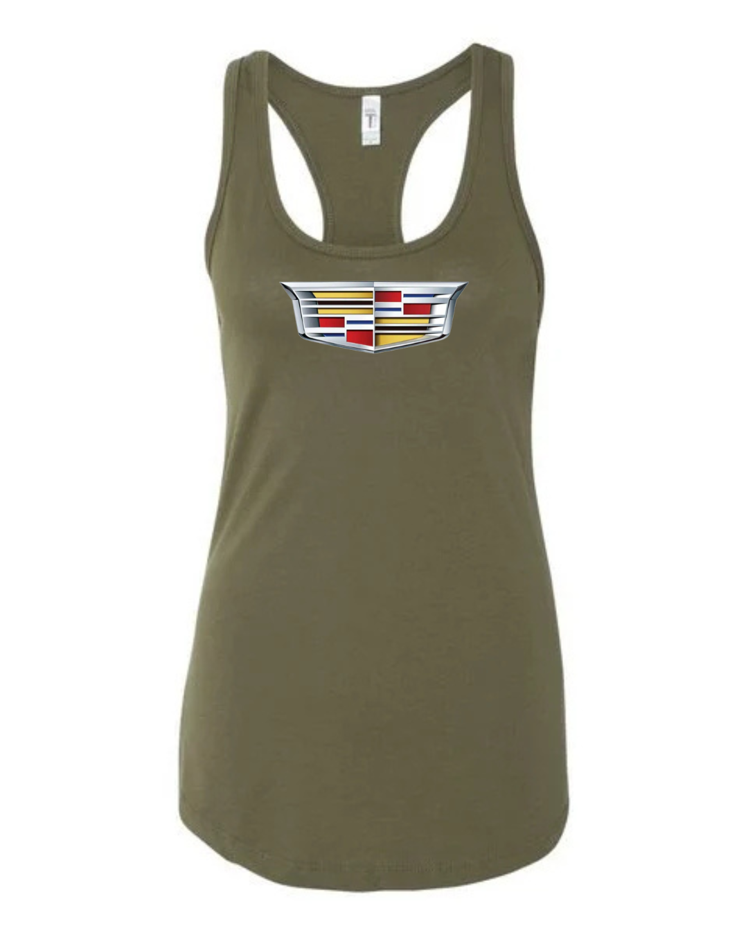 Bring bold American luxury to your everyday style with this Cadillac inspired women’s racerback tank top. Featuring a sleek crest-style auto emblem printed on the front, this tank delivers a refined yet sporty look inspired by premium automotive design.
