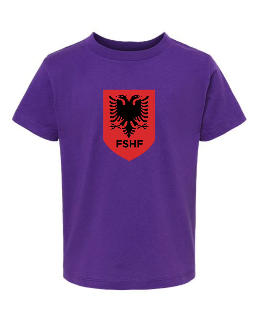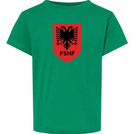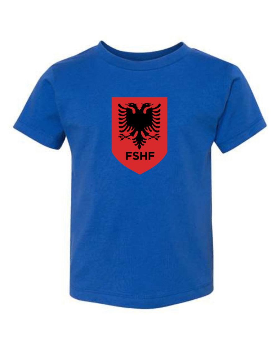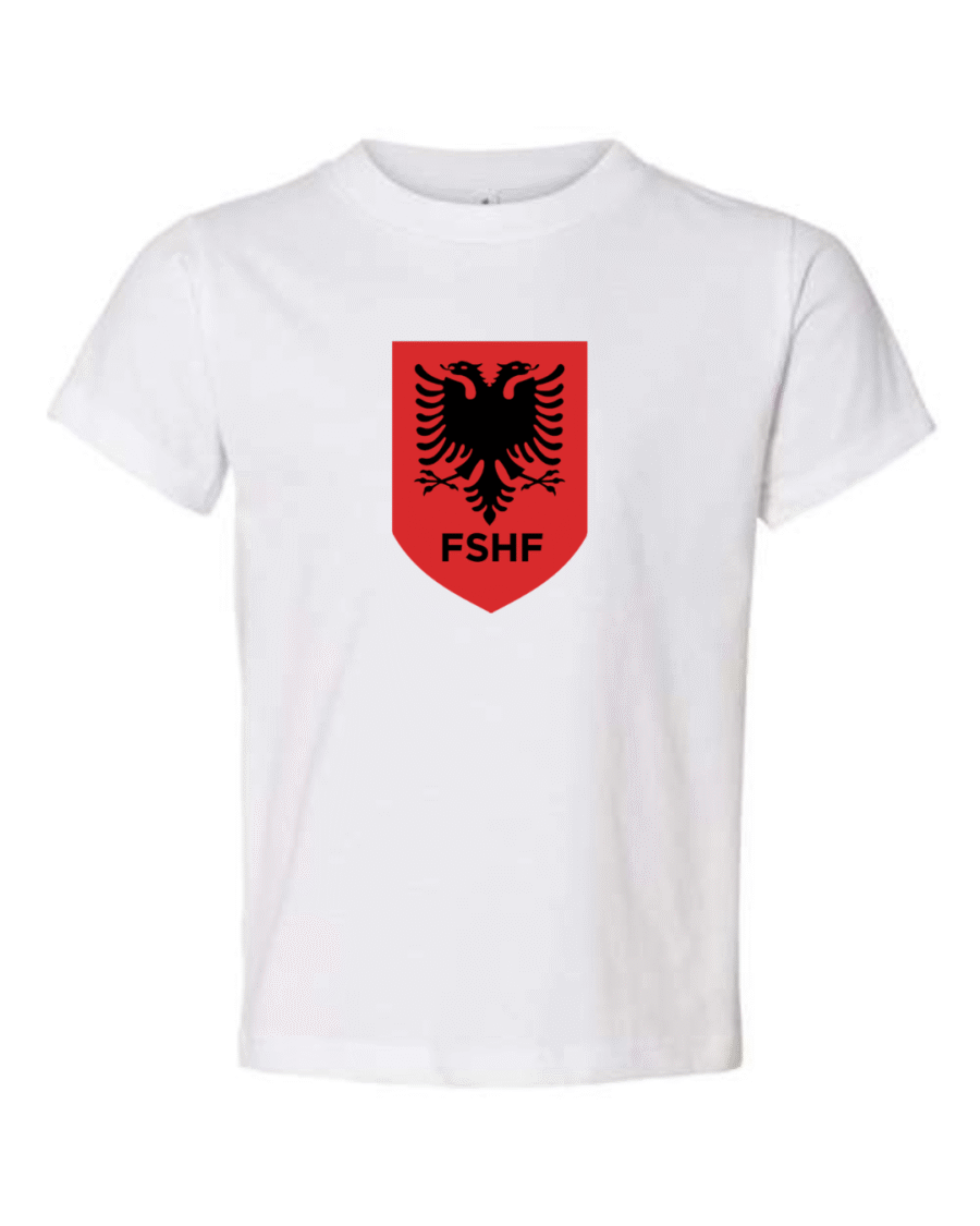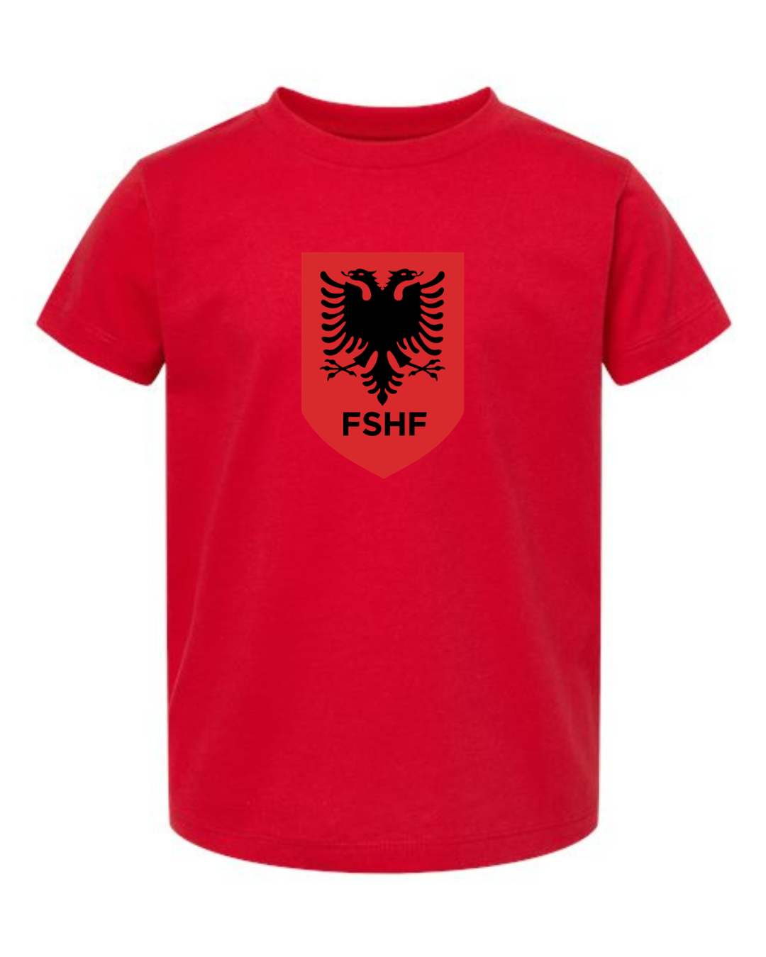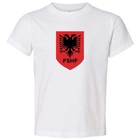 Show national pride early with our Classic FSHF Albania Logo Toddler T-Shirt. Featuring the bold double-headed eagle emblem of the Albanian Football Association (FSHF), this tee blends sporty heritage with toddler-ready comfort. Perfect for little fans on game day or everyday play. Available in sizes 2T to 5T.
