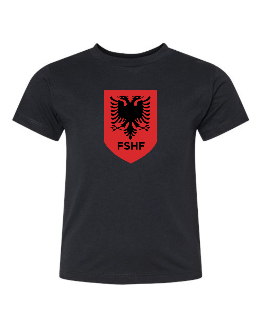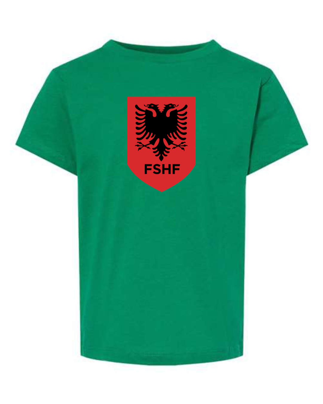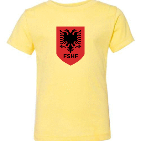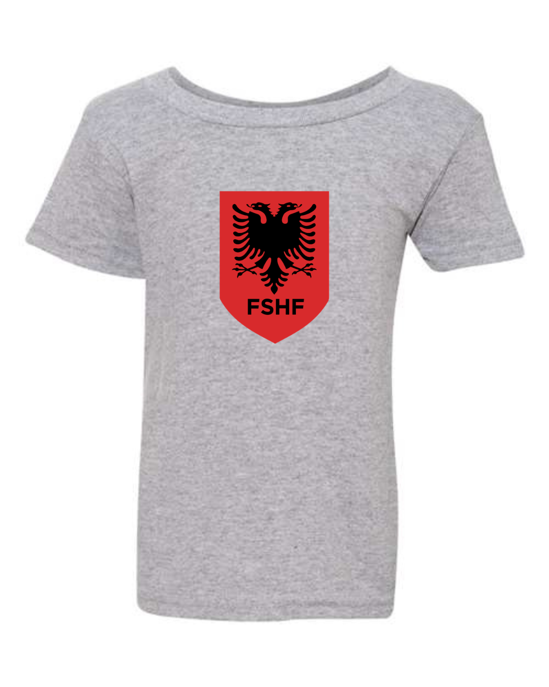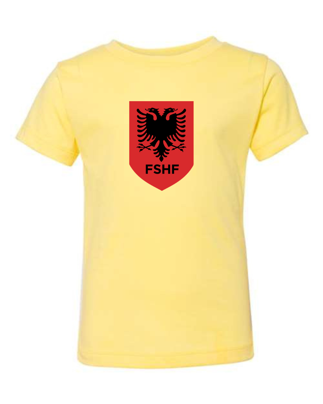 Show national pride early with our Classic FSHF Albania Logo Toddler T-Shirt. Featuring the bold double-headed eagle emblem of the Albanian Football Association (FSHF), this tee blends sporty heritage with toddler-ready comfort. Perfect for little fans on game day or everyday play. Available in sizes 2T to 5T.