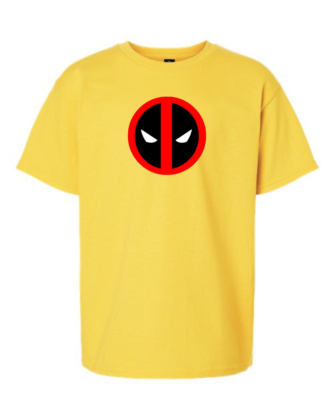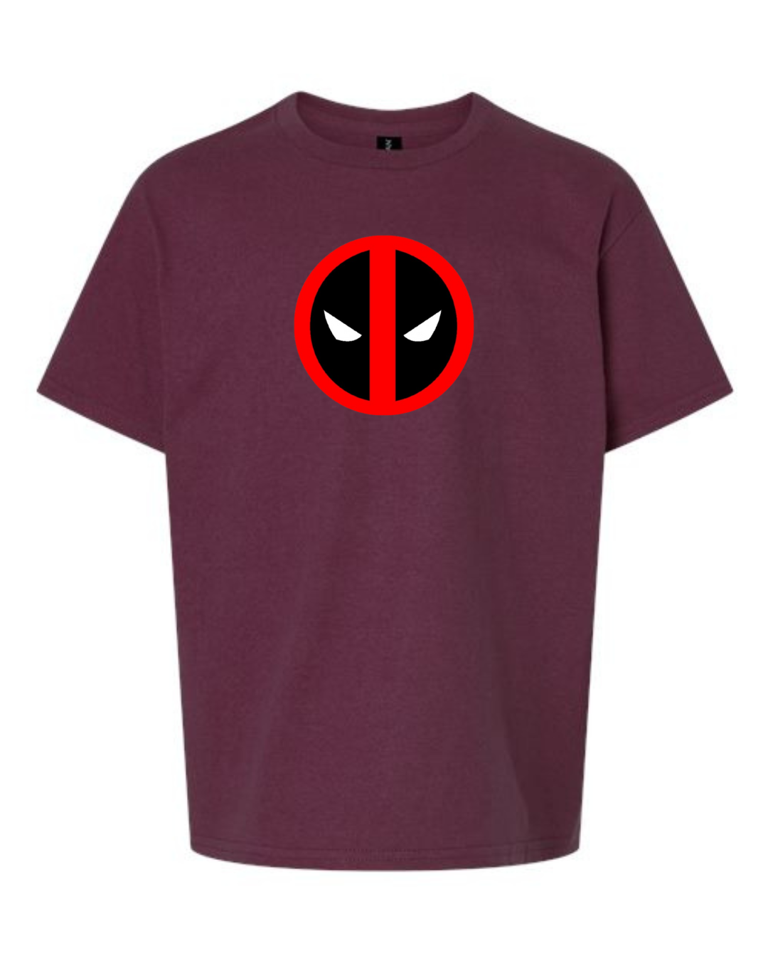 This Deadpool logo youth t-shirt features the iconic red-and-black mask design, making it a bold and fun choice for kids who love superheroes and comic-inspired style. Designed for everyday comfort, this tee is perfect for school, casual wear, or weekend outfits.