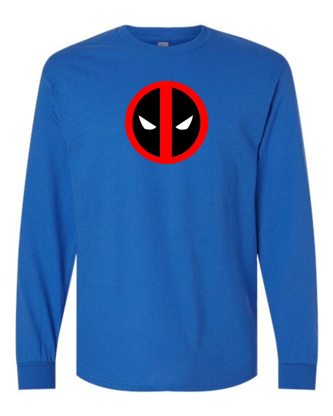 Bring bold anti-hero energy to your everyday style with this Deadpool Mask Logo Men’s Long Sleeve T-Shirt. Featuring the iconic red-and-black Deadpool mask emblem, this long-sleeve tee delivers a striking, comic-inspired look perfect for Marvel fans, pop-culture lovers, and casual streetwear.