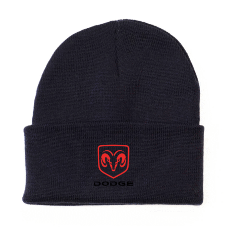 Show your passion for bold automotive style with this Dodge logo–inspired knit beanie. Featuring the iconic ram head–style emblem embroidered on the front cuff, this beanie delivers a clean, sporty look that’s perfect for car enthusiasts and streetwear fans alike.