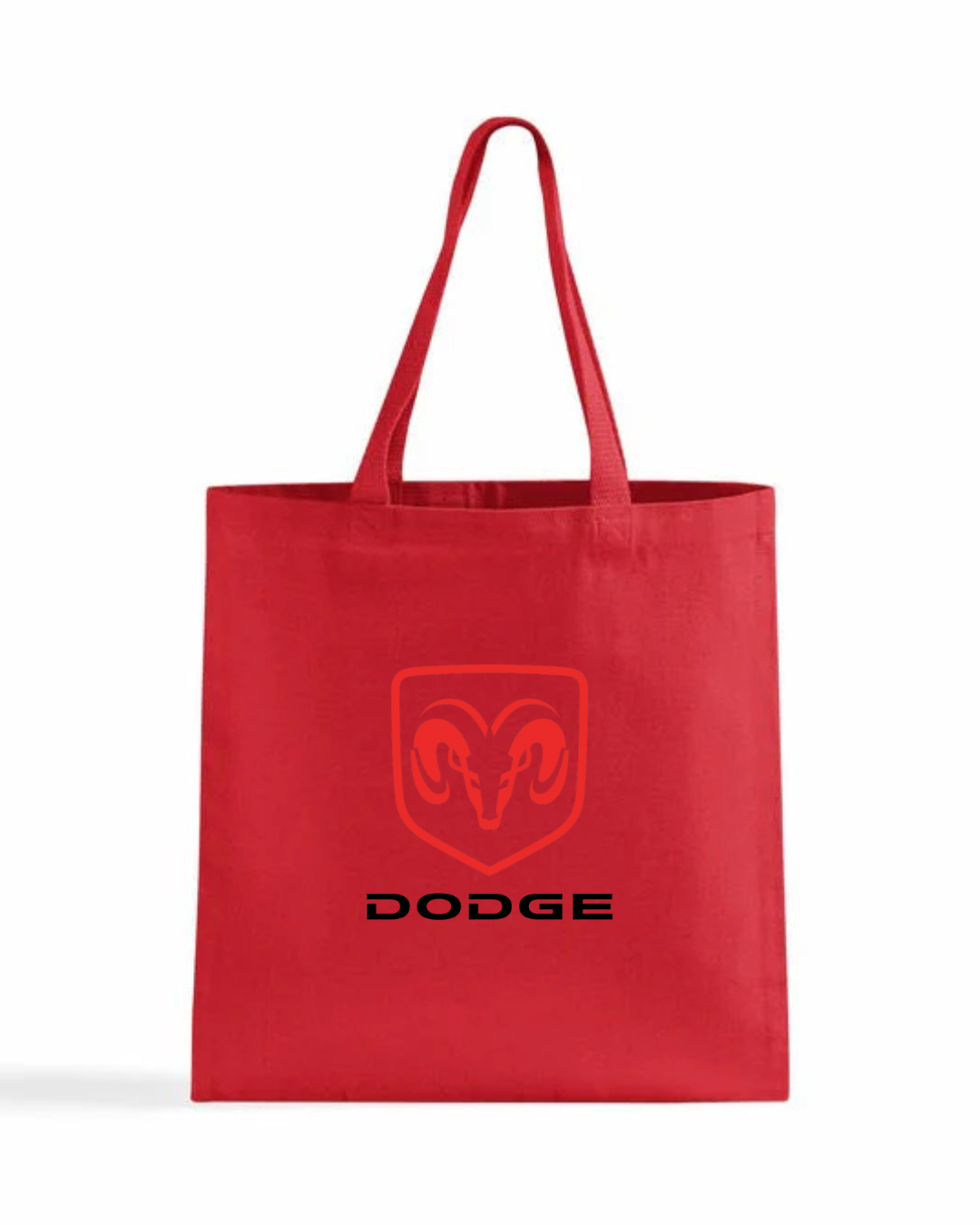 Show off your love for muscle cars with this Dodge logo–inspired tote bag, featuring the iconic ram head emblem in a bold, clean design. Perfect for car enthusiasts, auto fans, and anyone who appreciates powerful automotive style in a practical everyday accessory.