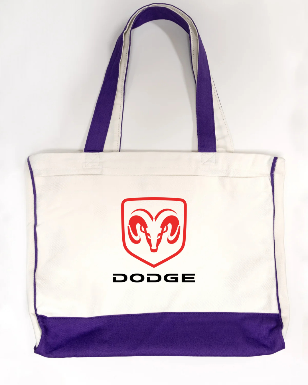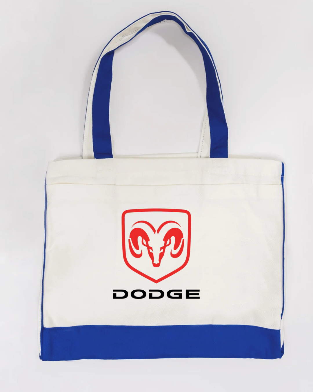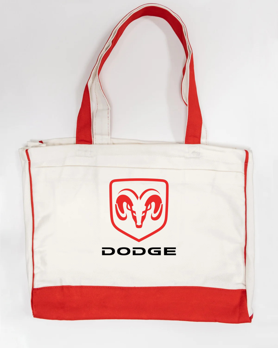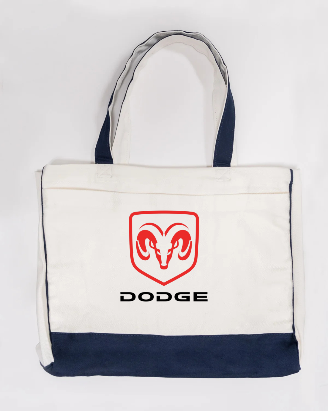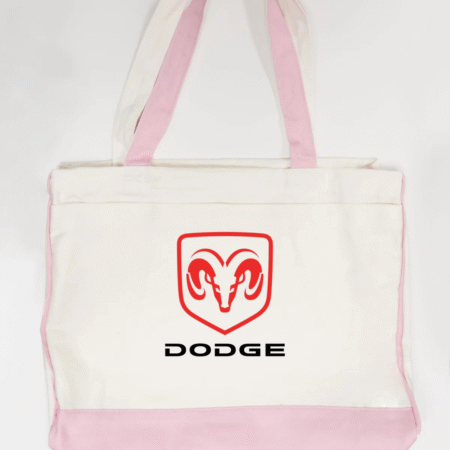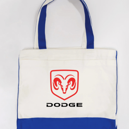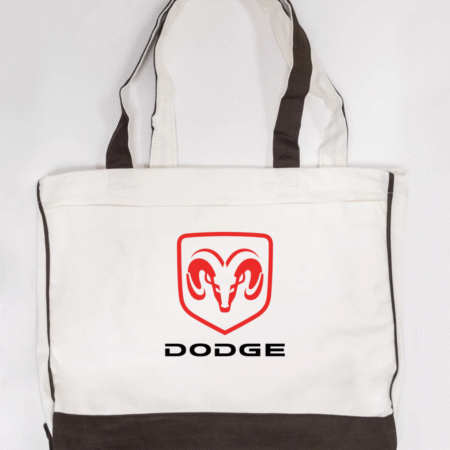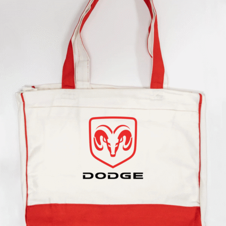 Show off your love for American muscle with this Dodge Ram logo canvas tote bag. Featuring the bold red Ram head emblem with the Dodge name beneath, this tote delivers a clean, powerful automotive-inspired look that’s perfect for car enthusiasts and streetwear fans alike.