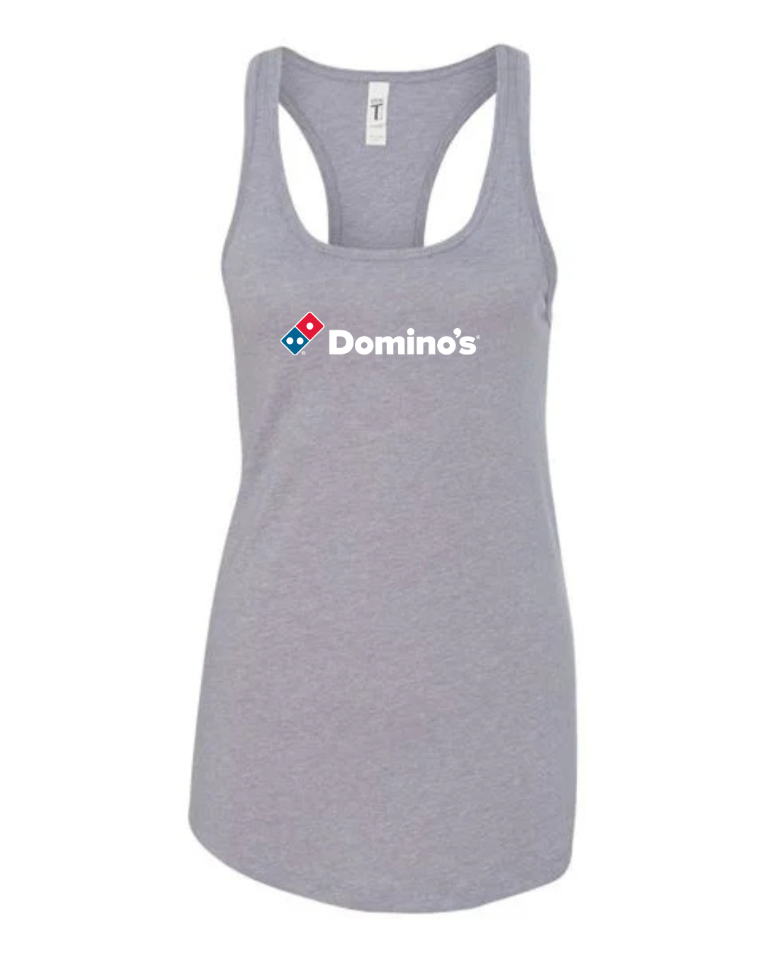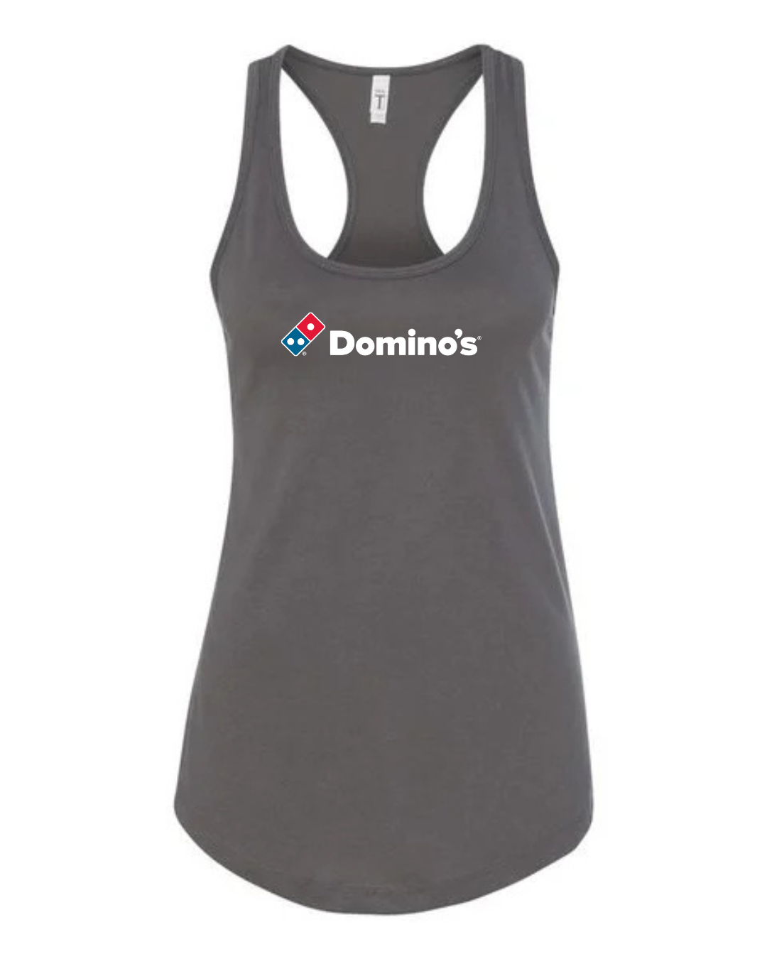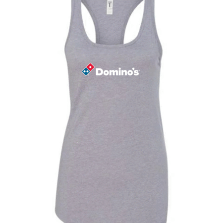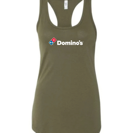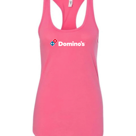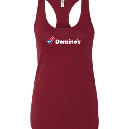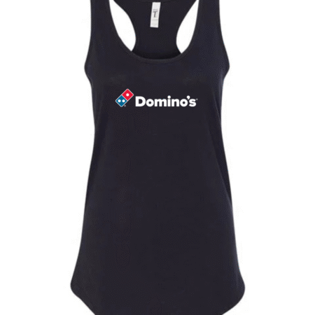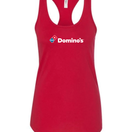 Serve up casual style with this Domino’s inspired women’s racerback tank top. Featuring a clean, recognizable pizza-brand–style logo on the front, this tank adds a fun, modern touch to your everyday wardrobe.