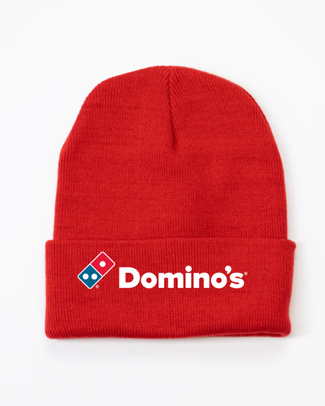 Add a fun, recognizable touch to your winter look with this Domino’s logo–inspired knit beanie. Featuring the iconic Domino’s-style emblem embroidered on the front cuff, this beanie delivers a clean, casual vibe that works perfectly with everyday outfits and streetwear styling.