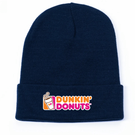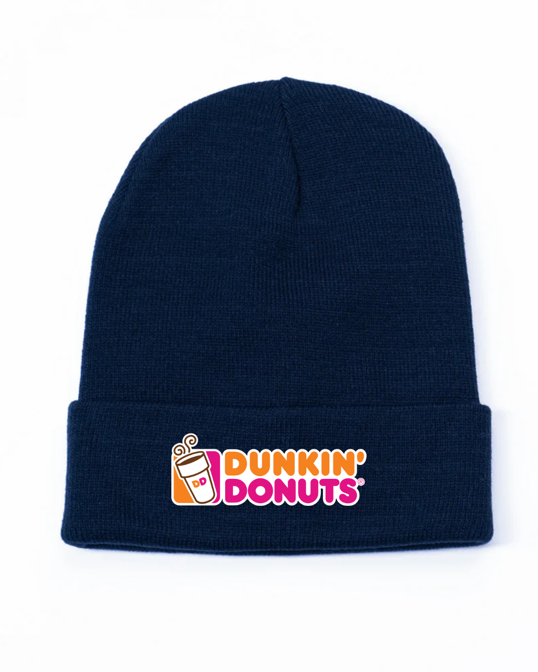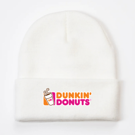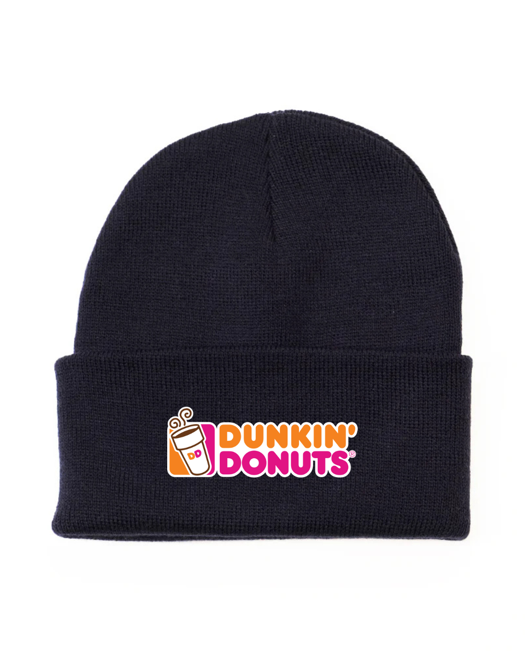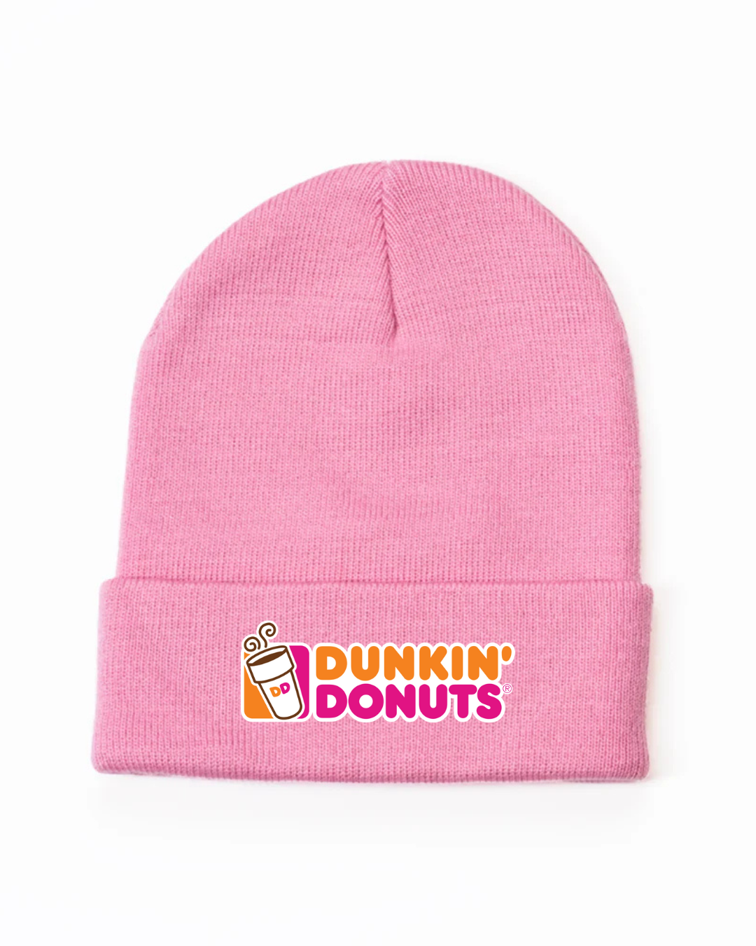 Add a fun, bold touch to your winter wardrobe with this Dunkin’ Donuts logo–inspired knit beanie. Featuring the iconic Dunkin’ Donuts–style text and cup graphic embroidered on the front cuff, this beanie delivers a playful, recognizable look perfect for casual and streetwear styling.