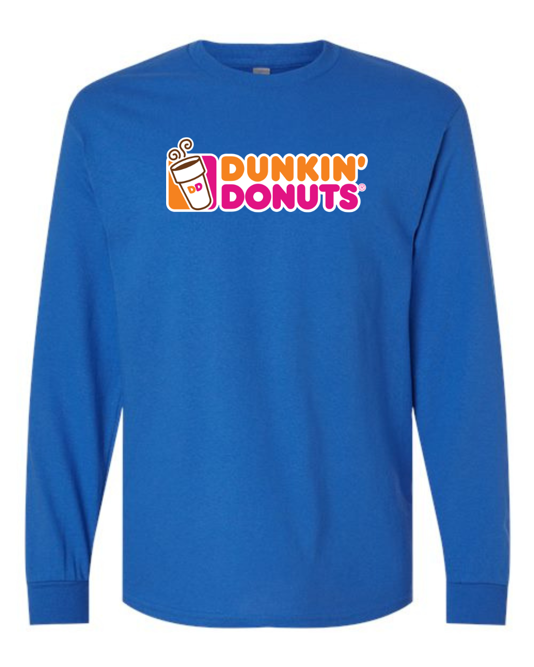 Add a fun, colorful touch to your everyday look with this Dunkin’ Donuts Logo Men’s Long Sleeve T-Shirt. Featuring the iconic Dunkin’ Donuts wordmark with its recognizable coffee-and-donut branding, this long-sleeve tee delivers a bold, casual style perfect for coffee lovers, pop-culture fans, and relaxed streetwear.