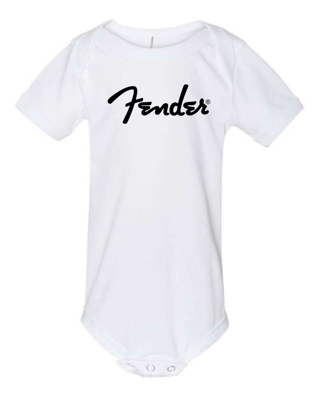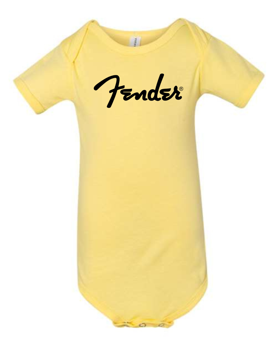 Rock classic music-inspired style with this Fender Logo Infant Bodysuit. Designed for comfort and everyday wear, this short-sleeve baby one-piece is made from soft, breathable fabric that’s gentle on delicate skin. Featuring the iconic Fender logo printed on the front, it’s perfect for music lovers and guitar fans who want to share their passion from day one. The snap-button closures at the bottom make diaper changes quick and easy, making it ideal for daily wear, outings, or baby shower gifts.