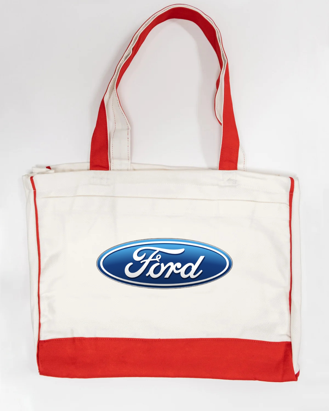 Carry an iconic automotive look with this Ford logo canvas tote bag, featuring the instantly recognisable blue oval Ford emblem. Clean, timeless, and practical, this tote is perfect for car enthusiasts and everyday use alike.