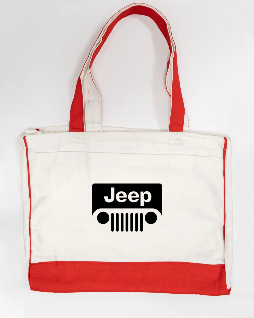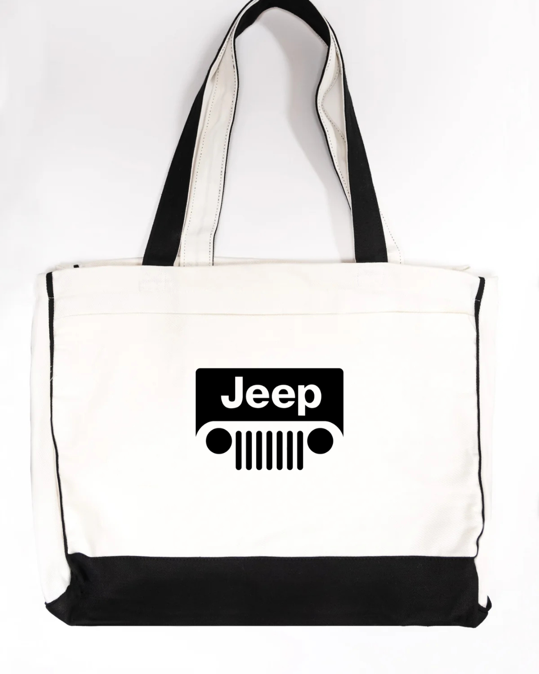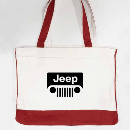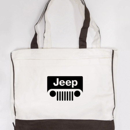 Carry bold, adventure-ready style with this Jeep logo canvas tote bag, featuring the iconic Jeep grille and wordmark design in a clean, minimalist layout. Strong, practical, and instantly recognisable, this tote is perfect for Jeep enthusiasts and everyday use.
