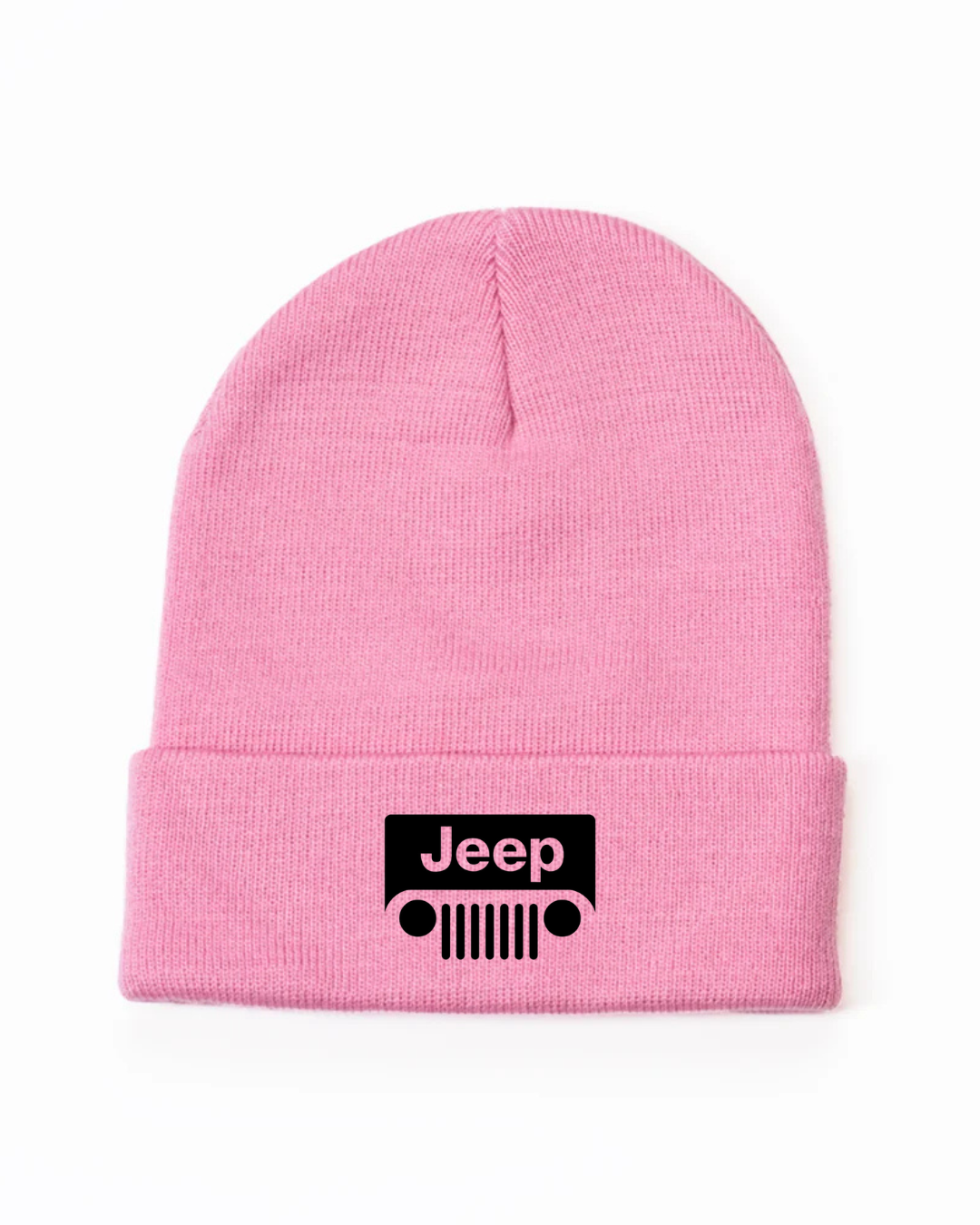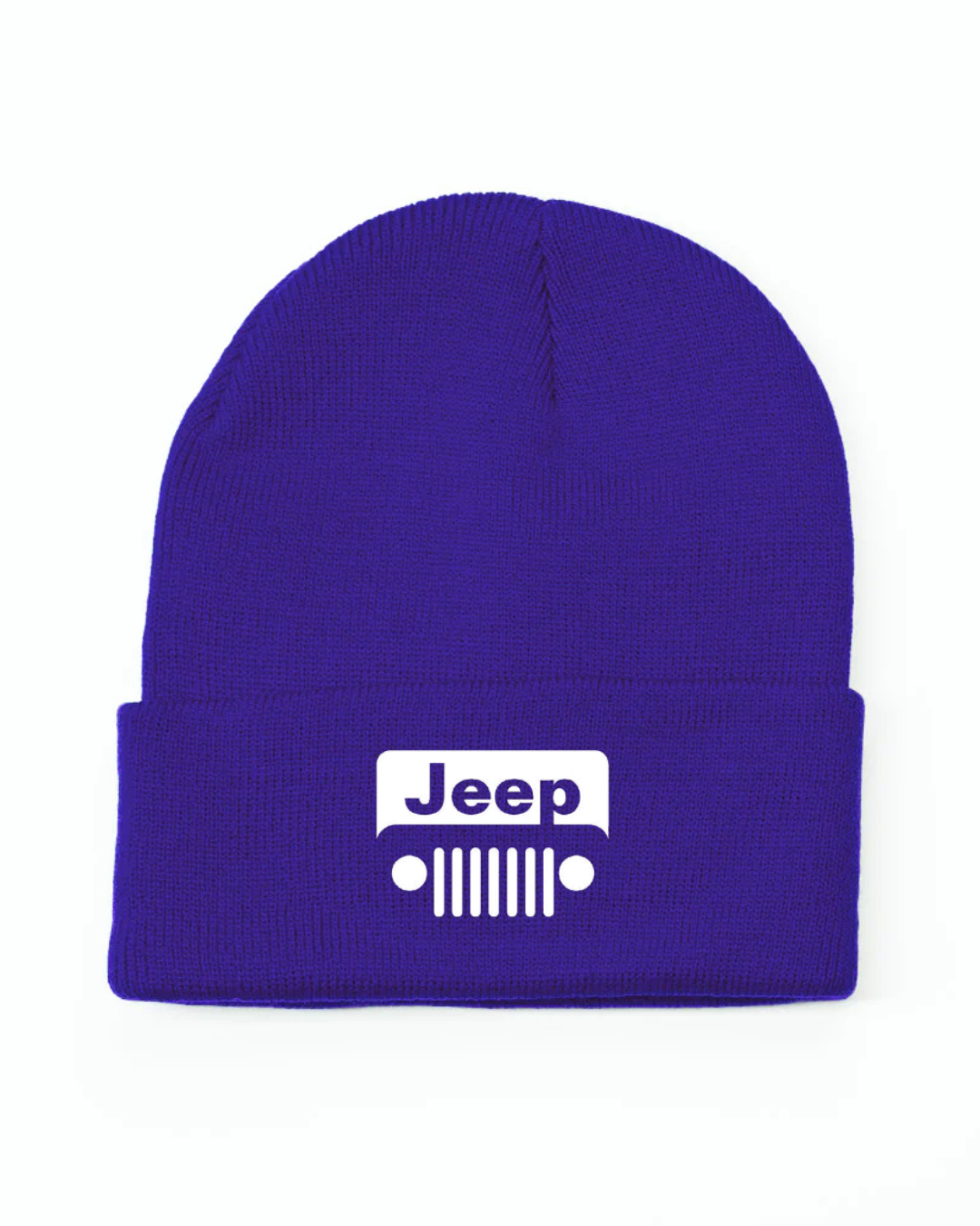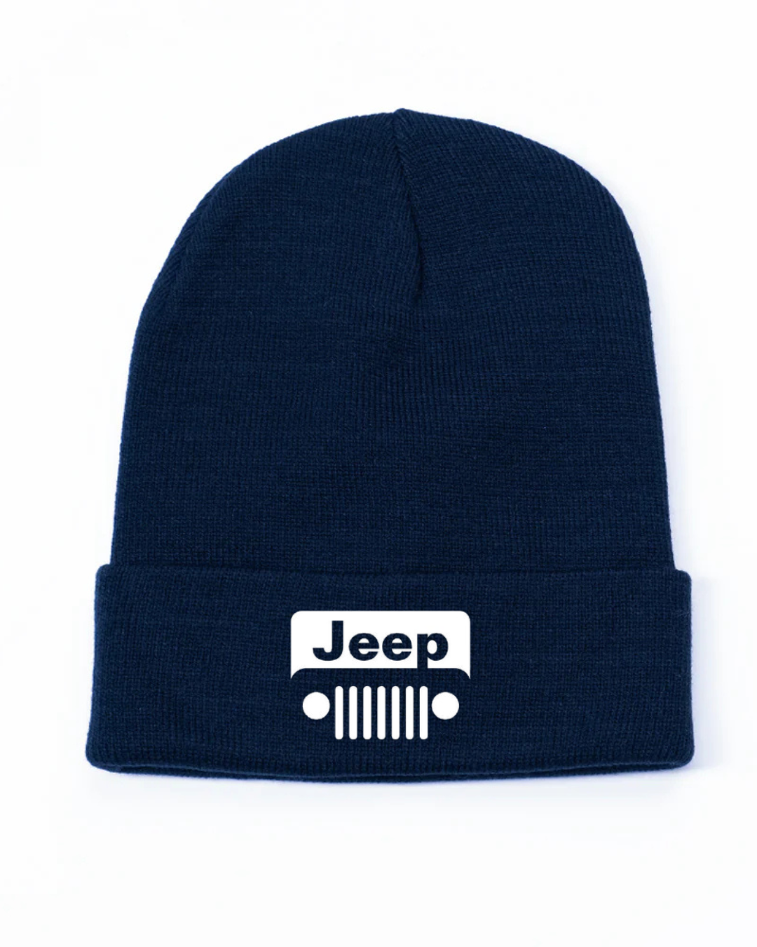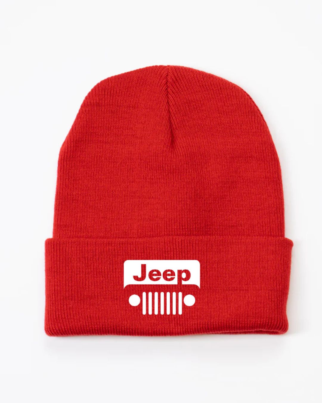 Show your adventurous spirit with this Jeep logo–inspired knit beanie, featuring the iconic Jeep-style text and grille emblem embroidered on the front cuff. Designed for fans of rugged automotive style, this beanie delivers a bold, outdoors-ready look that pairs perfectly with casual and streetwear outfits.