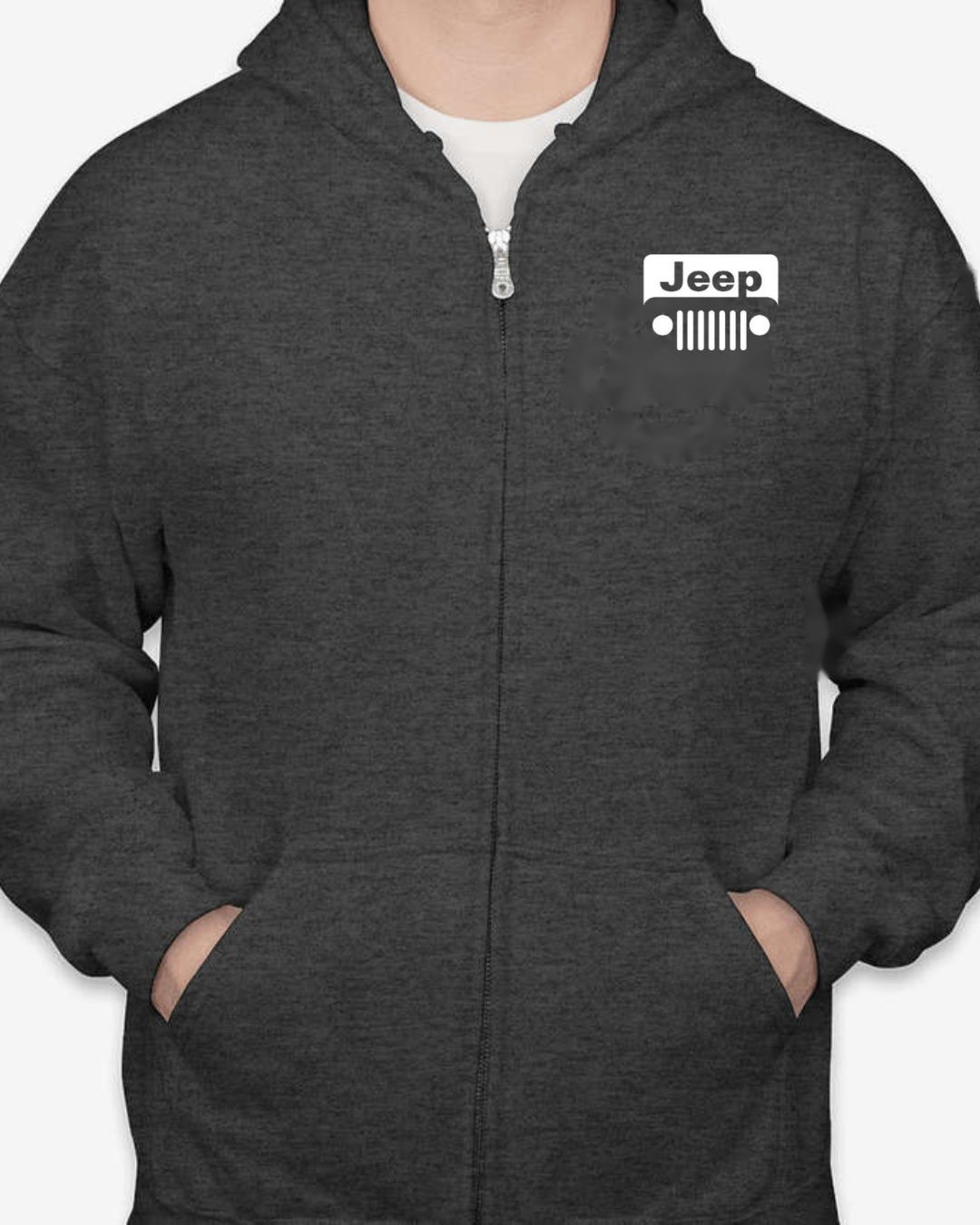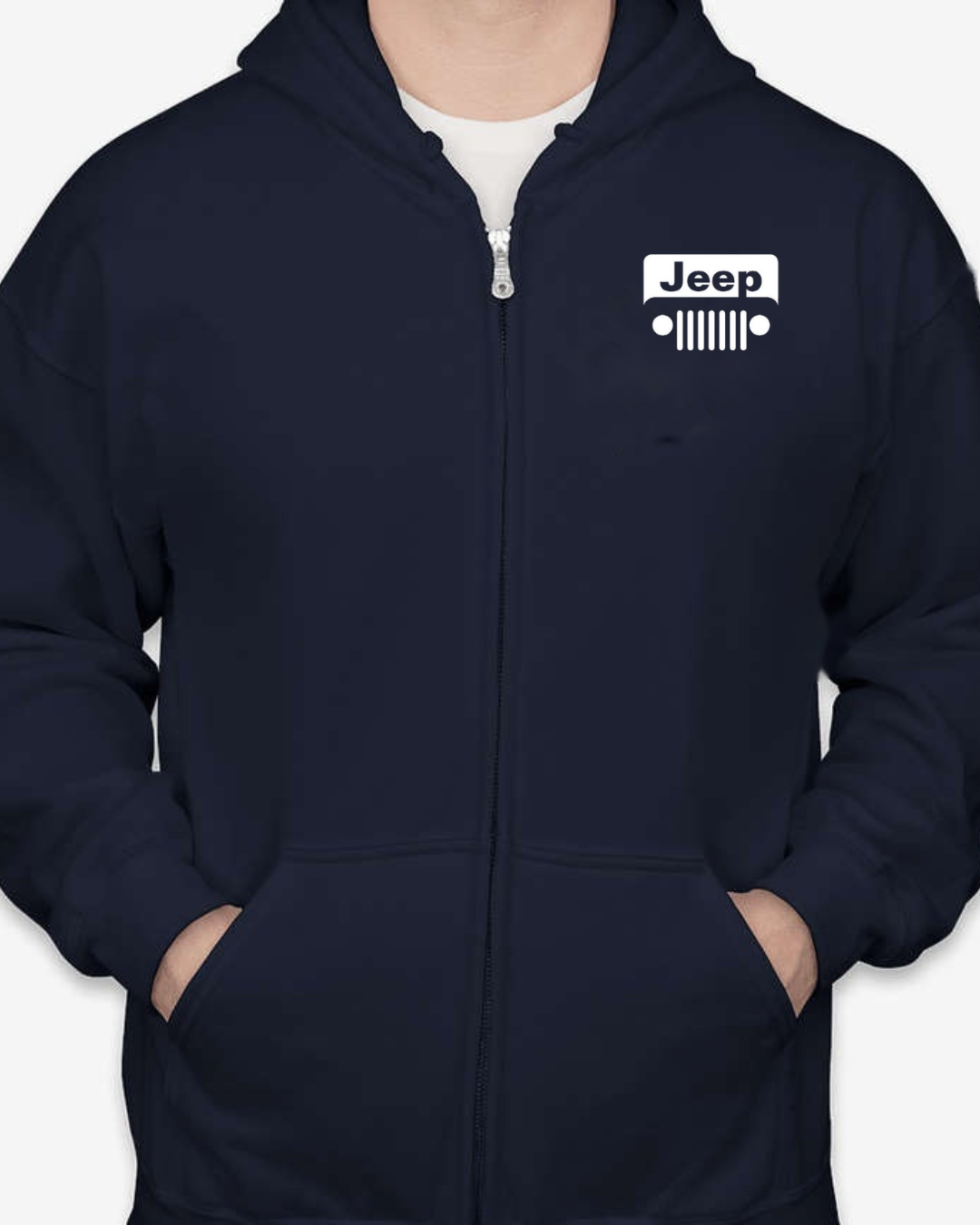 Show your off-road spirit with this Jeep logo inspired zip-up hoodie, featuring a clean front chest design inspired by the iconic Jeep grille and wordmark style. Built for adventure lovers and everyday comfort, this hoodie blends rugged automotive inspiration with modern streetwear appeal.