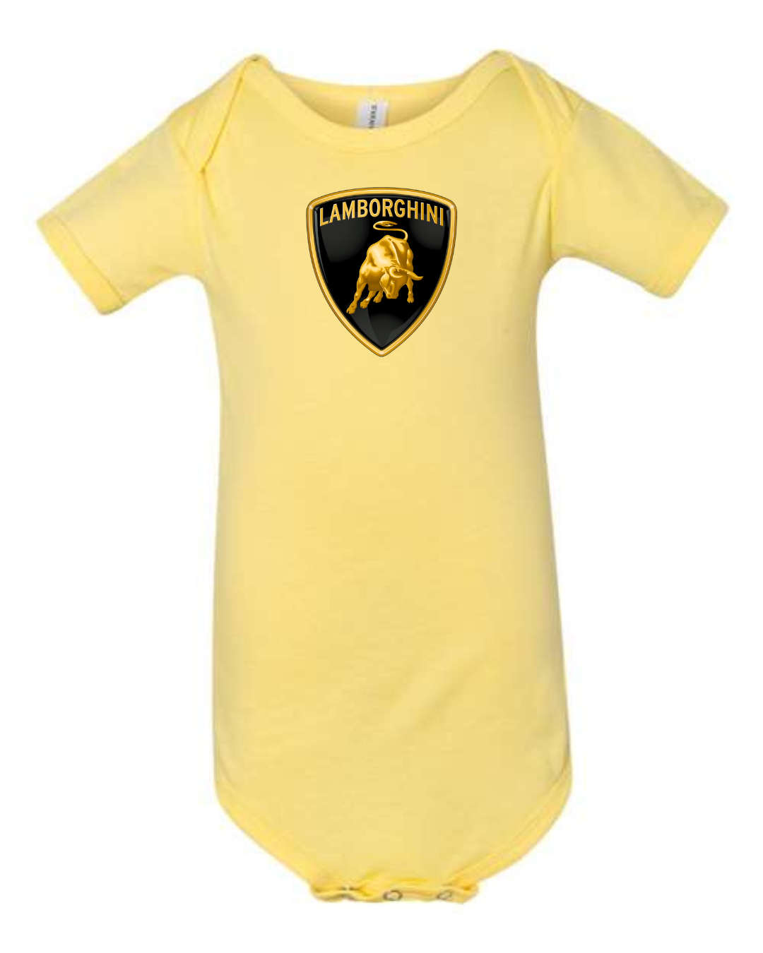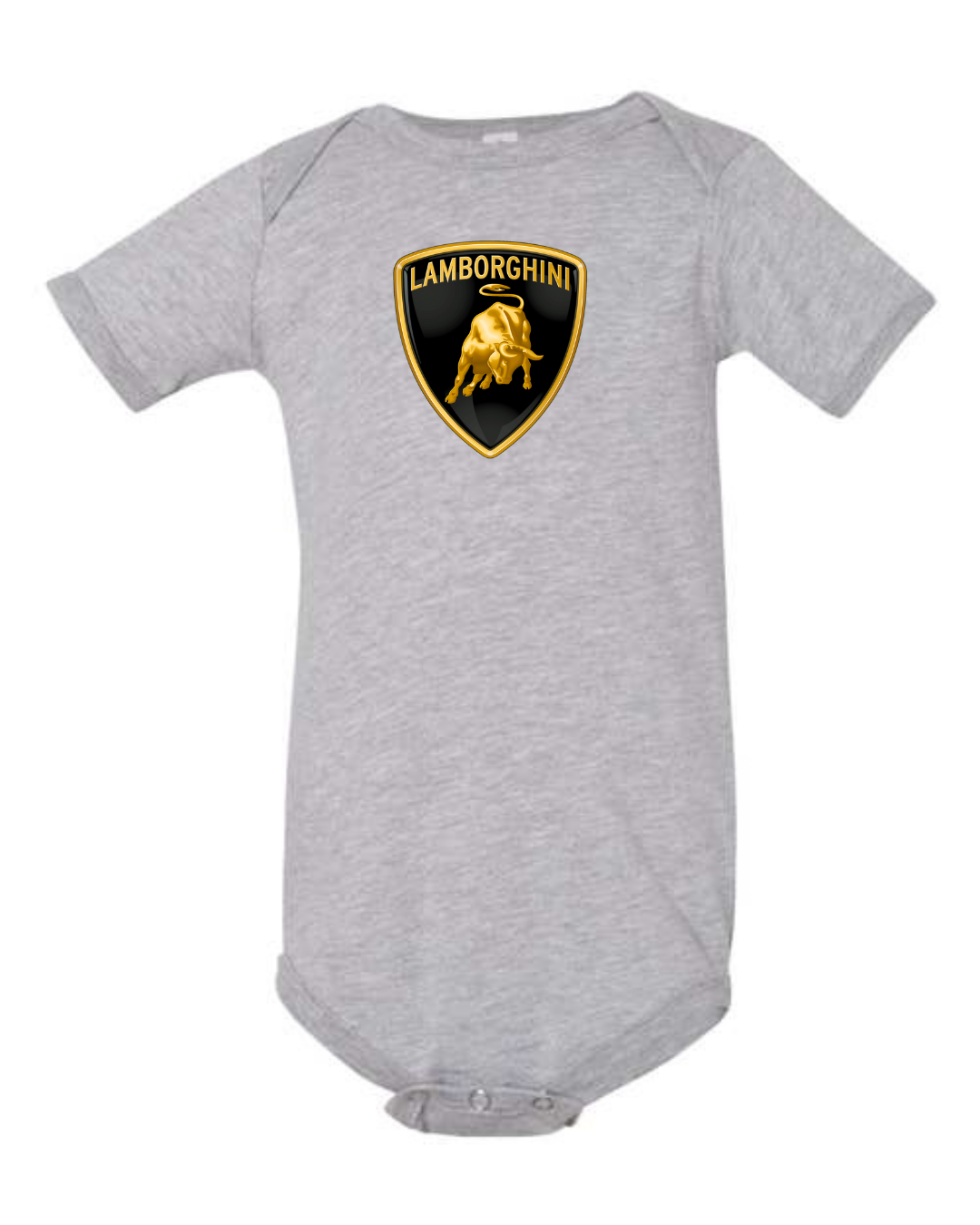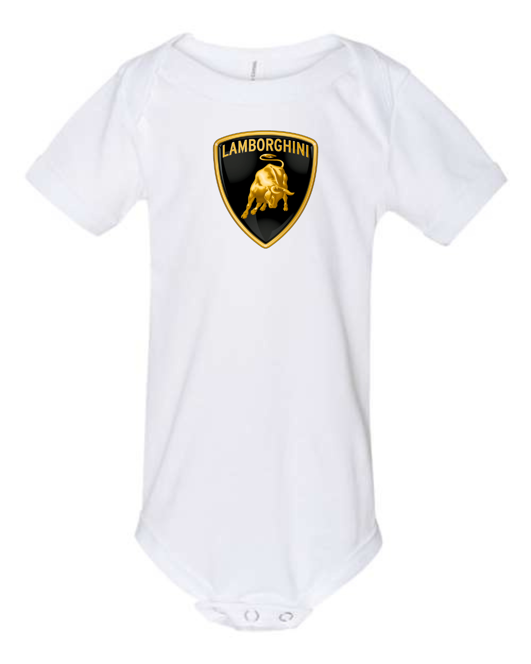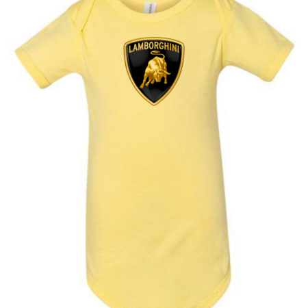 Give your little one bold, luxury automotive style with this Lamborghini Logo Infant Bodysuit. Made from soft, breathable fabric, this short-sleeve baby one-piece is gentle on delicate skin and designed for everyday comfort. Featuring the iconic Lamborghini bull crest logo printed on the front, it’s perfect for supercar fans and families who love premium automotive design. The snap-button closure at the bottom makes diaper changes quick and easy, combining standout style with baby-friendly practicality.