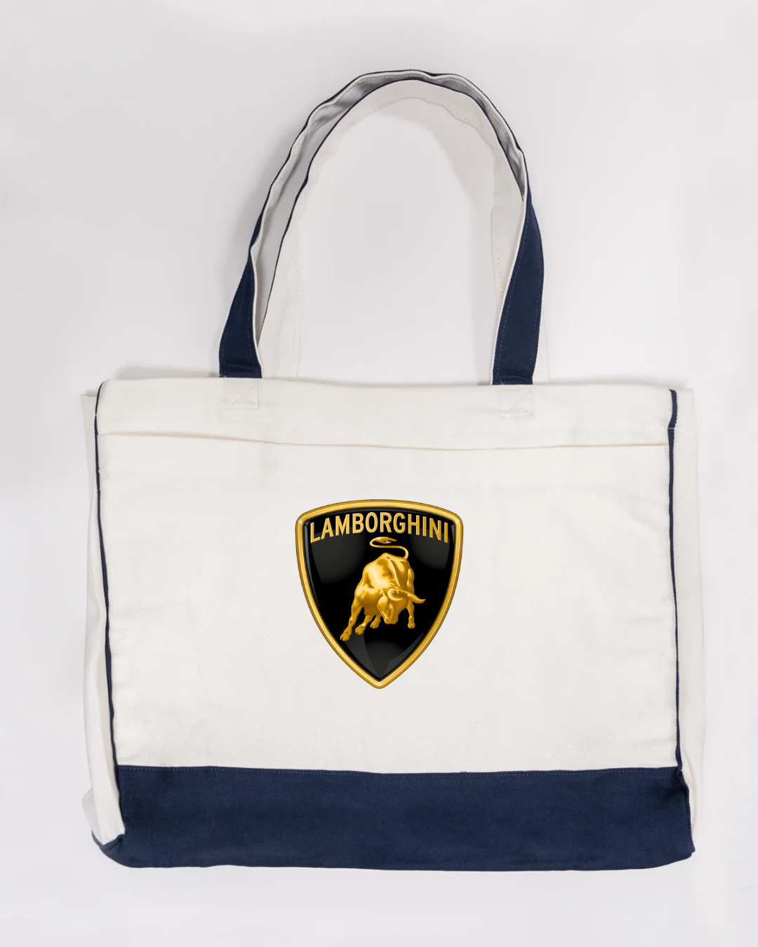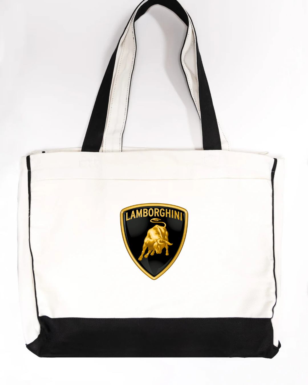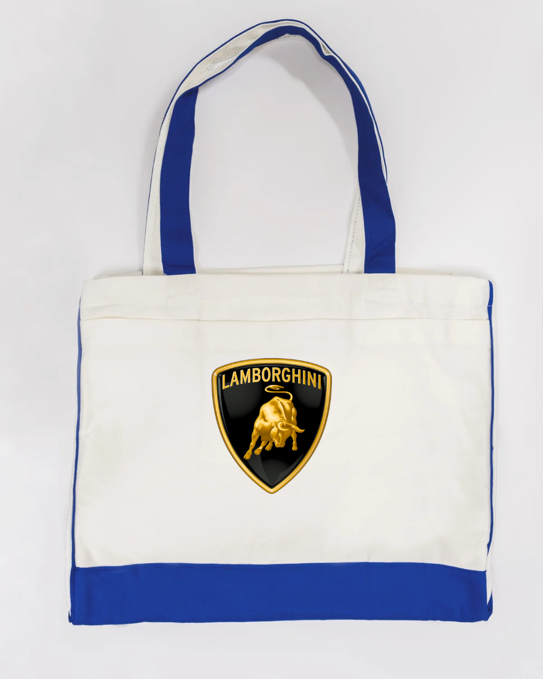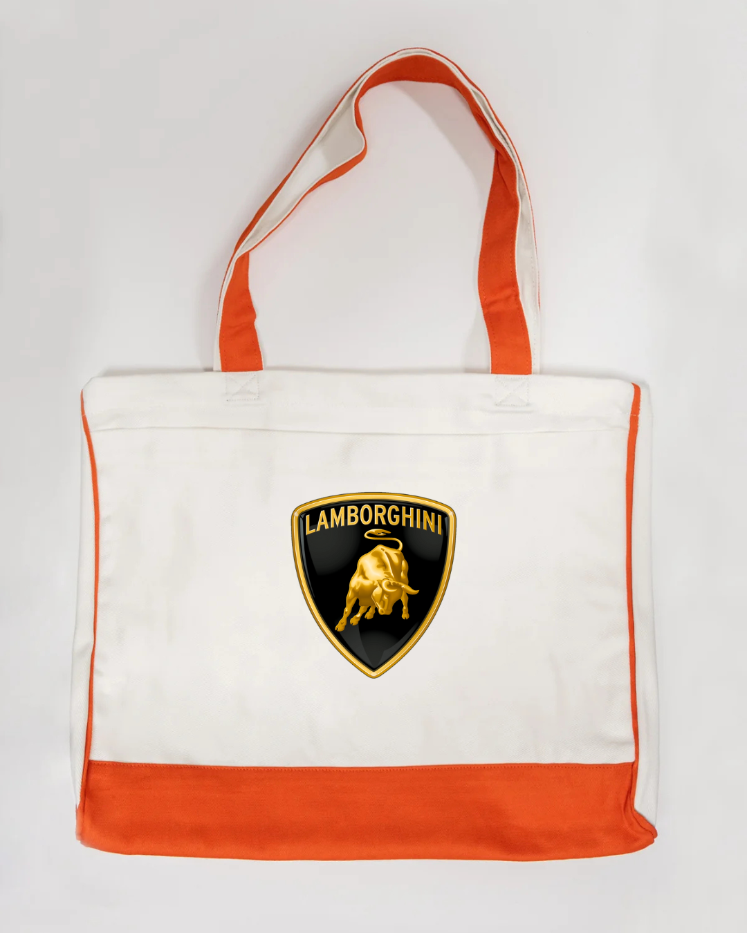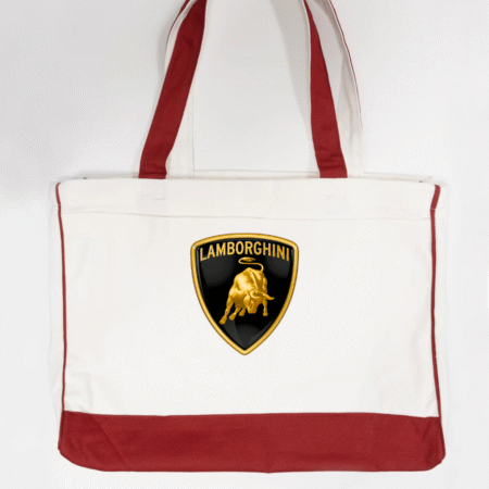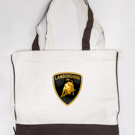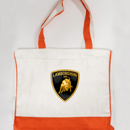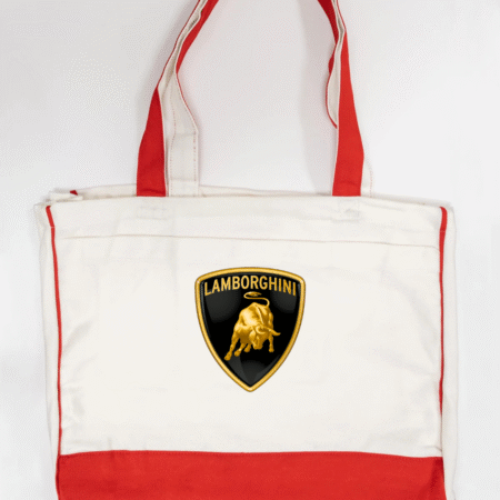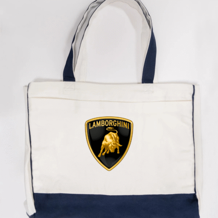 Carry bold Italian supercar style with this Lamborghini logo canvas tote bag, featuring the iconic gold bull shield emblem. Powerful, premium, and instantly recognisable, this tote is perfect for supercar enthusiasts and lovers of high-end automotive design.