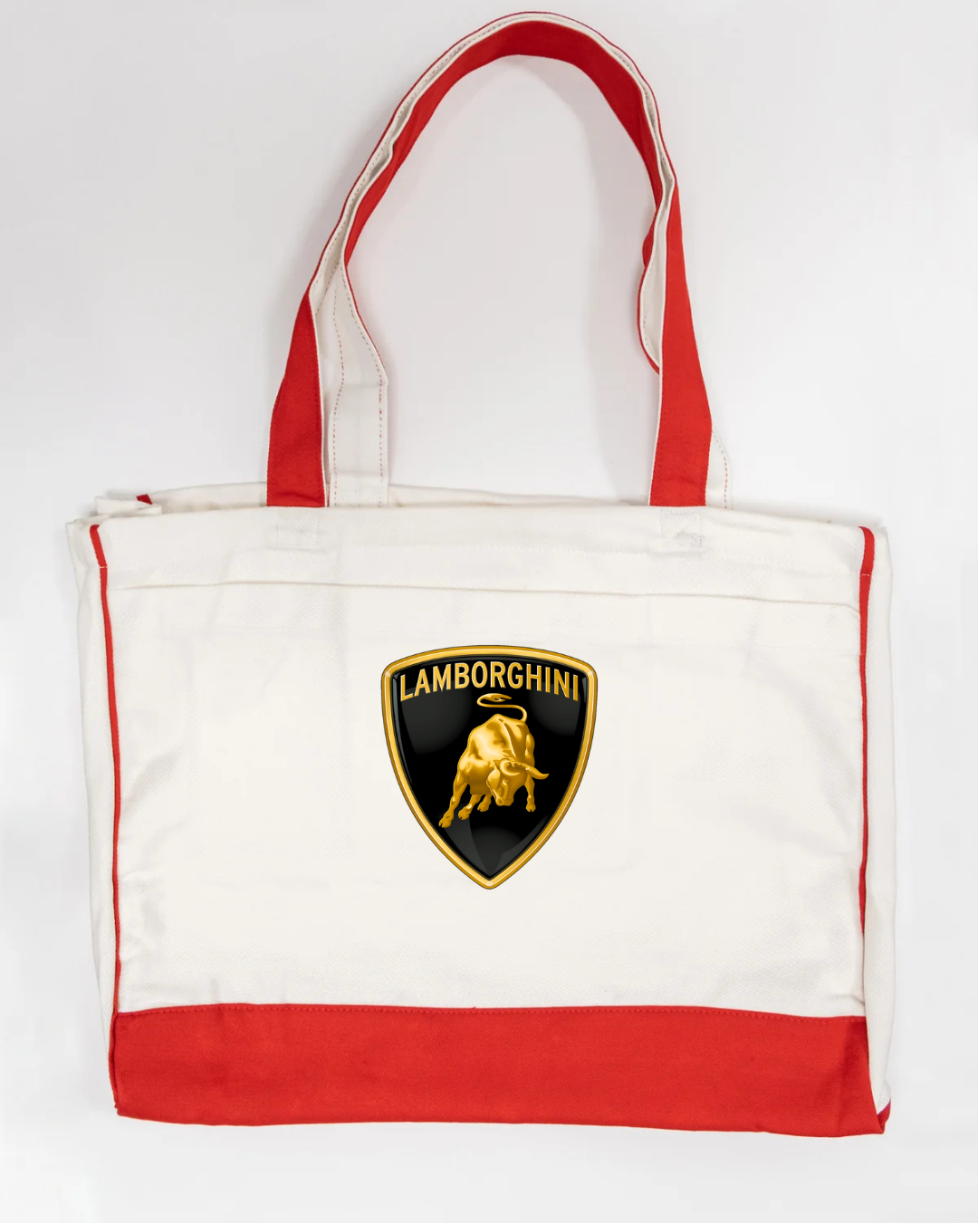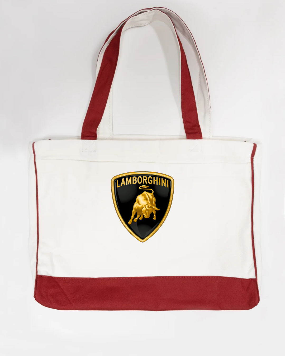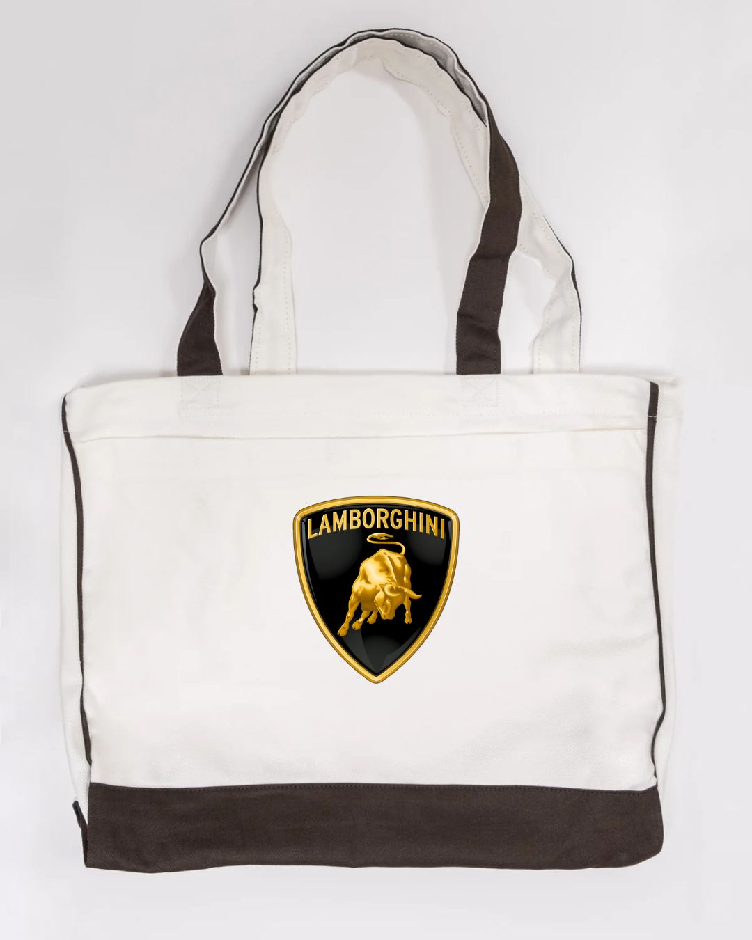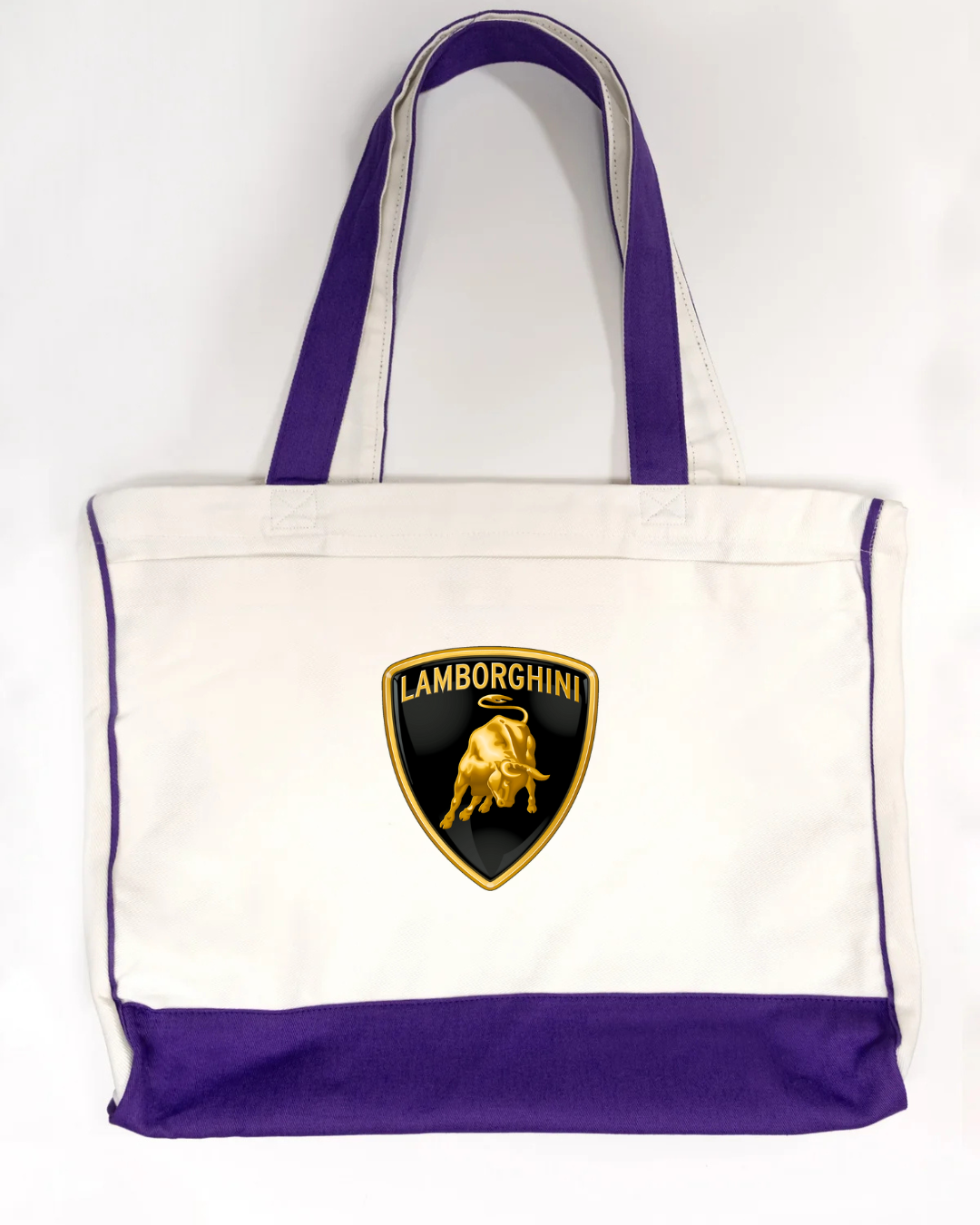 Carry bold Italian supercar style with this Lamborghini logo canvas tote bag, featuring the iconic gold bull shield emblem. Powerful, premium, and instantly recognisable, this tote is perfect for supercar enthusiasts and lovers of high-end automotive design.