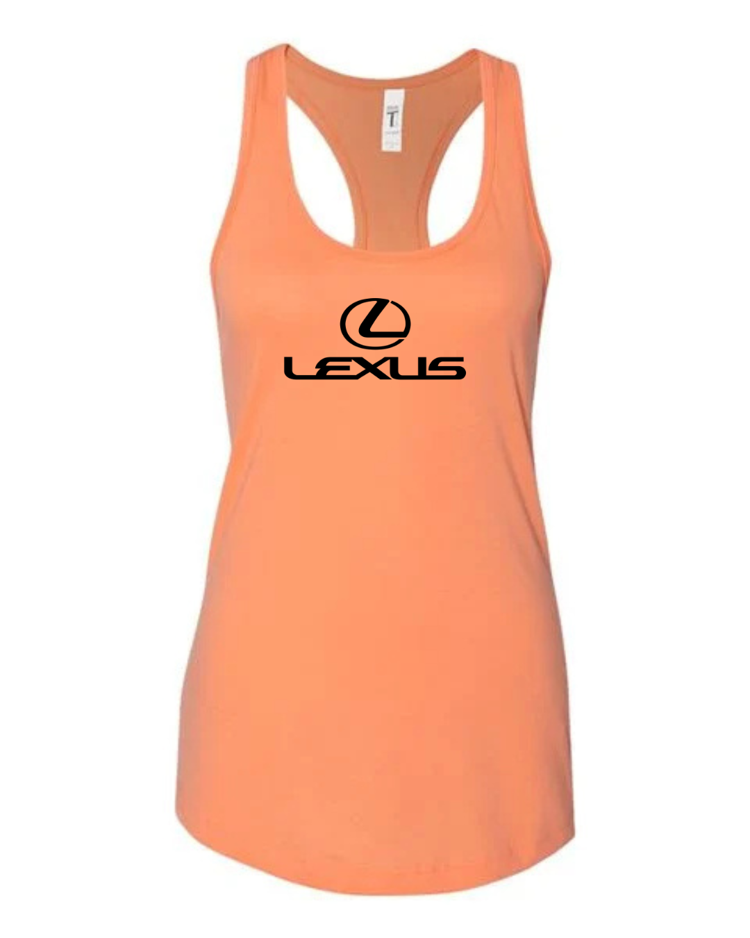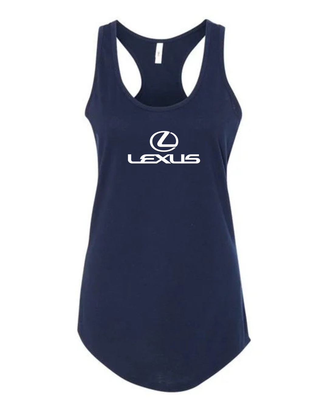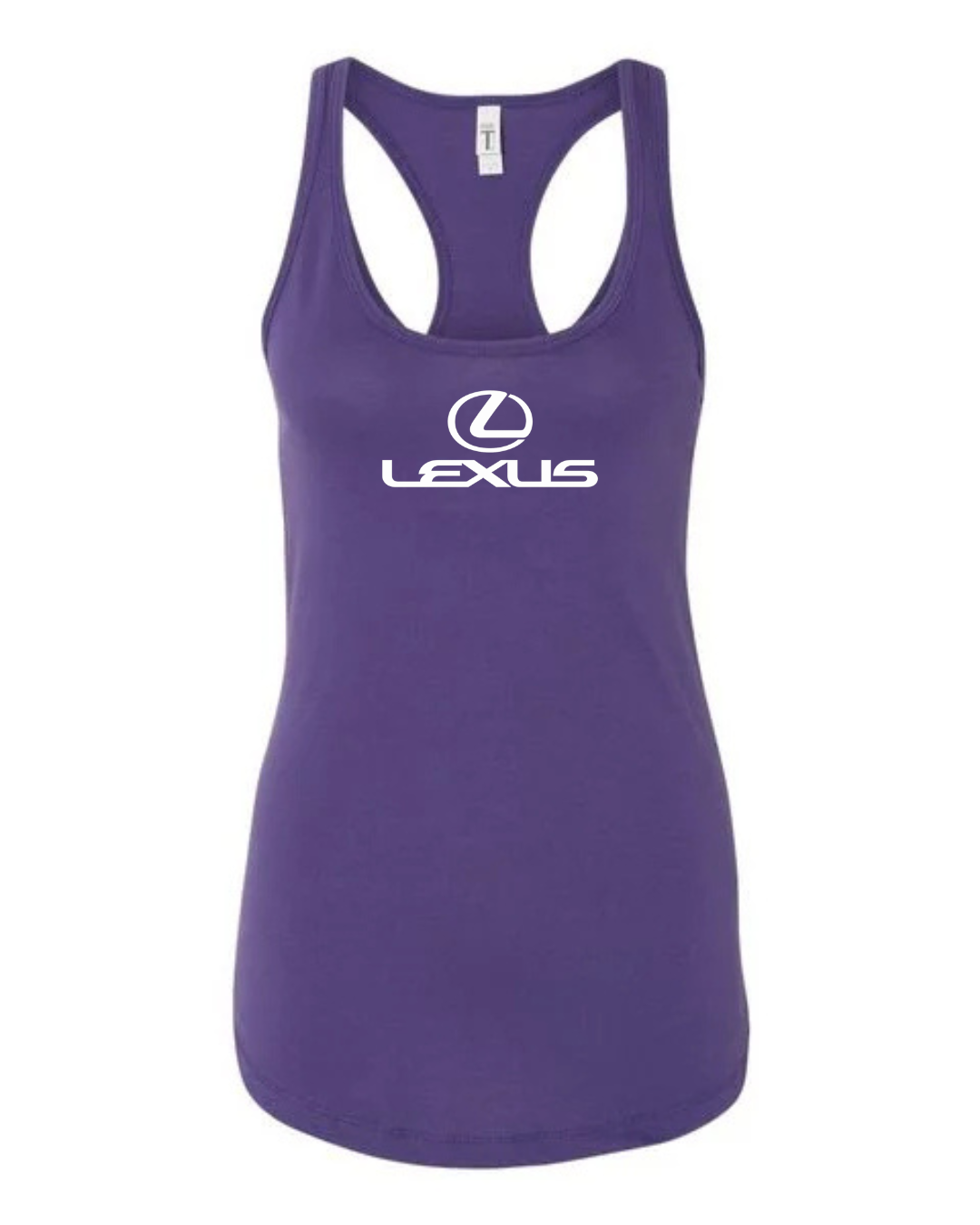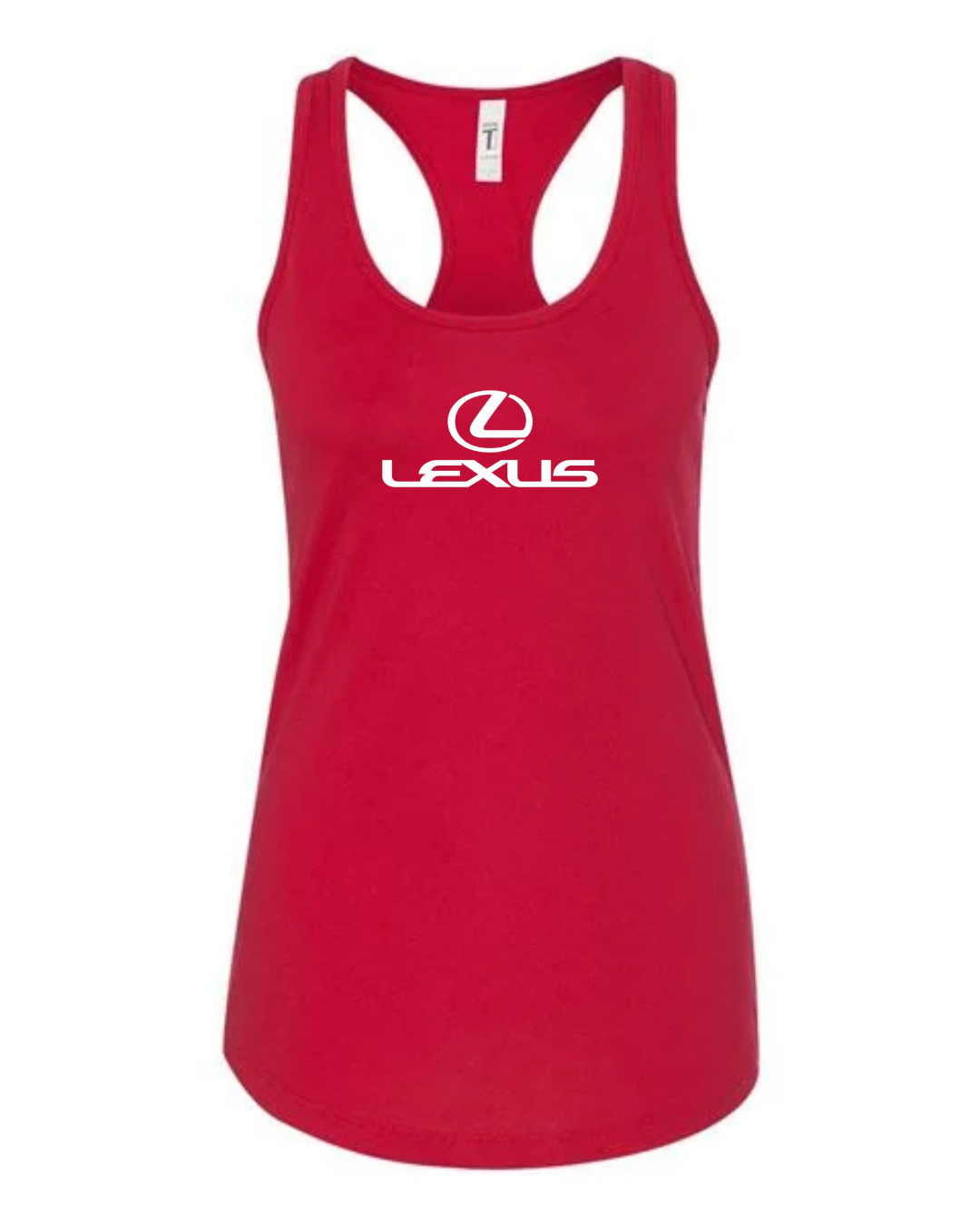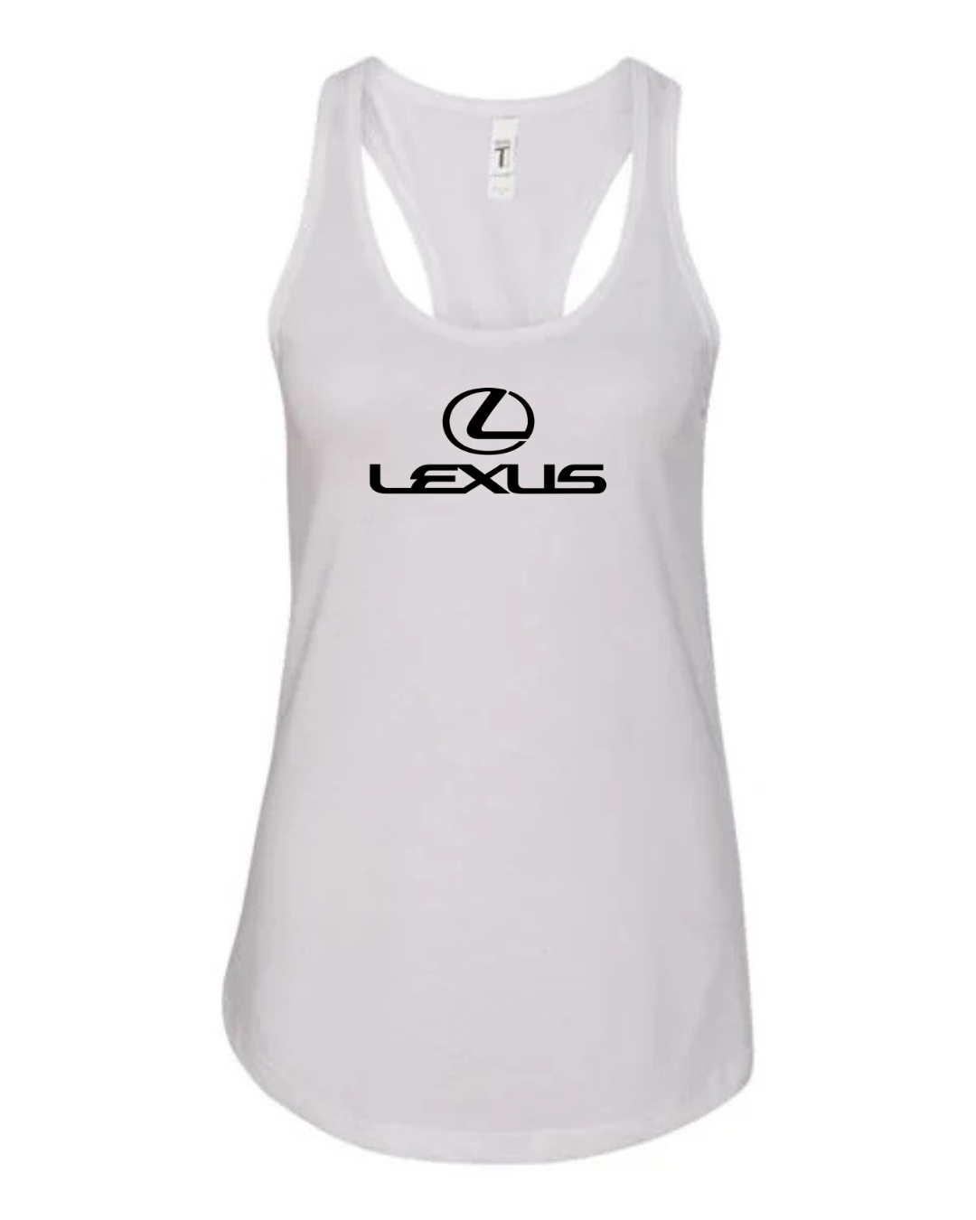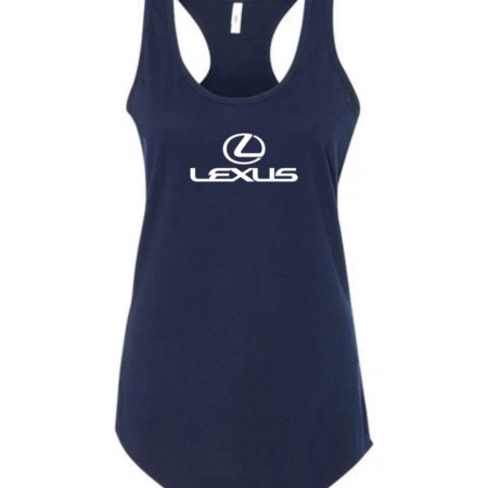 Showcase refined automotive style with this Lexus inspired women’s racerback tank top. Featuring a sleek luxury auto–style logo printed on the front, this tank delivers a clean, modern look inspired by premium performance and elegance.