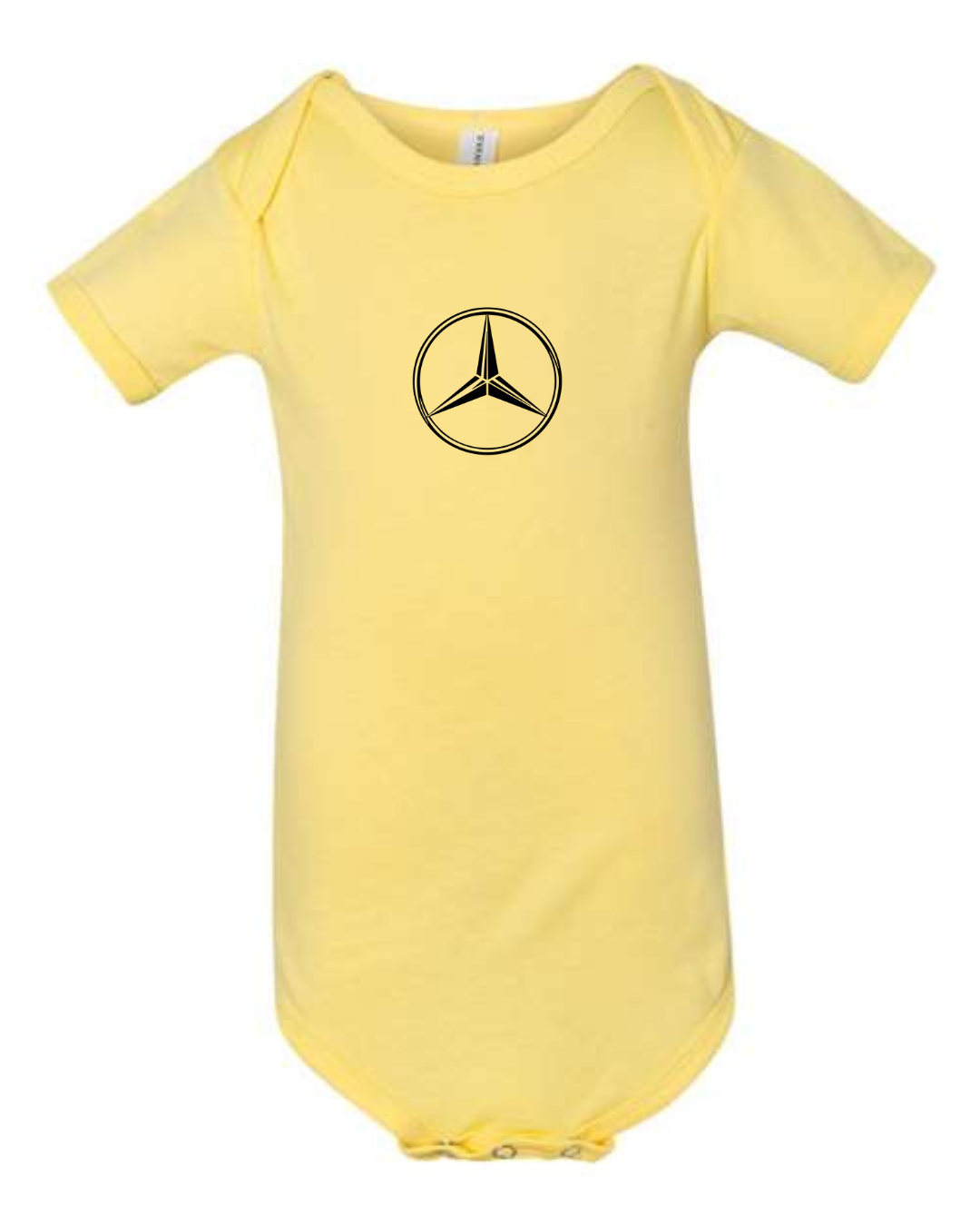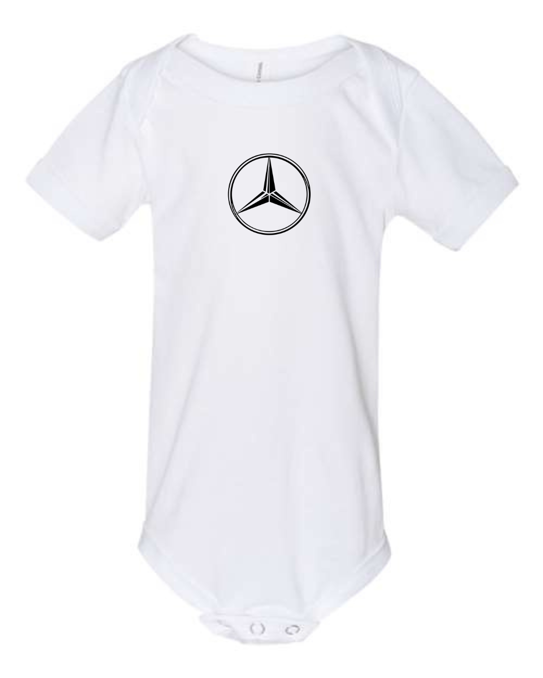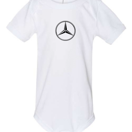 Dress your little one in timeless automotive-inspired style with this Mercedes-Benz Logo Infant Bodysuit. Made from soft, breathable fabric, this short-sleeve baby one-piece is gentle on delicate skin and perfect for everyday comfort. Featuring the iconic Mercedes-Benz three-pointed star logo printed on the front, it’s an ideal choice for luxury car lovers and Mercedes fans. The snap-button closure at the bottom ensures quick and easy diaper changes, making it both stylish and practical for daily wear or gifting.