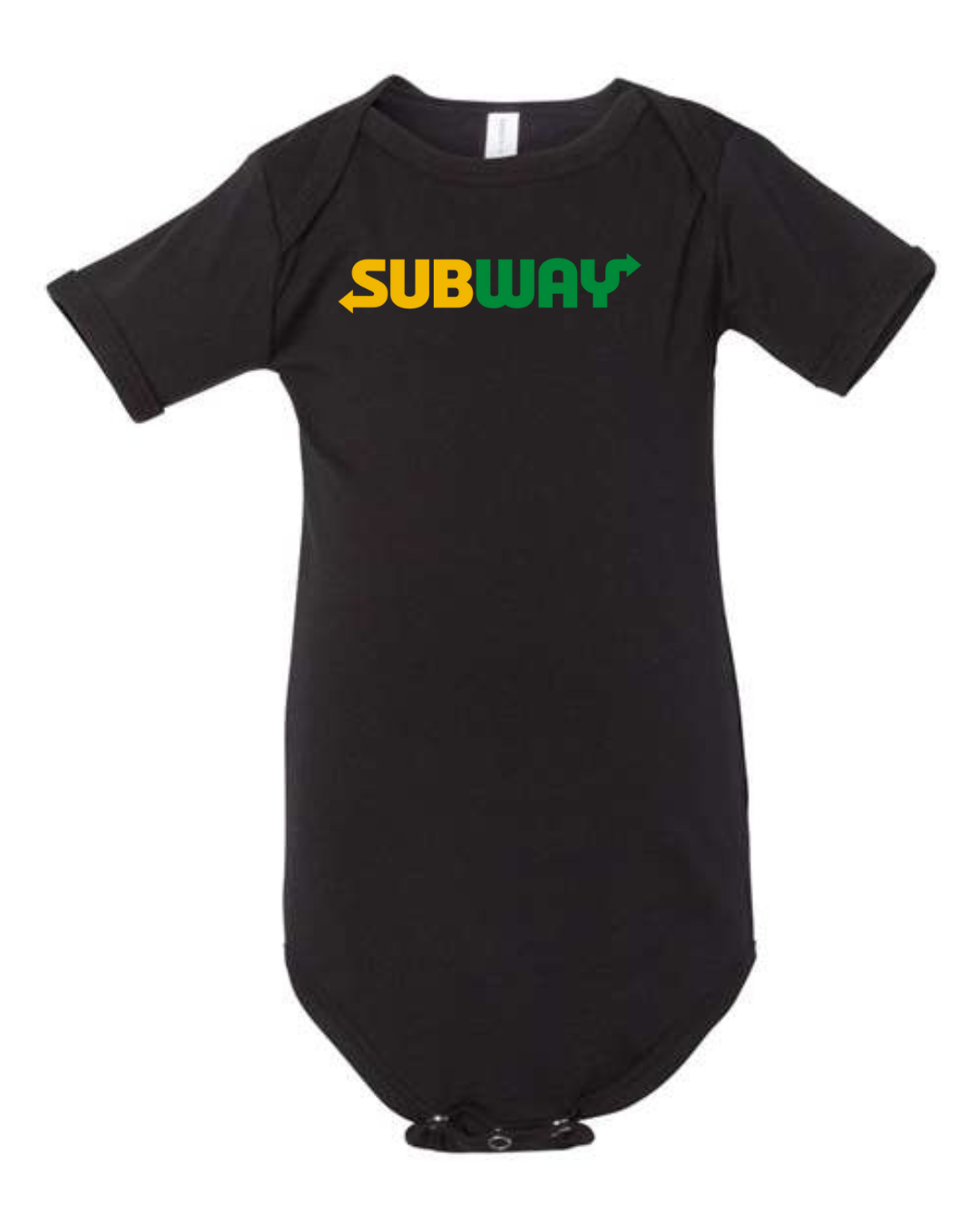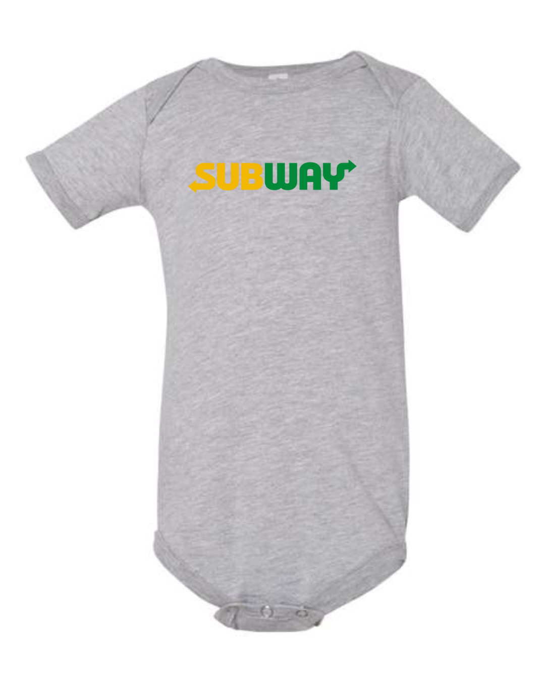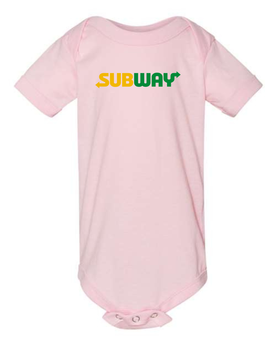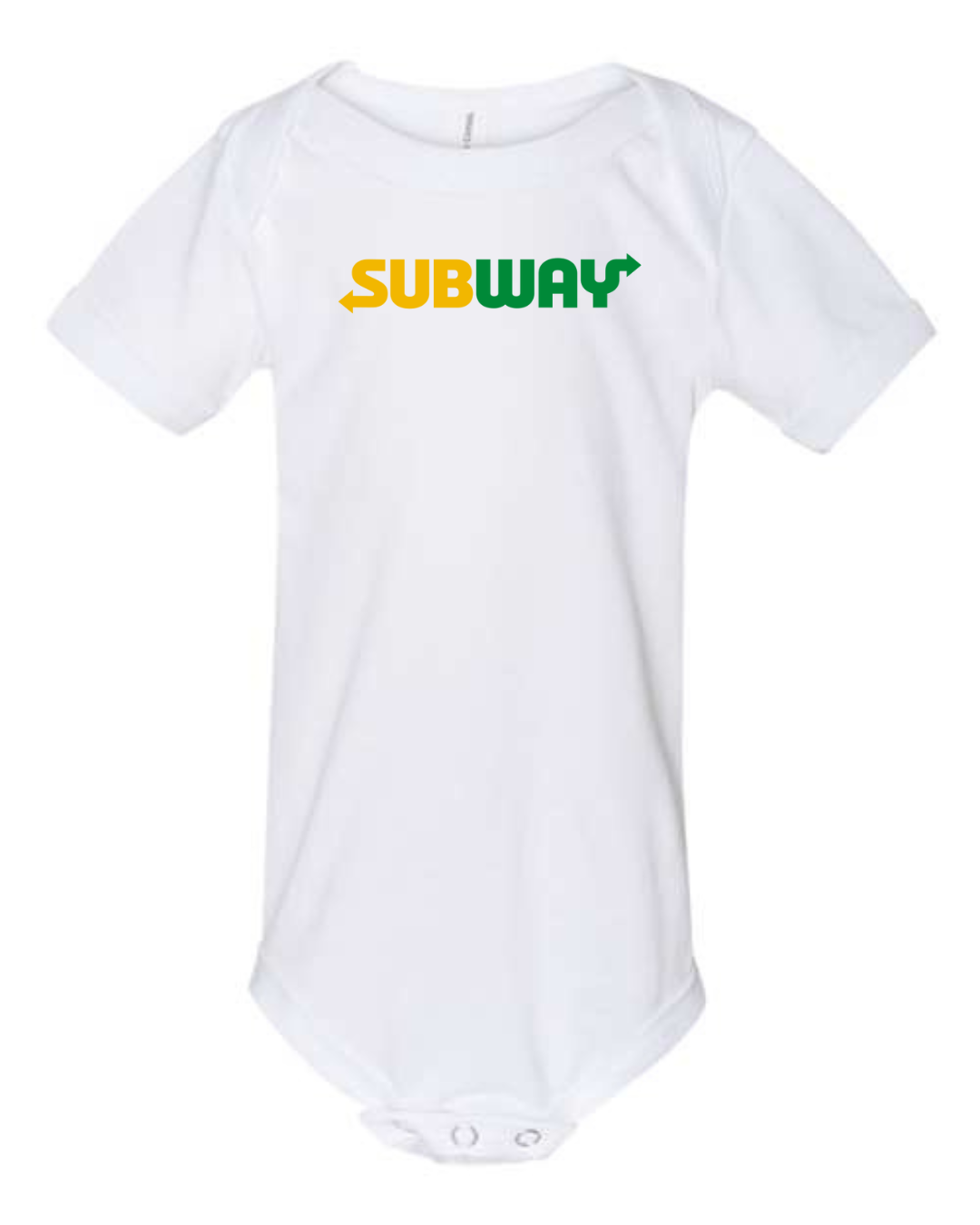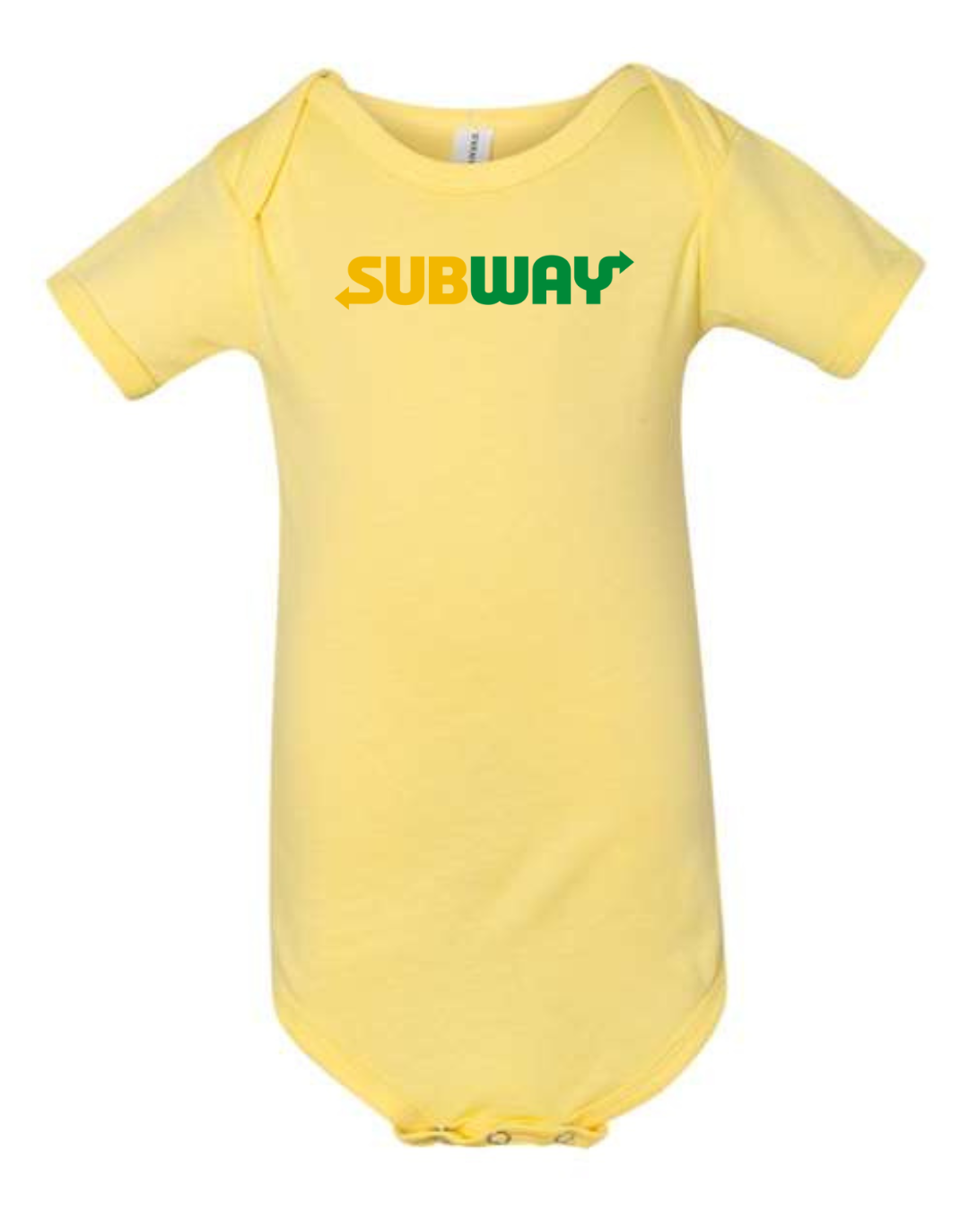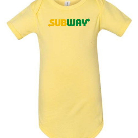 Keep your little one comfy with a fun, food-inspired look in this Subway Logo Infant Bodysuit. Made from soft, breathable fabric, this short-sleeve baby one-piece is gentle on delicate skin and perfect for everyday wear. Featuring the recognizable Subway logo printed on the front, it’s a playful choice for sandwich lovers and fans of iconic brands. Designed with snap-button closures at the bottom, diaper changes are quick and hassle-free—ideal for daily wear, outings, or baby shower gifts.