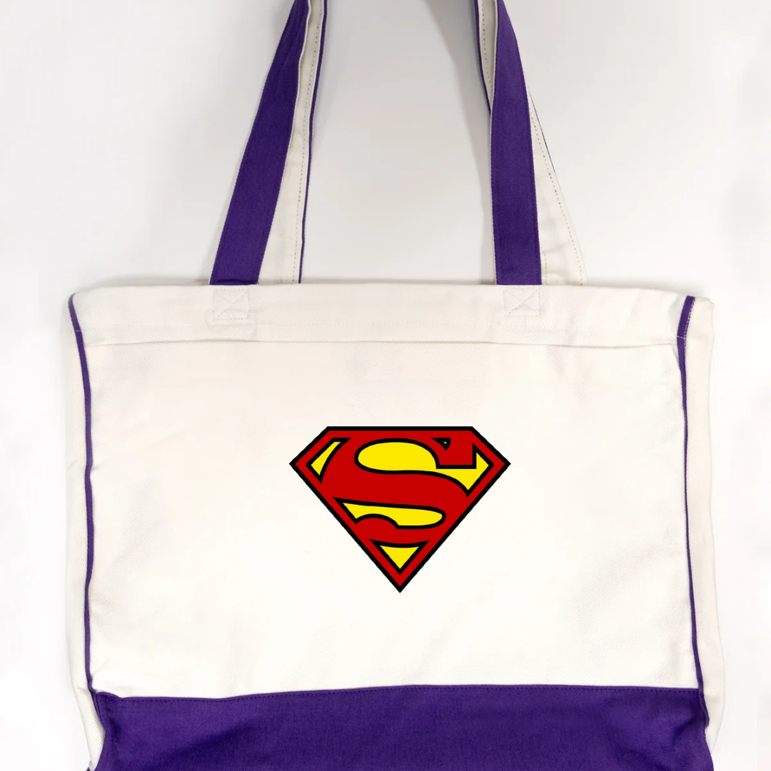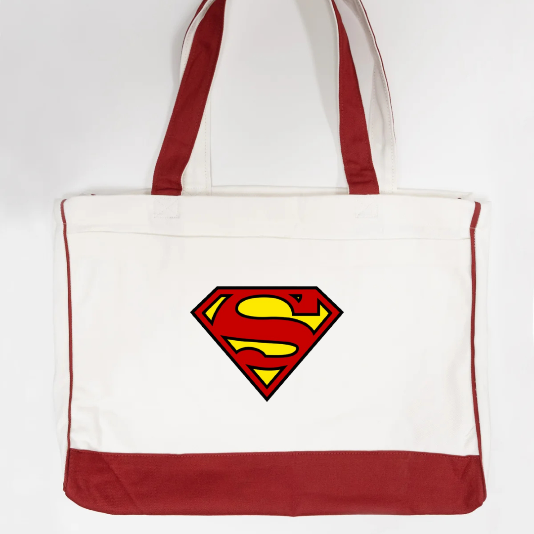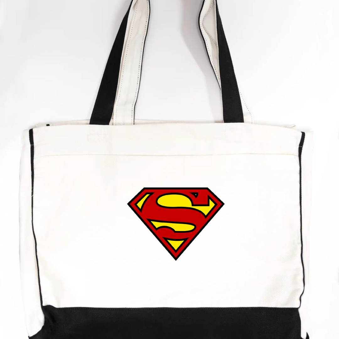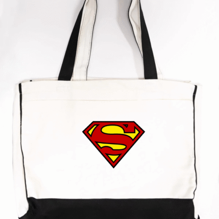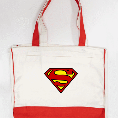 Carry iconic superhero style with this Superman logo canvas tote bag, featuring the instantly recognisable red-and-yellow “S” shield. Bold, classic, and timeless, this tote is perfect for DC Comics fans and lovers of legendary superhero design.