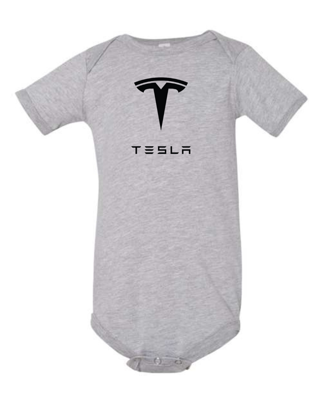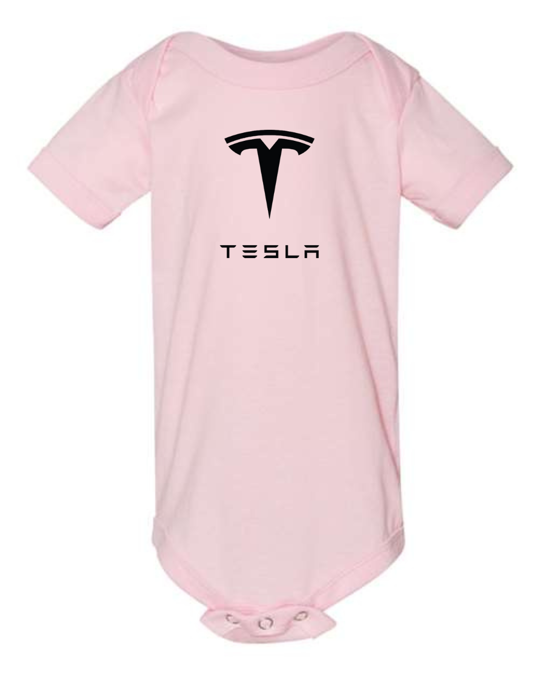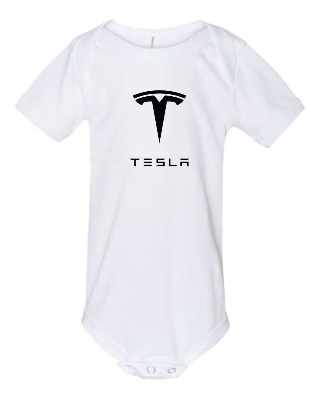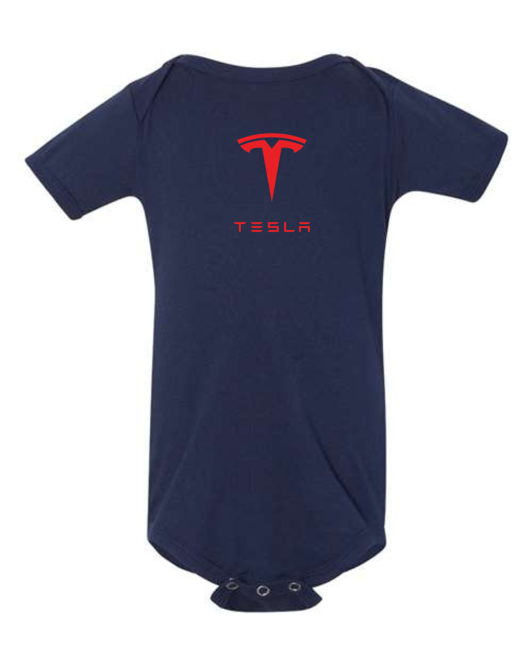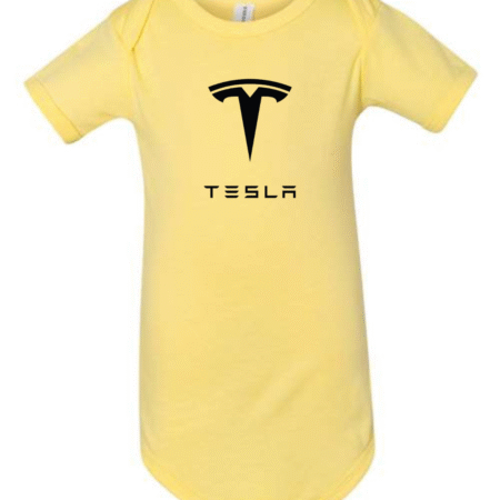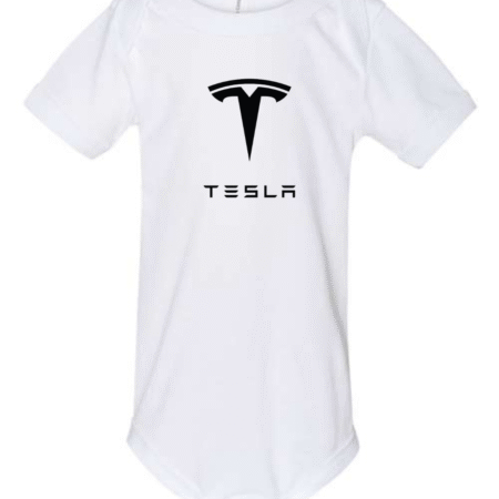 Give your little one a sleek, modern look with this Tesla Logo Infant Bodysuit. Crafted from soft, breathable fabric, this short-sleeve baby one-piece is gentle on delicate skin and designed for everyday comfort. Featuring the iconic Tesla “T” logo printed on the front, it’s a perfect choice for tech-forward families and electric car enthusiasts. The snap-button closure at the bottom makes diaper changes quick and easy, combining minimalist style with practical babywear design.