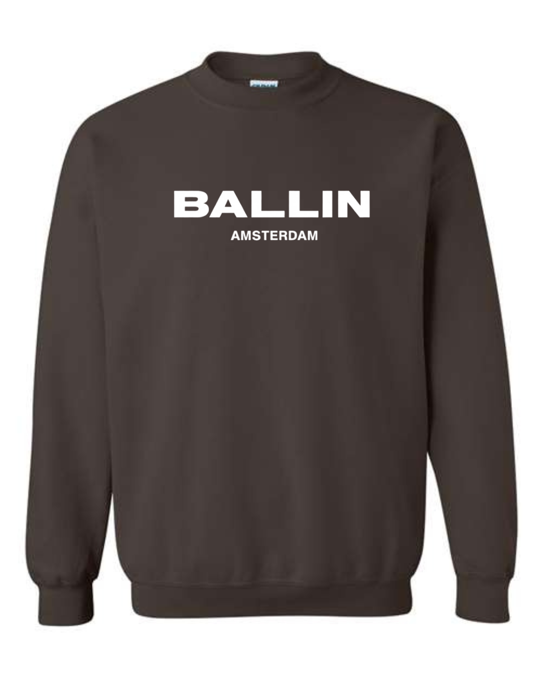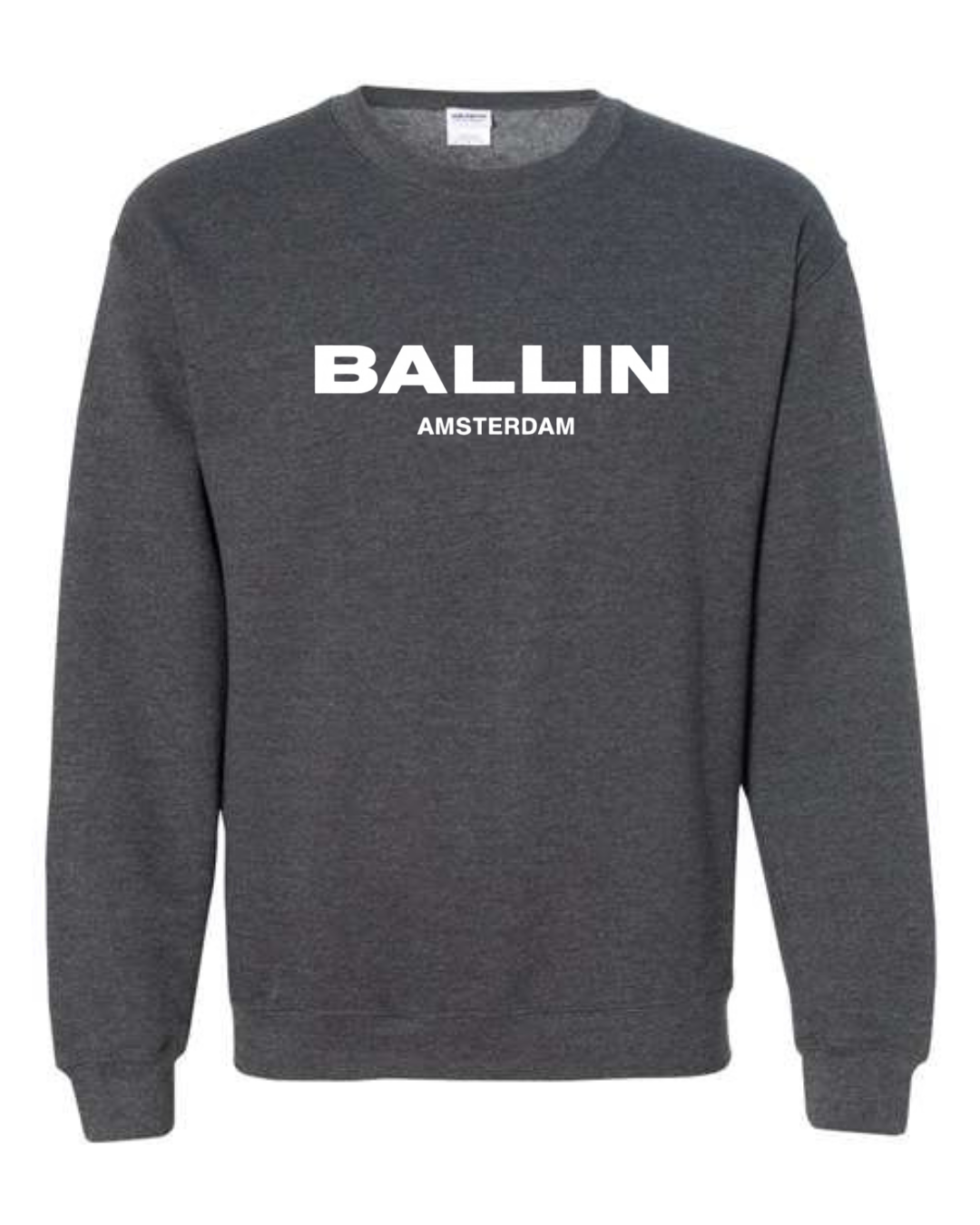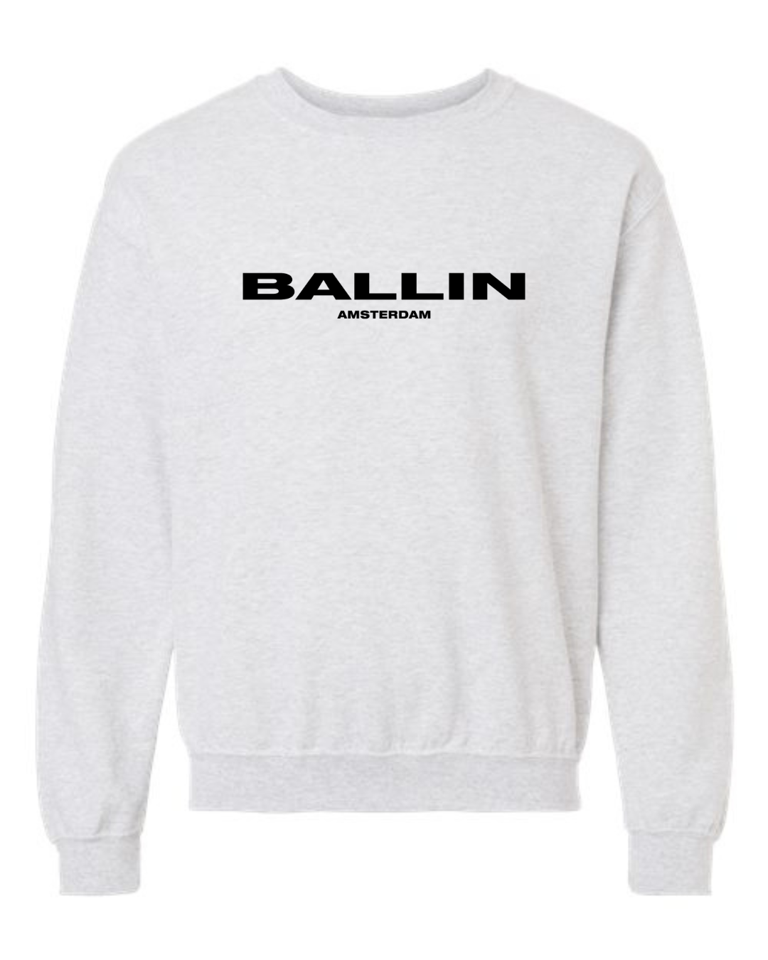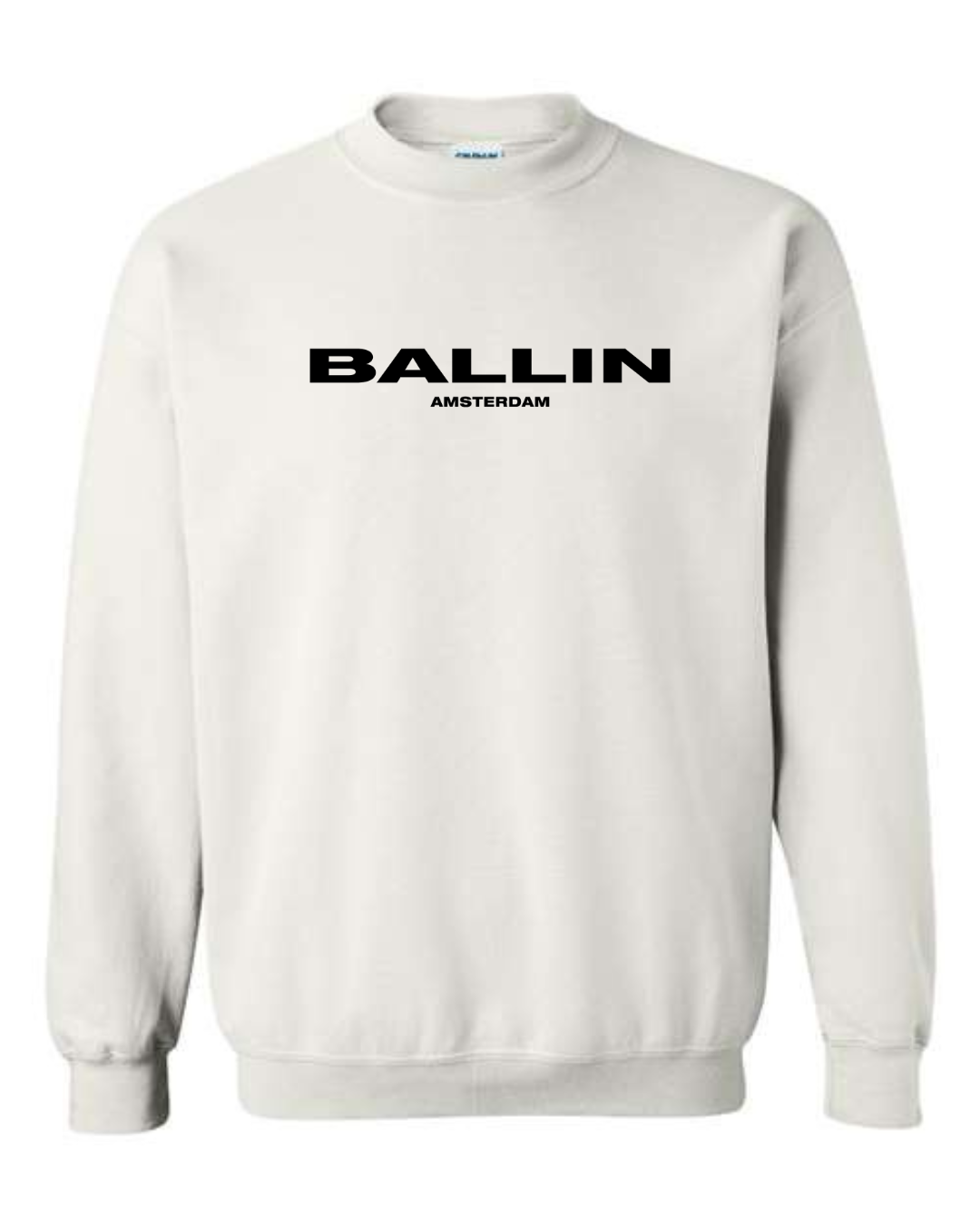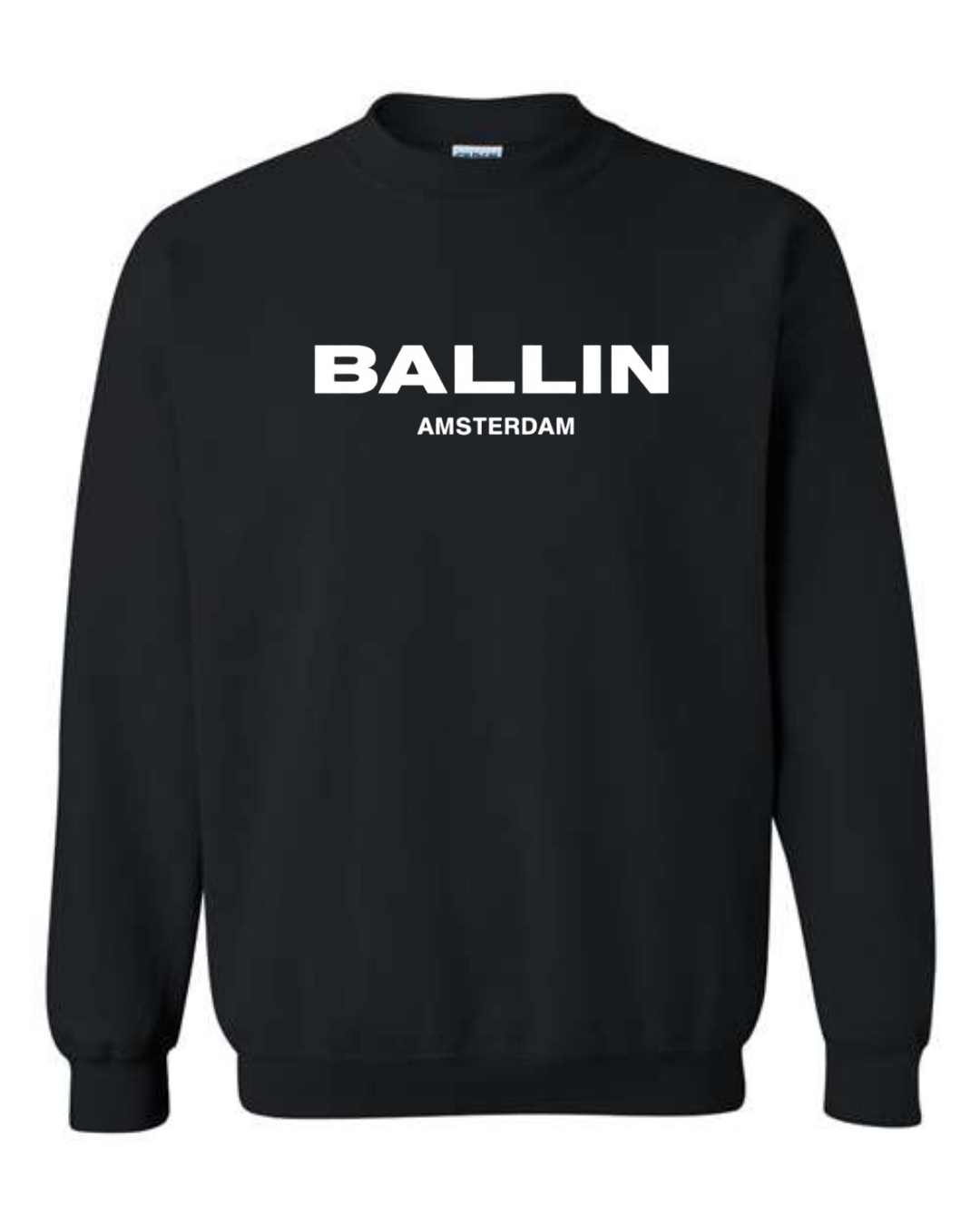 Keep your look bold and minimal with this unisex Ballin Amsterdam logo sweatshirt. Featuring the clean BALLIN wordmark with Amsterdam branding printed on the chest, this crewneck delivers a modern streetwear aesthetic inspired by contemporary European fashion.