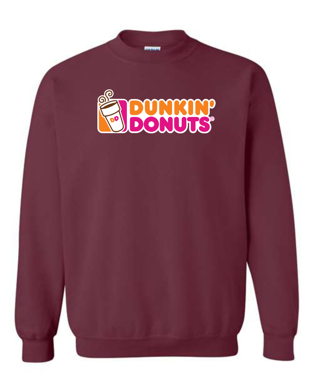 Add a fun and iconic touch to your everyday style with this unisex Dunkin’ Donuts logo sweatshirt. Featuring the recognizable Dunkin’ Donuts branding with coffee cup graphic printed on the chest, this crewneck delivers a casual, upbeat look inspired by popular coffee culture and streetwear.