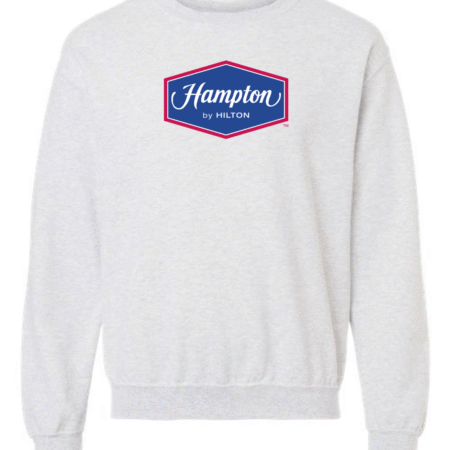 Keep your look clean and professional with this unisex Hampton by Hilton logo sweatshirt. Featuring the recognizable Hampton by Hilton badge printed on the chest, this crewneck delivers a polished, modern style inspired by trusted hospitality branding and everyday streetwear.