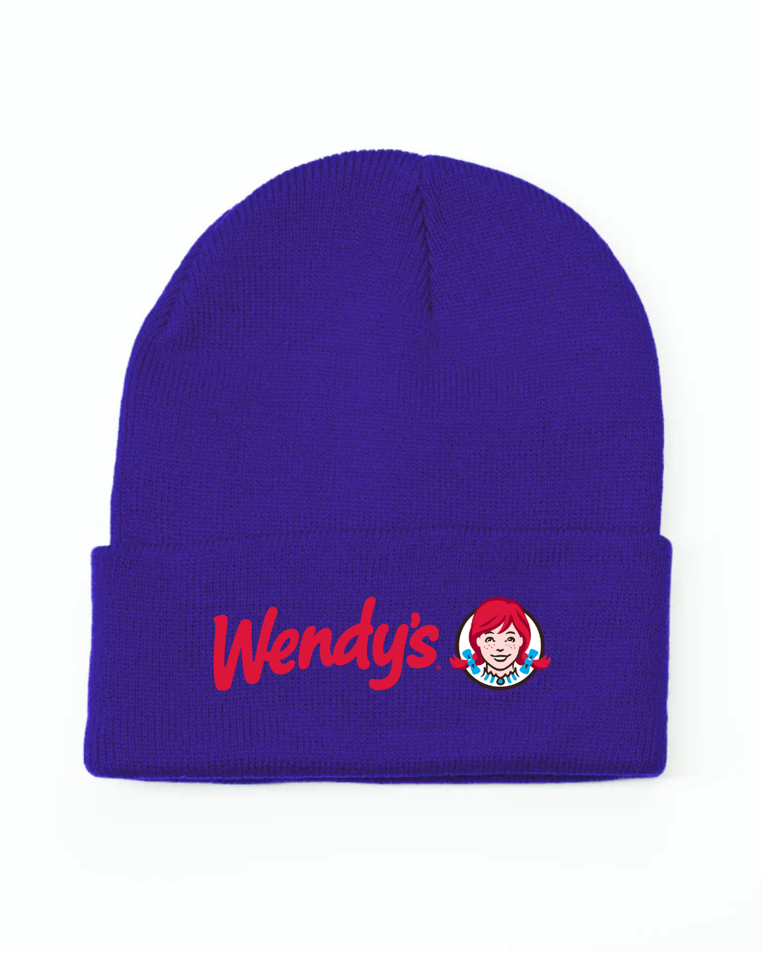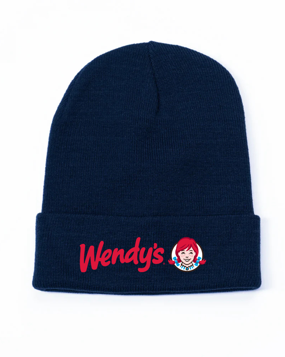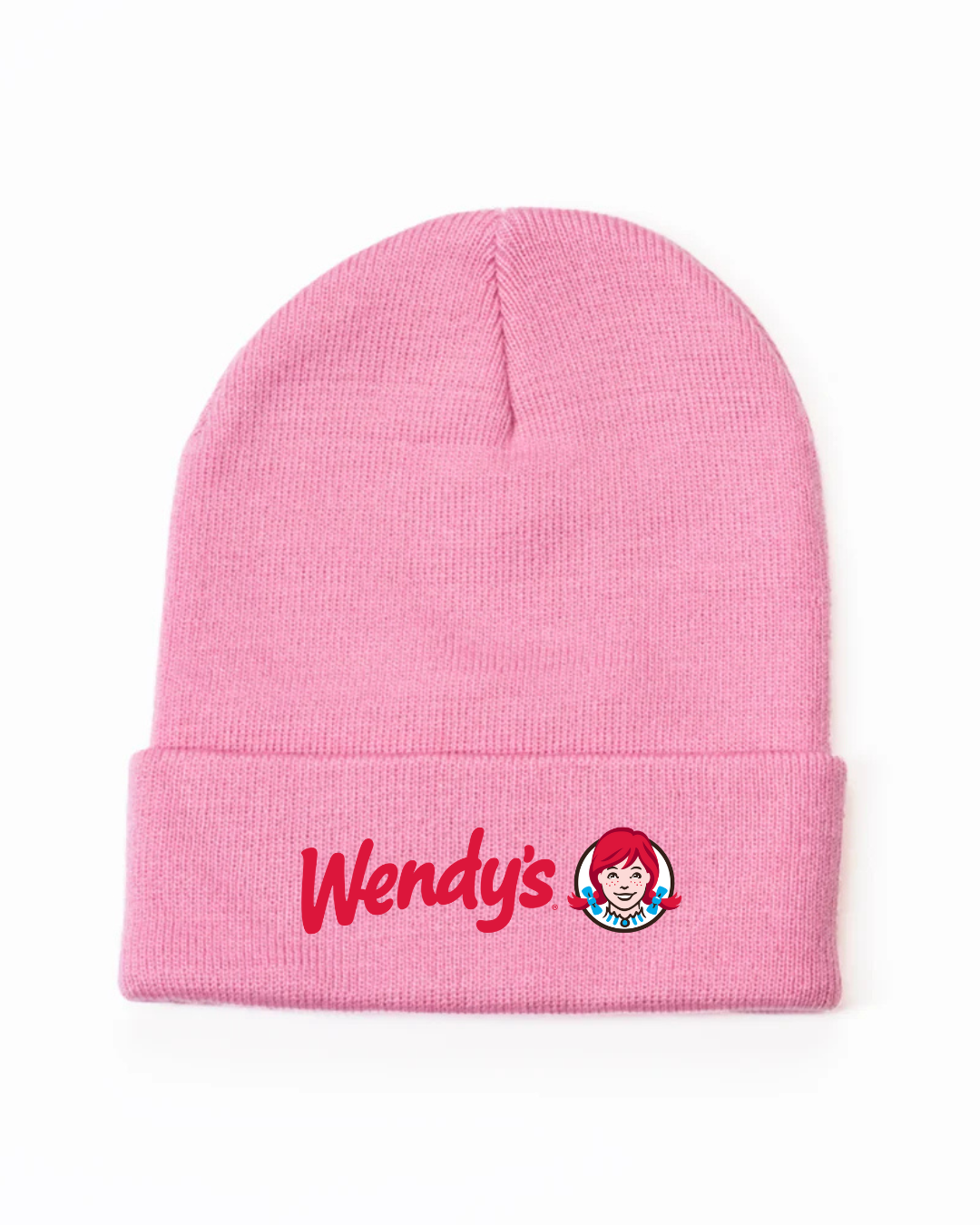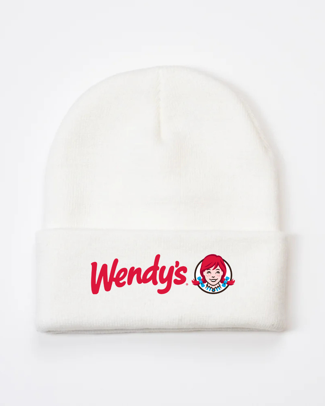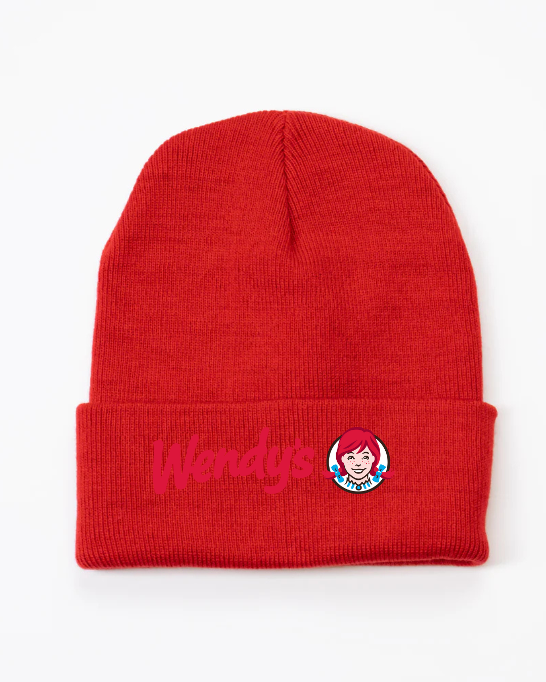 Add a fun, iconic touch to your winter style with this Wendy’s logo–inspired knit beanie. Featuring the recognizable Wendy’s script logo and character design embroidered on the front cuff, this beanie delivers a bold yet playful look that stands out in any casual outfit.