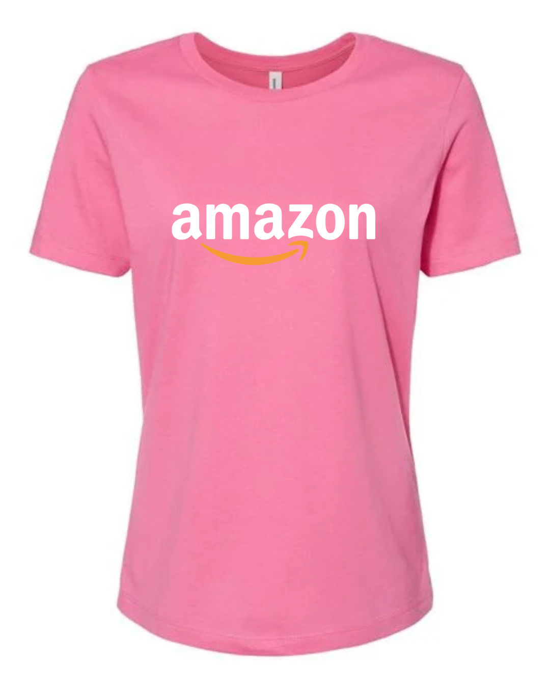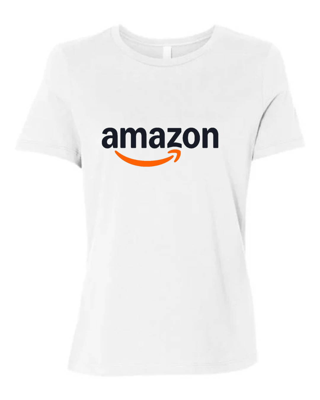 Keep your look simple and iconic with this women’s crewneck T-shirt featuring the recognizable Amazon logo. Designed with a flattering feminine fit, this graphic tee offers a clean, modern style that’s perfect for everyday casual wear.