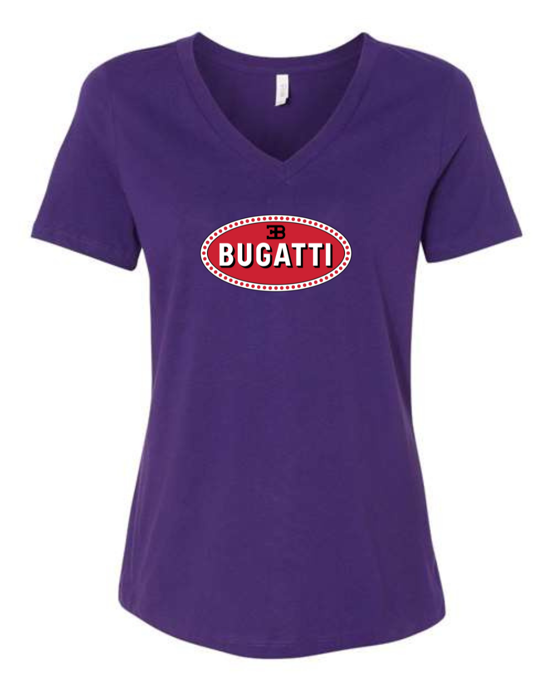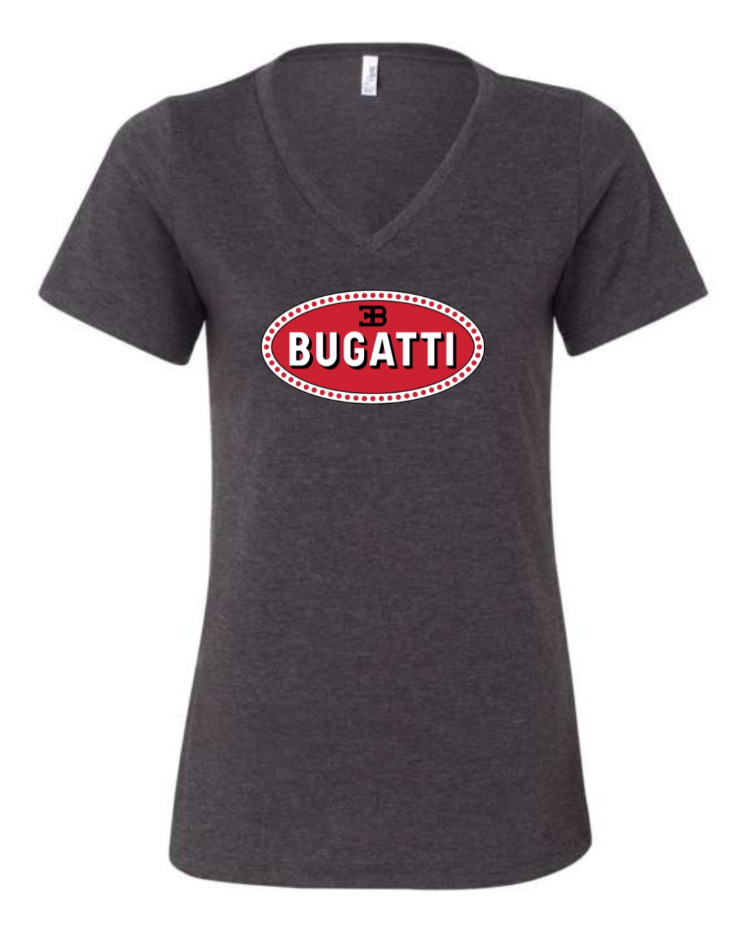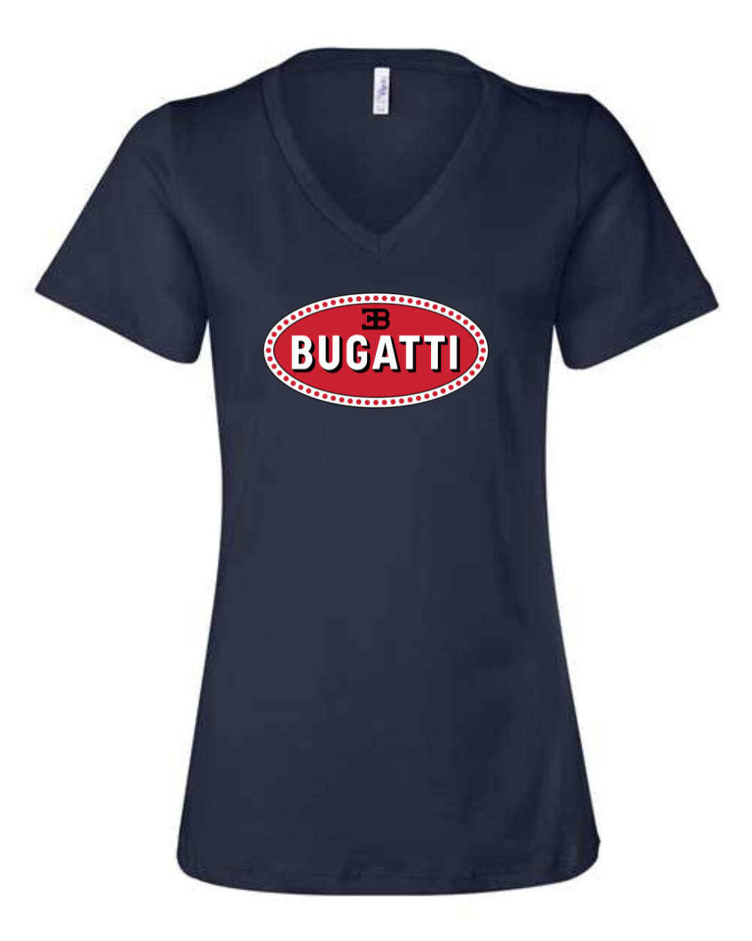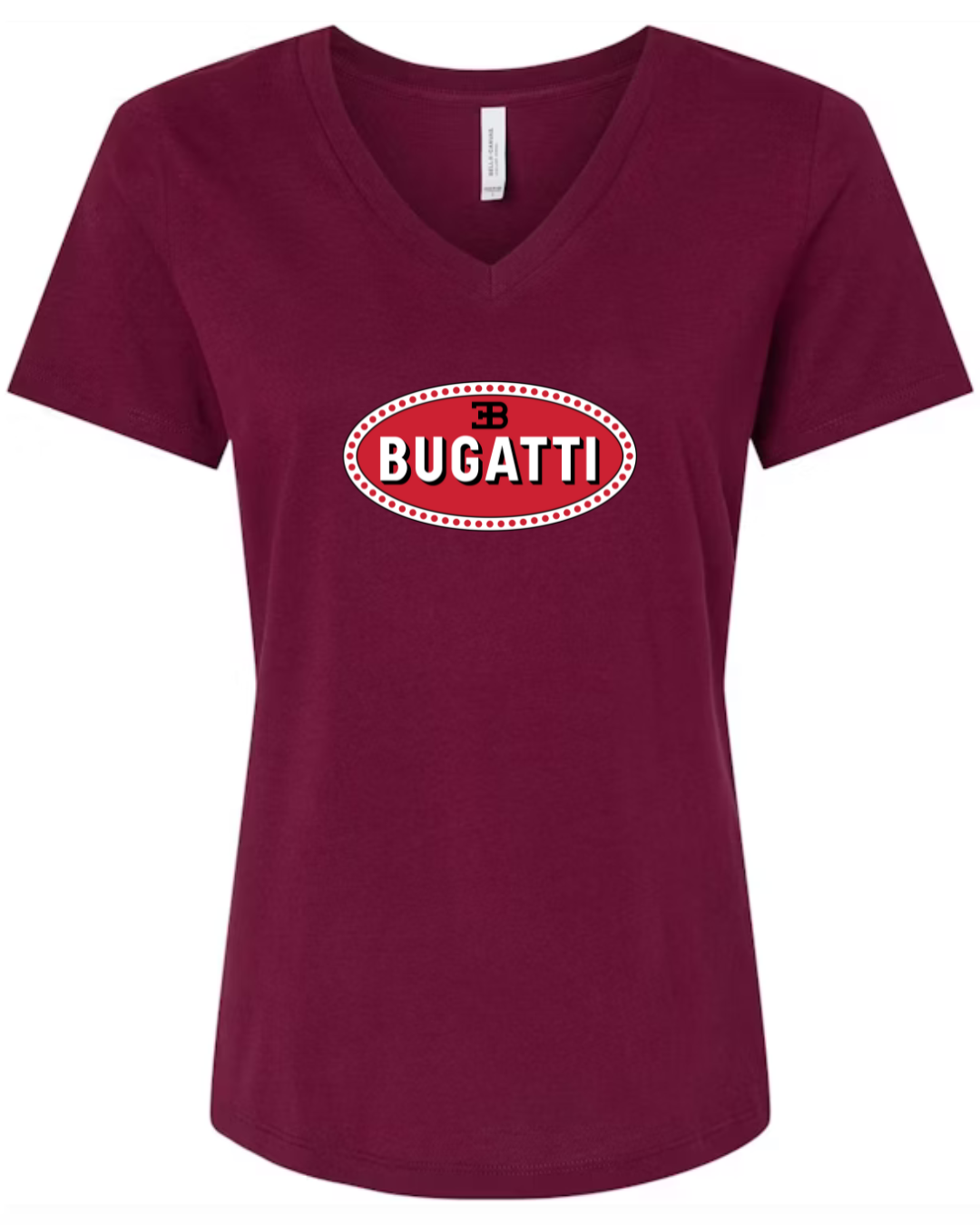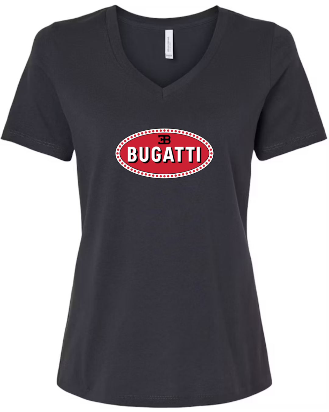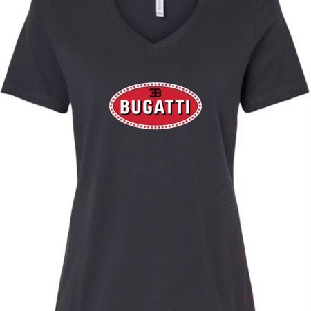 Make a bold style statement with this women’s V-neck T-shirt featuring the iconic Bugatti logo. Designed with a flattering feminine fit, this tee blends high-performance automotive inspiration with everyday casual fashion.