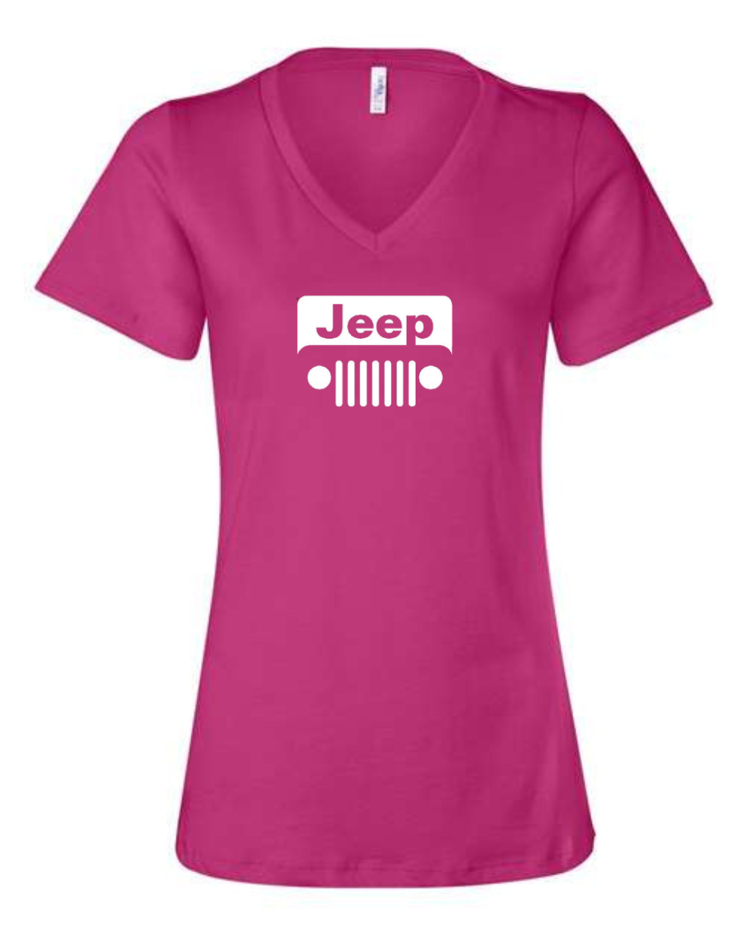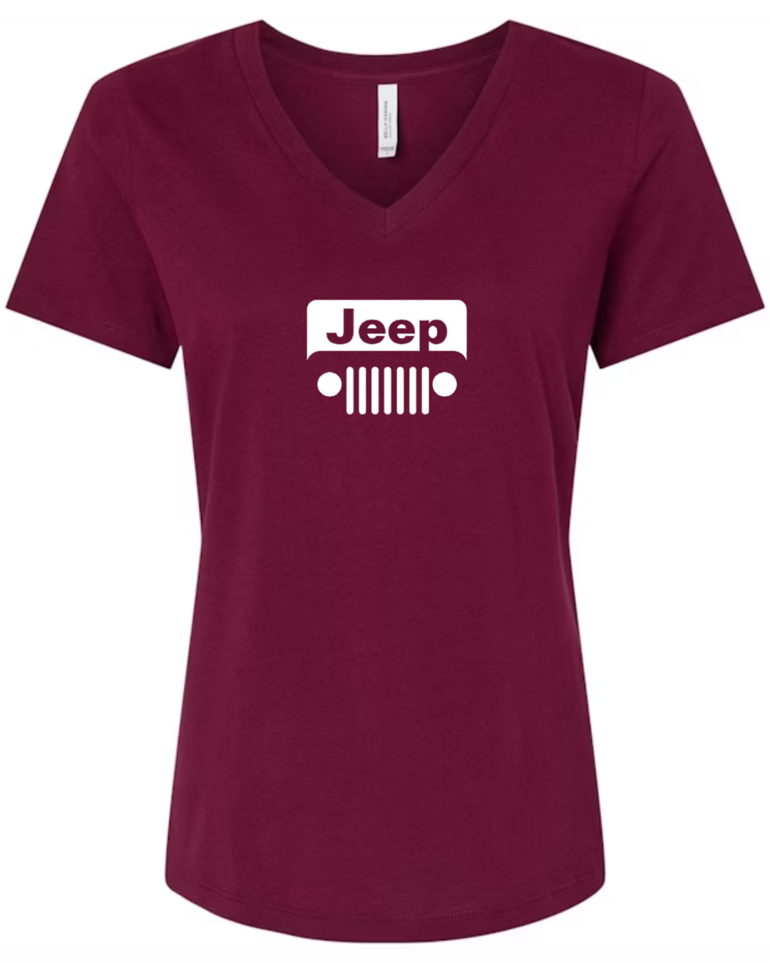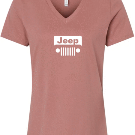 Show your adventurous spirit with this women’s V-neck T-shirt featuring the bold Jeep logo. Designed with a flattering feminine fit, this tee blends rugged automotive heritage with everyday casual style.
