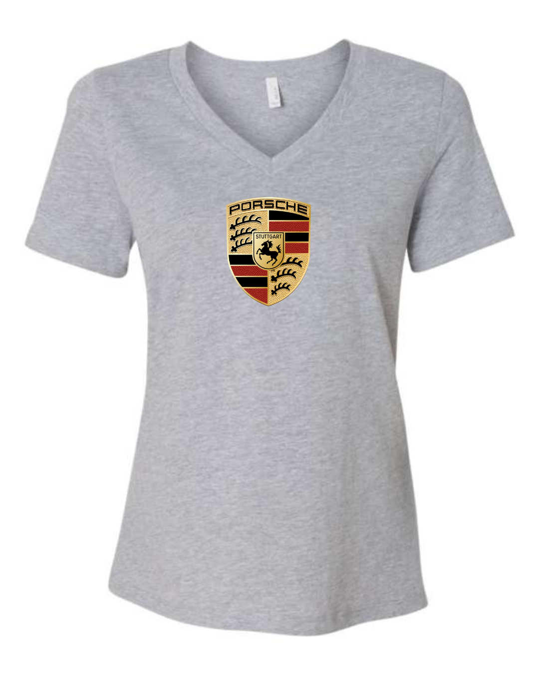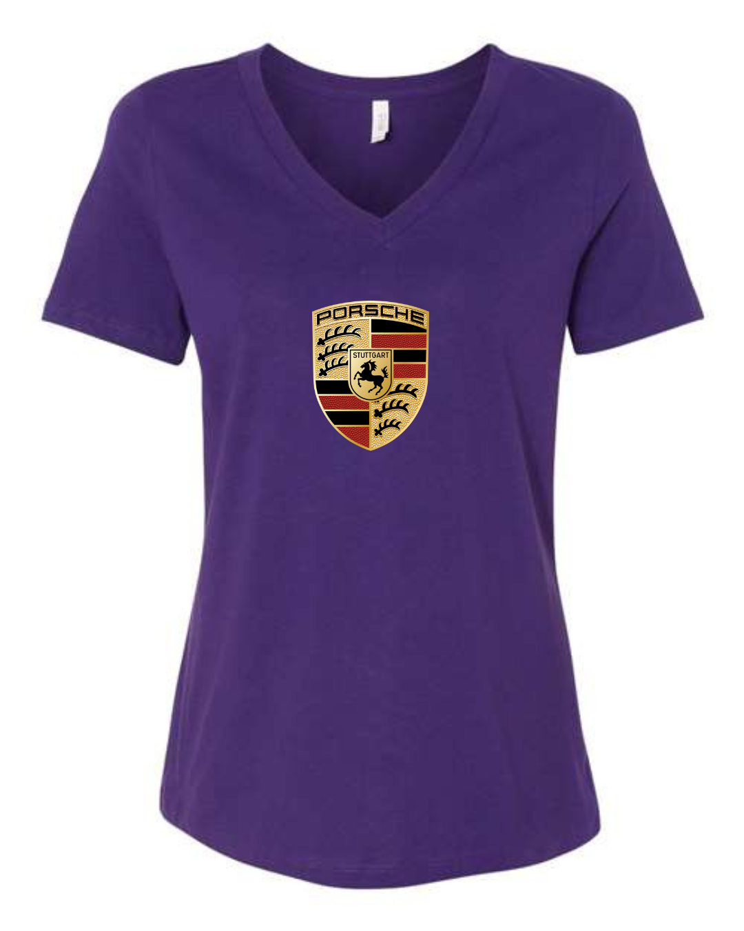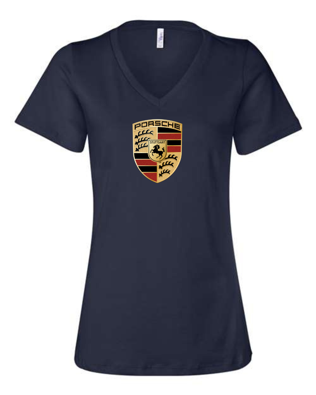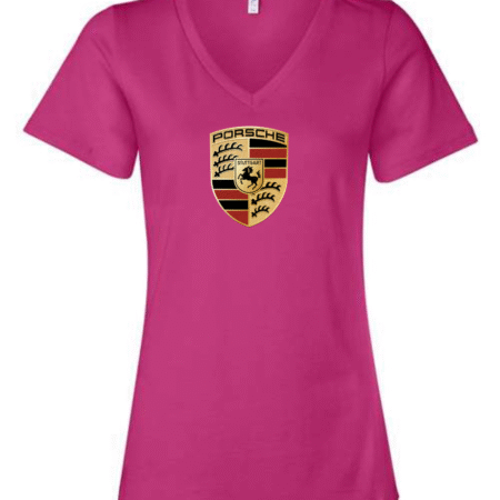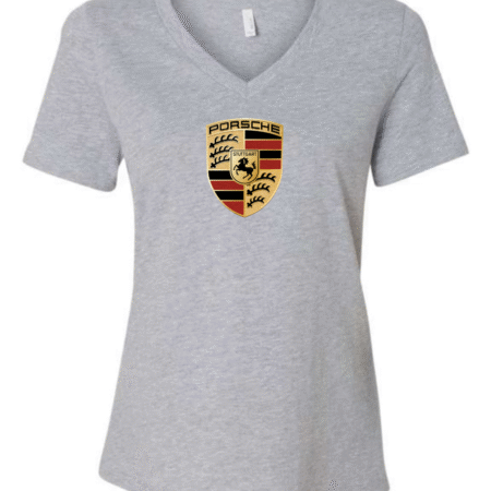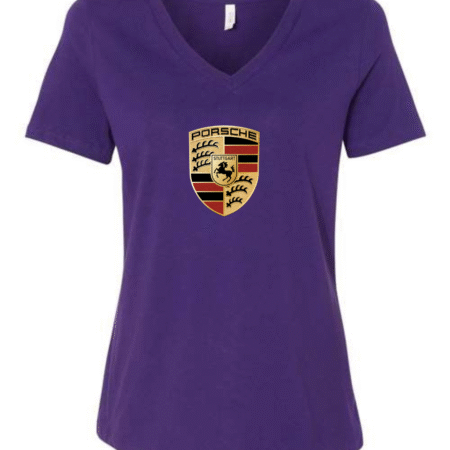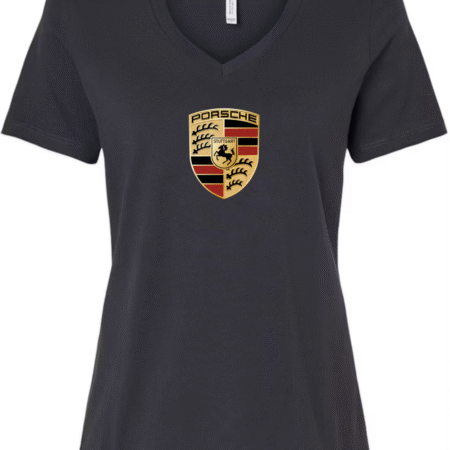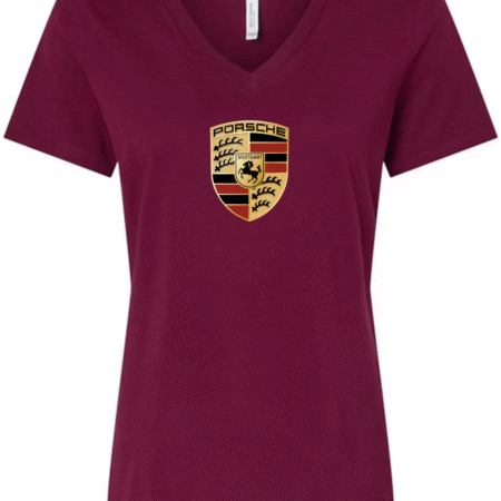 Showcase legendary sports car heritage with this women’s V-neck T-shirt featuring the iconic crest of Porsche. Designed with a flattering feminine fit, this tee blends premium automotive tradition with modern casual style.