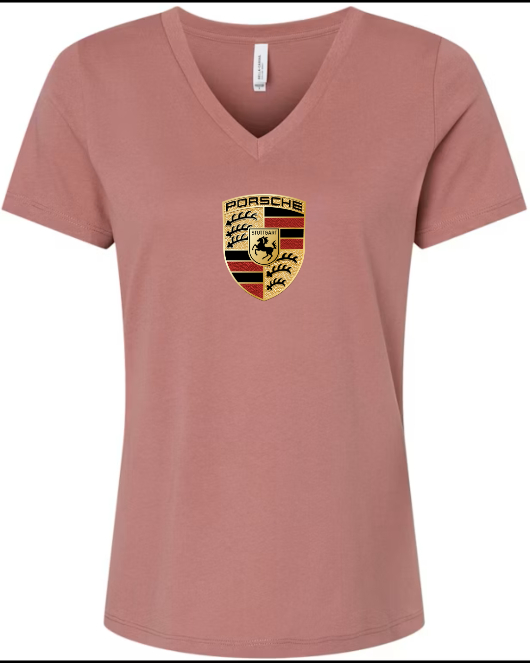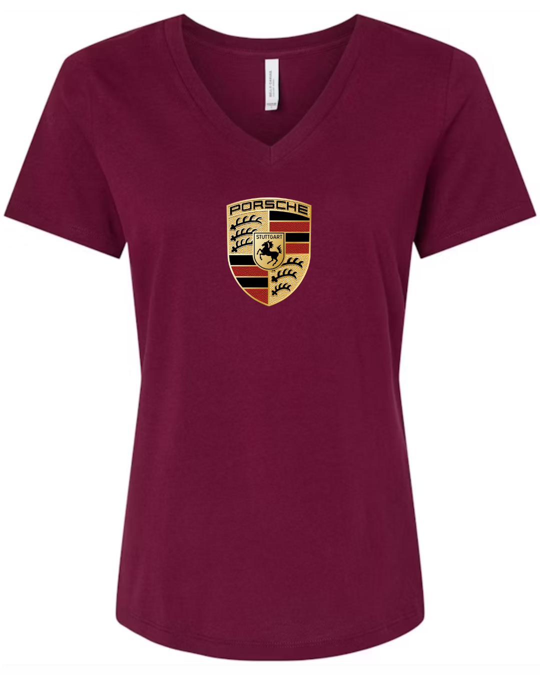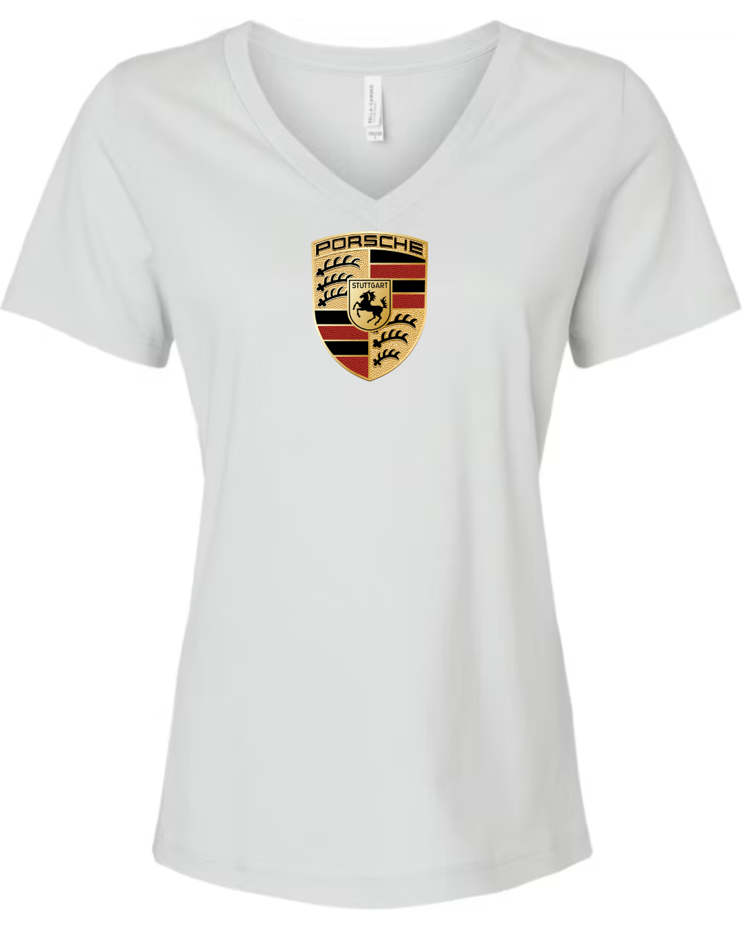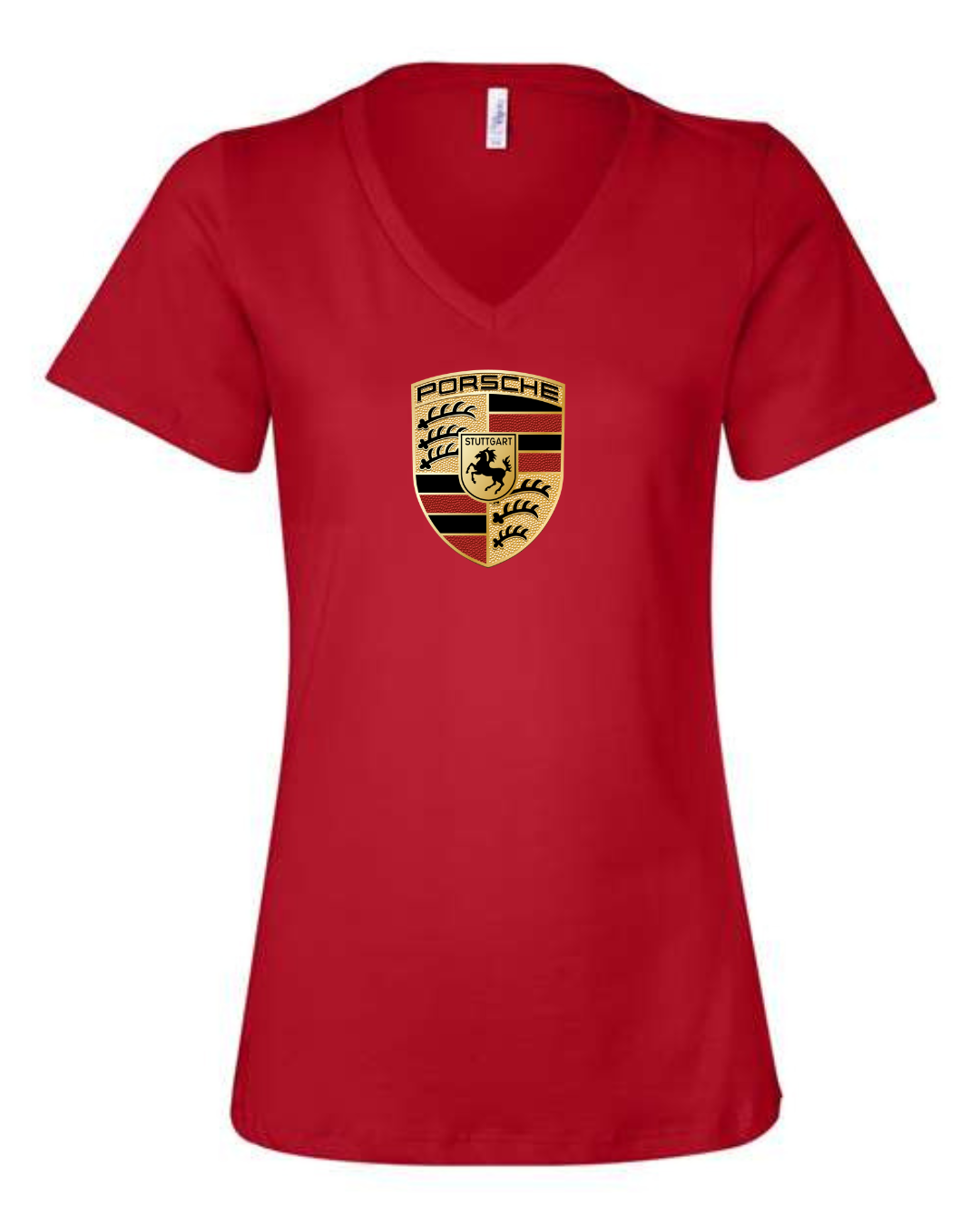 Showcase legendary sports car heritage with this women’s V-neck T-shirt featuring the iconic crest of Porsche. Designed with a flattering feminine fit, this tee blends premium automotive tradition with modern casual style.