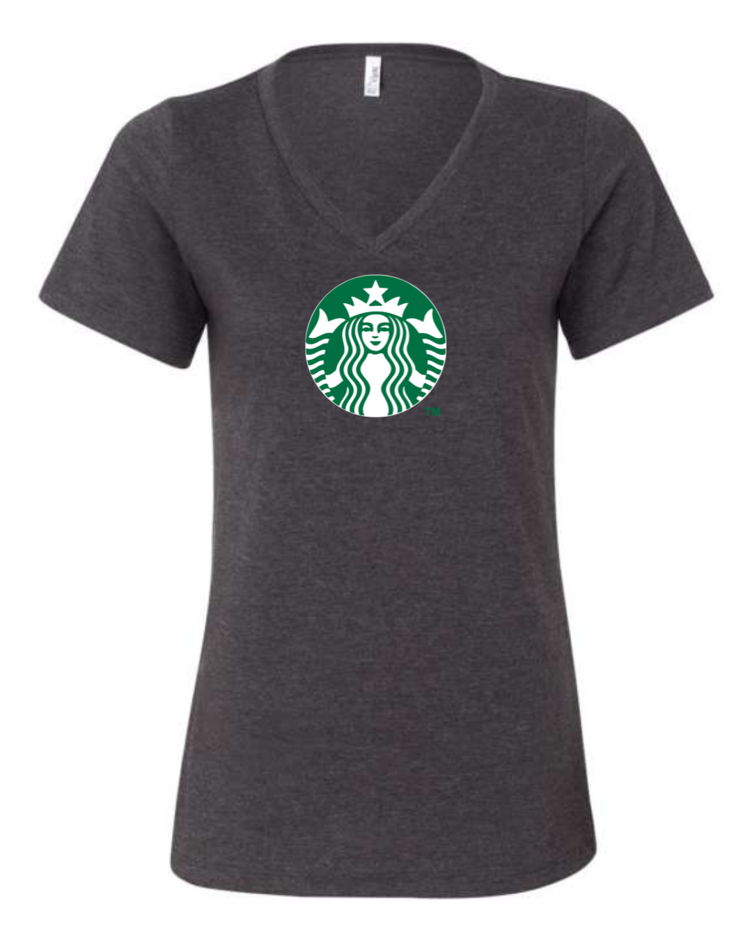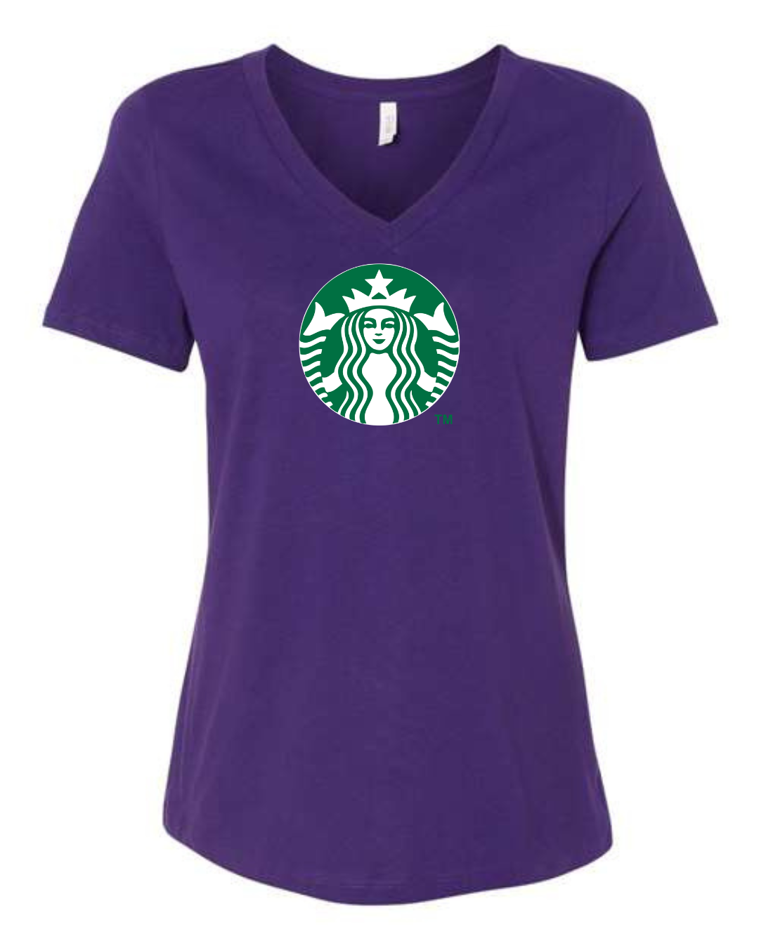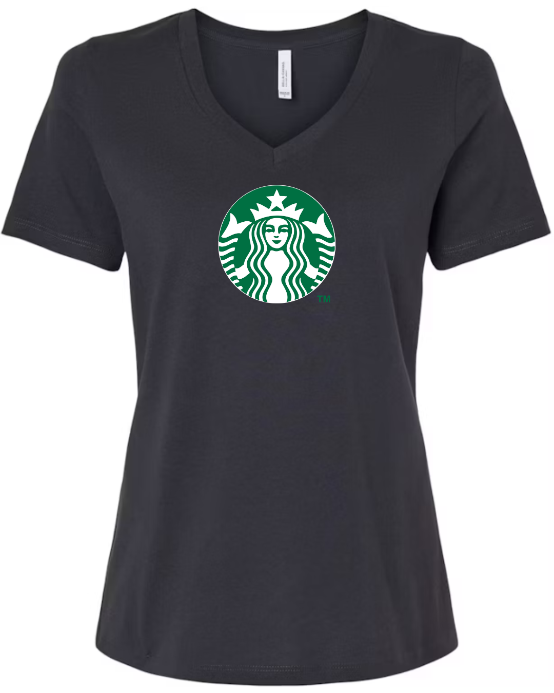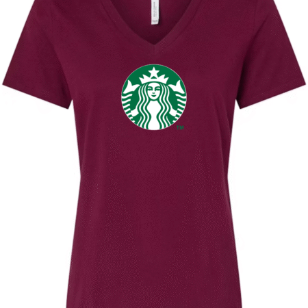 Celebrate iconic coffee culture with this women’s V-neck T-shirt featuring the instantly recognizable Starbucks logo. Designed with a flattering feminine fit, this tee blends modern branding with effortless everyday style.