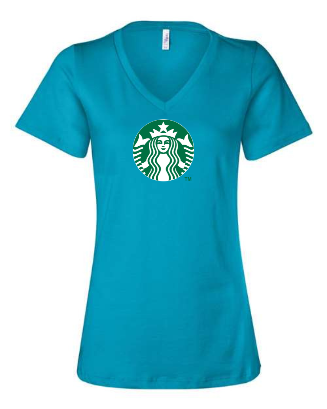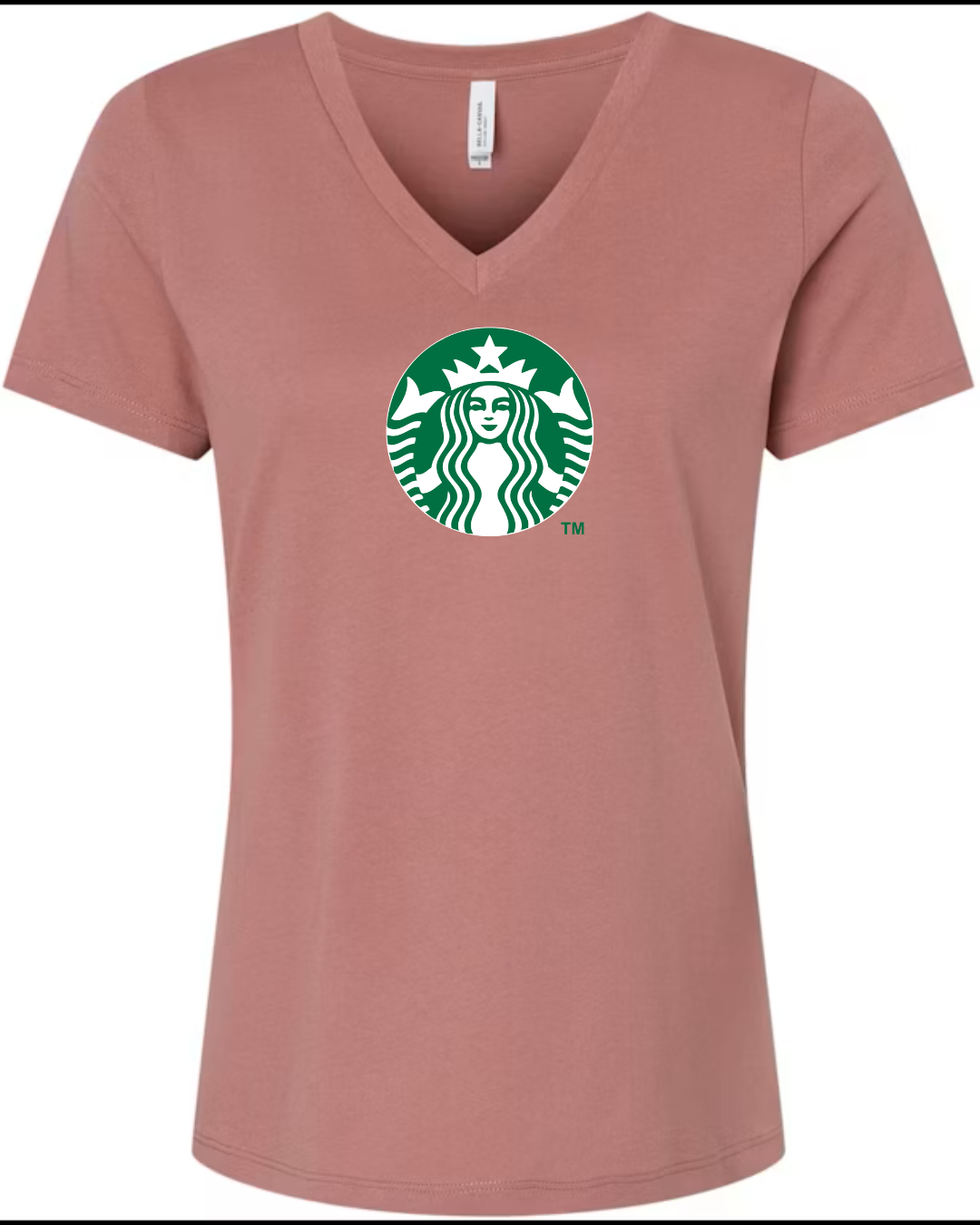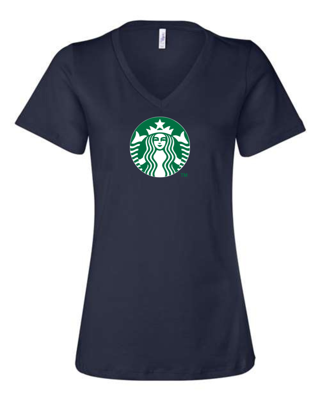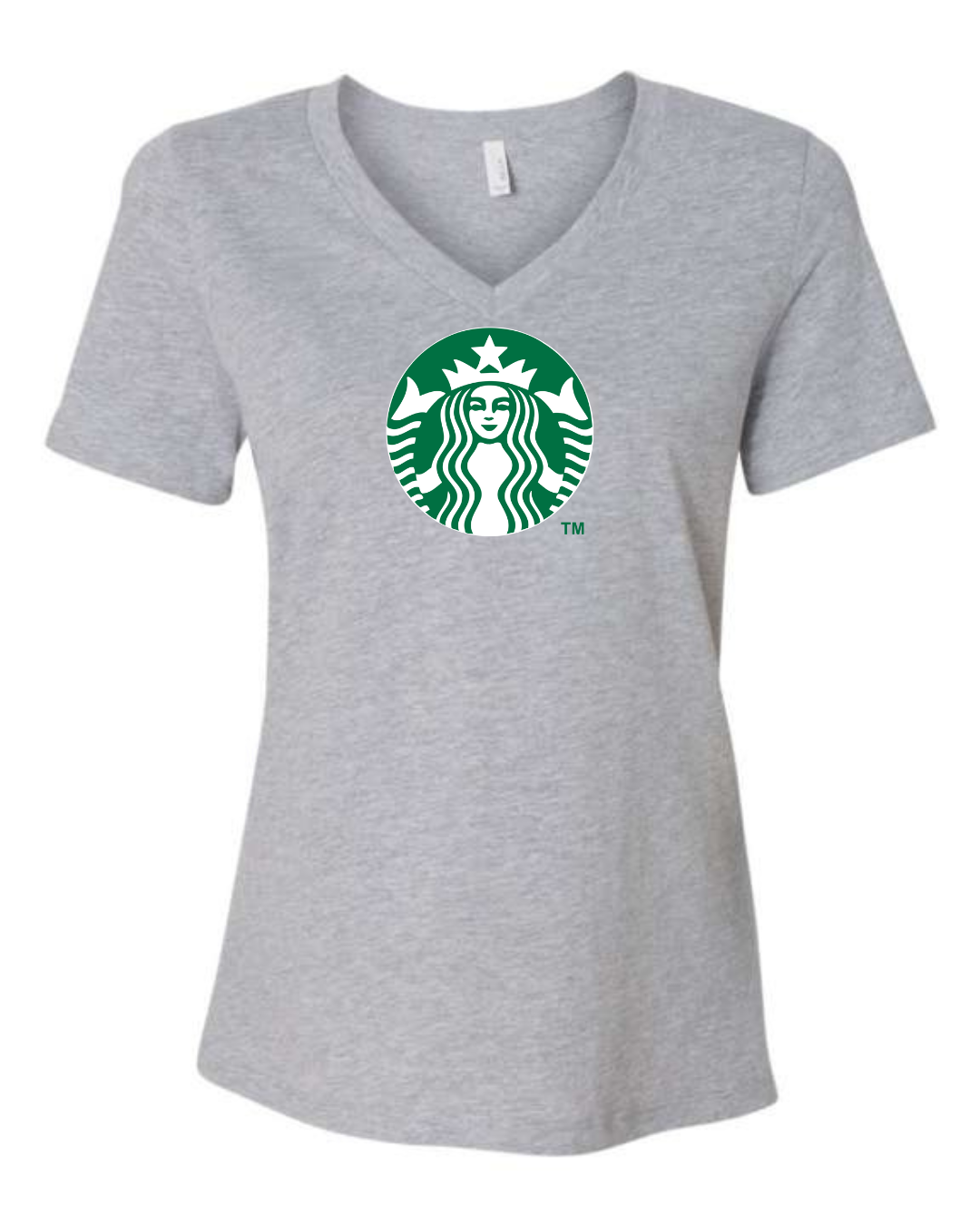 Celebrate iconic coffee culture with this women’s V-neck T-shirt featuring the instantly recognizable Starbucks logo. Designed with a flattering feminine fit, this tee blends modern branding with effortless everyday style.