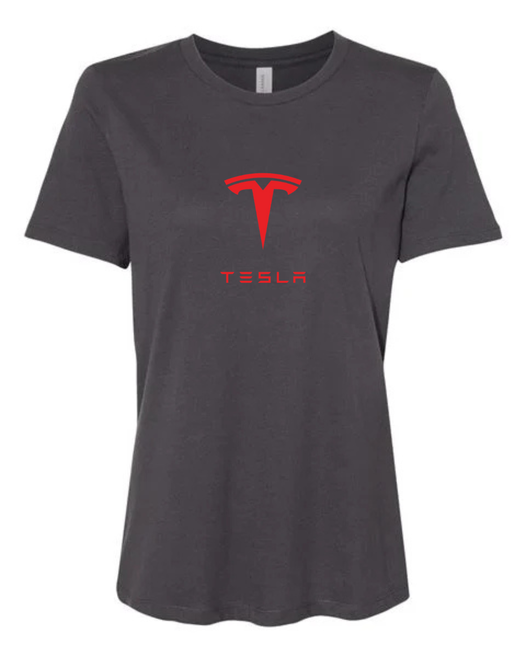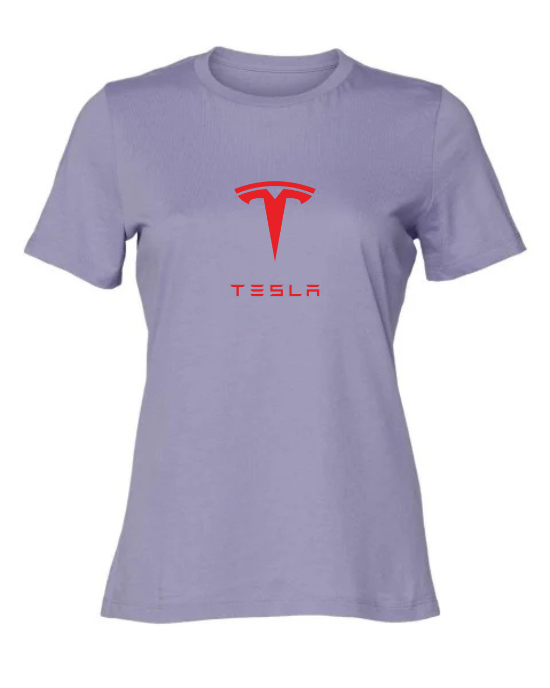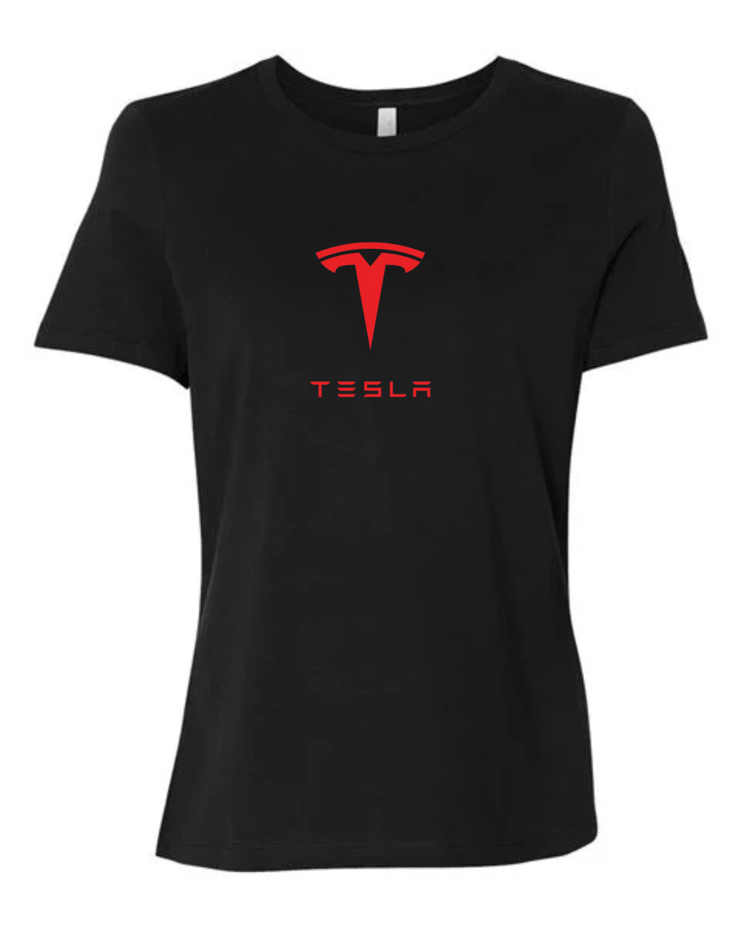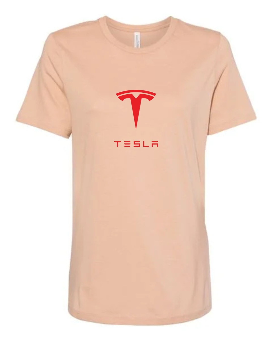 Show your love for innovation and clean design with this women’s crewneck T-shirt featuring the iconic Tesla logo. Designed with a flattering feminine fit, this graphic tee blends modern automotive style with everyday comfort.